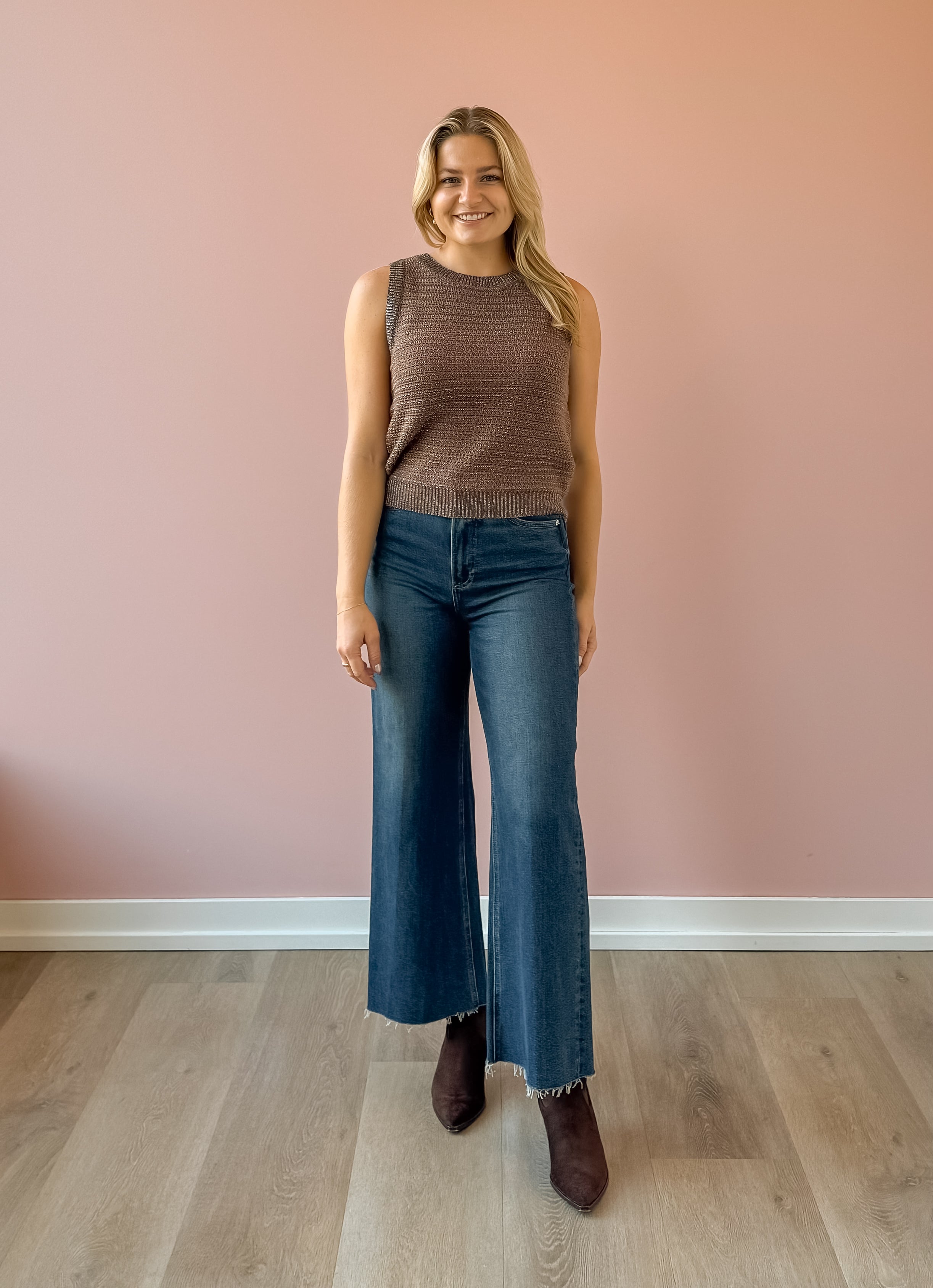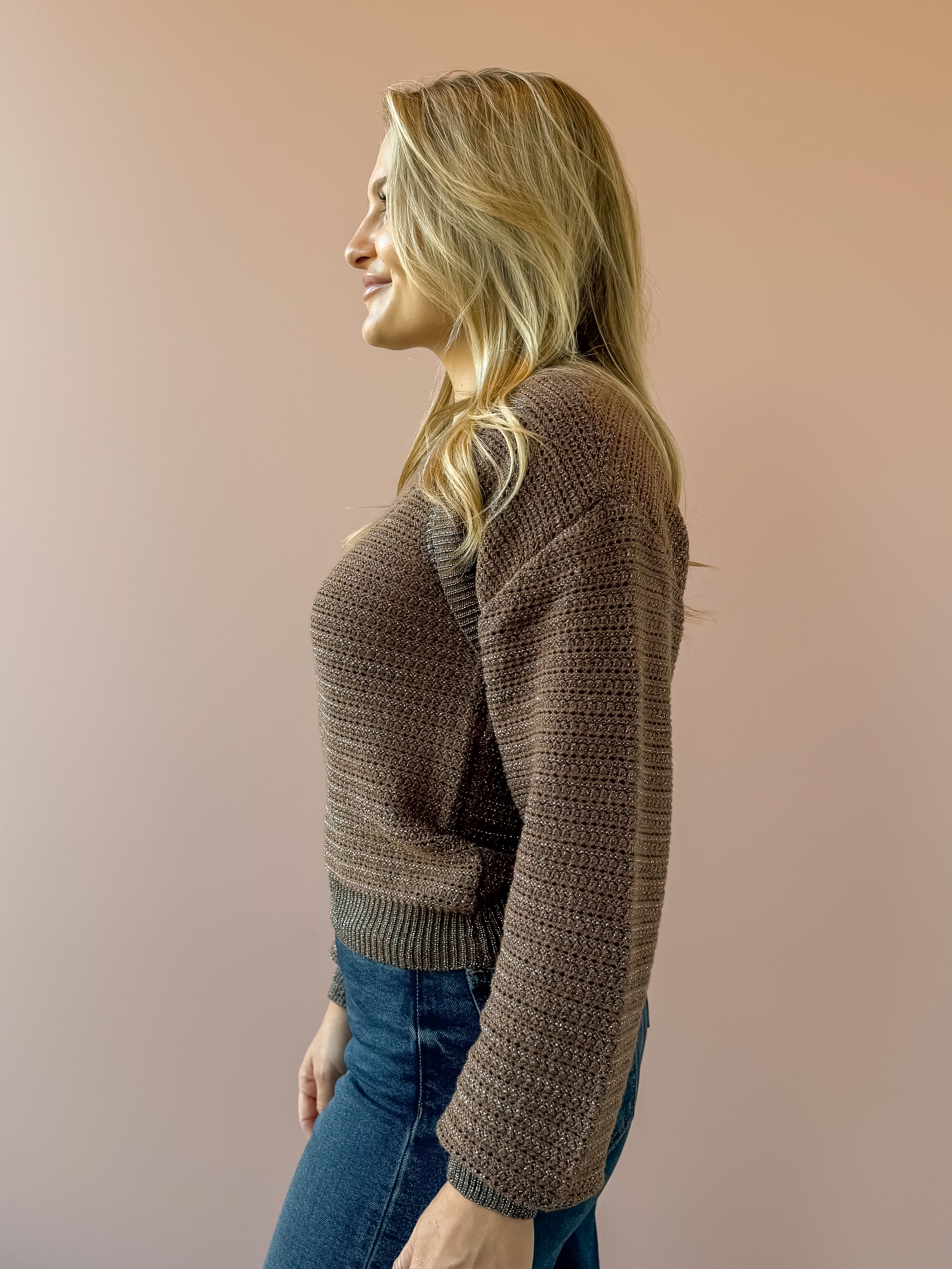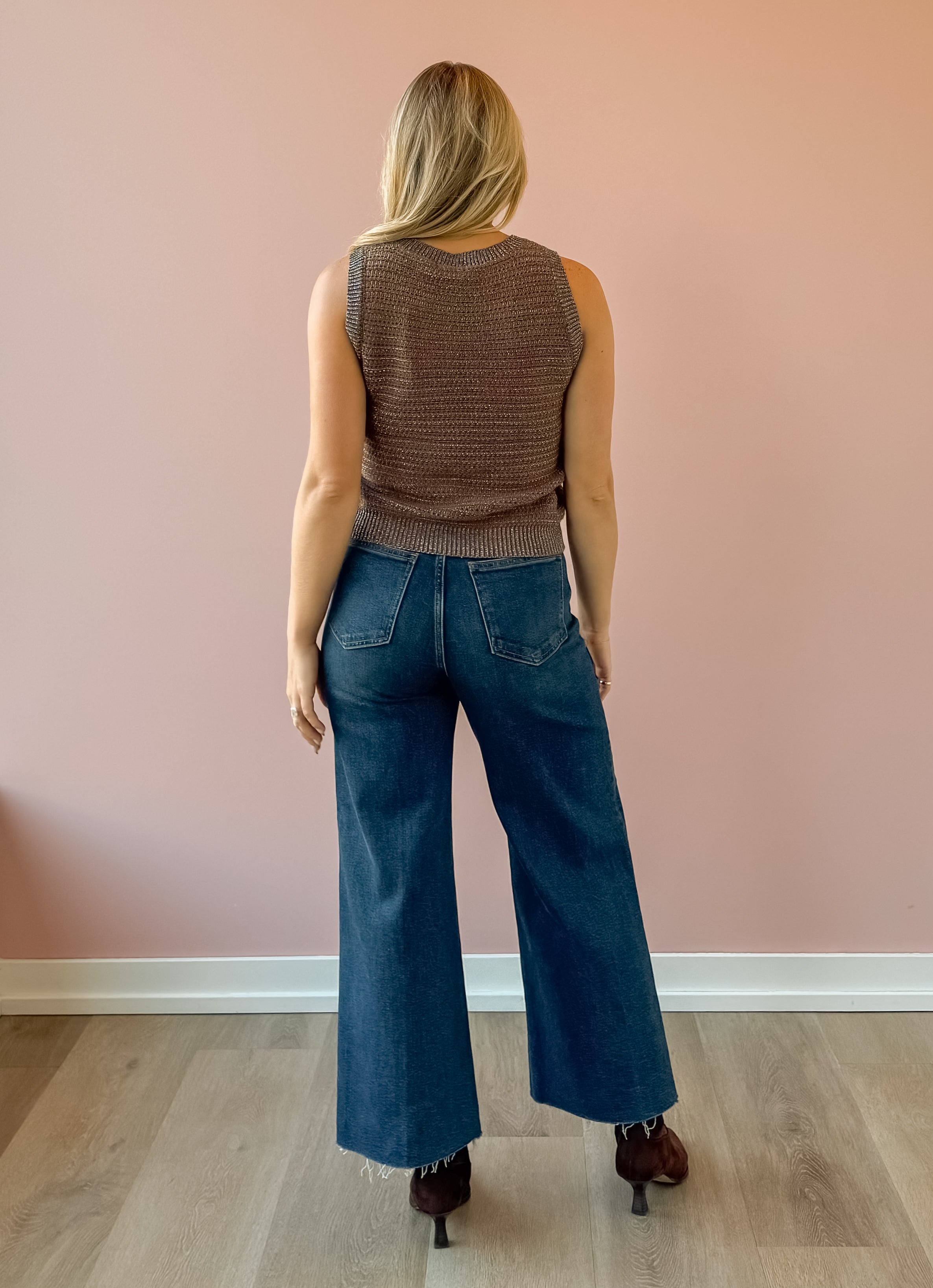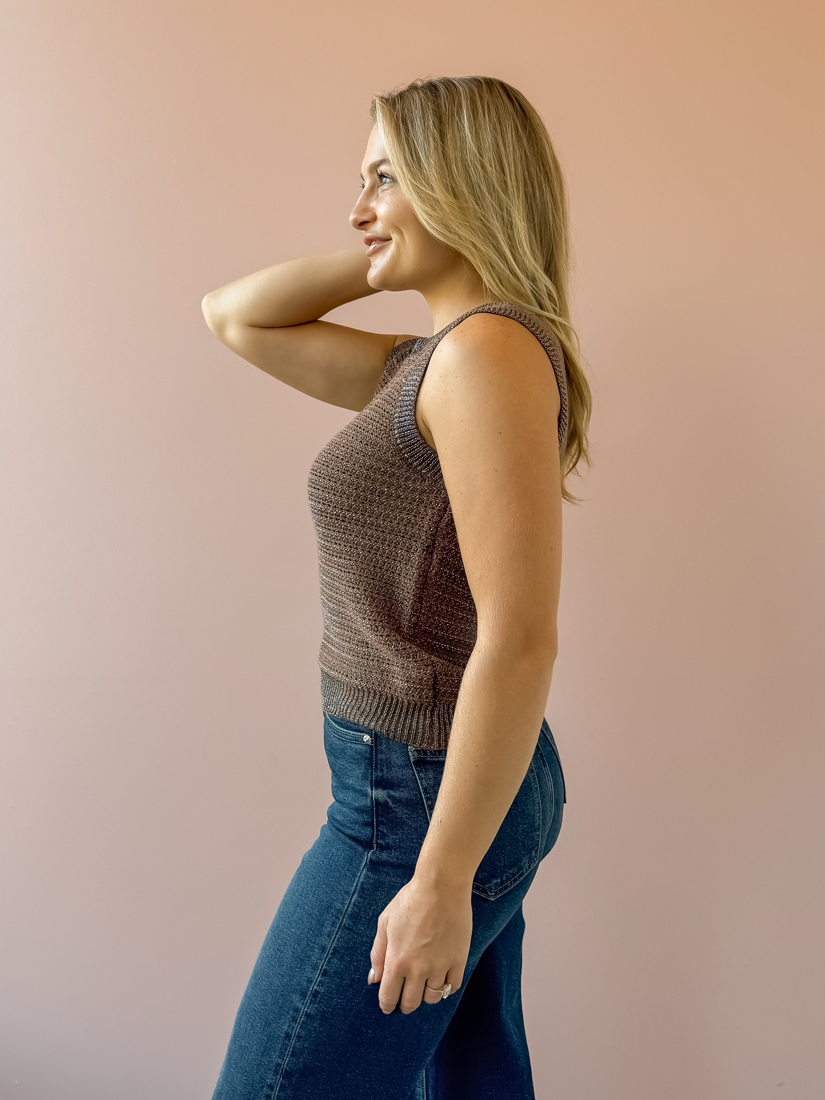 Featuring a sleek sleeveless top paired with a matching shrug, this two-piece ensemble adds effortless sparkle to your wardrobe. The lightweight metallic yarn offers a soft shimmer, while the shrug provides a fun extra layer. Wear them together or alone— this set transitions seamlessly from office hours to after-hours! Style with denim and boots for a night out!