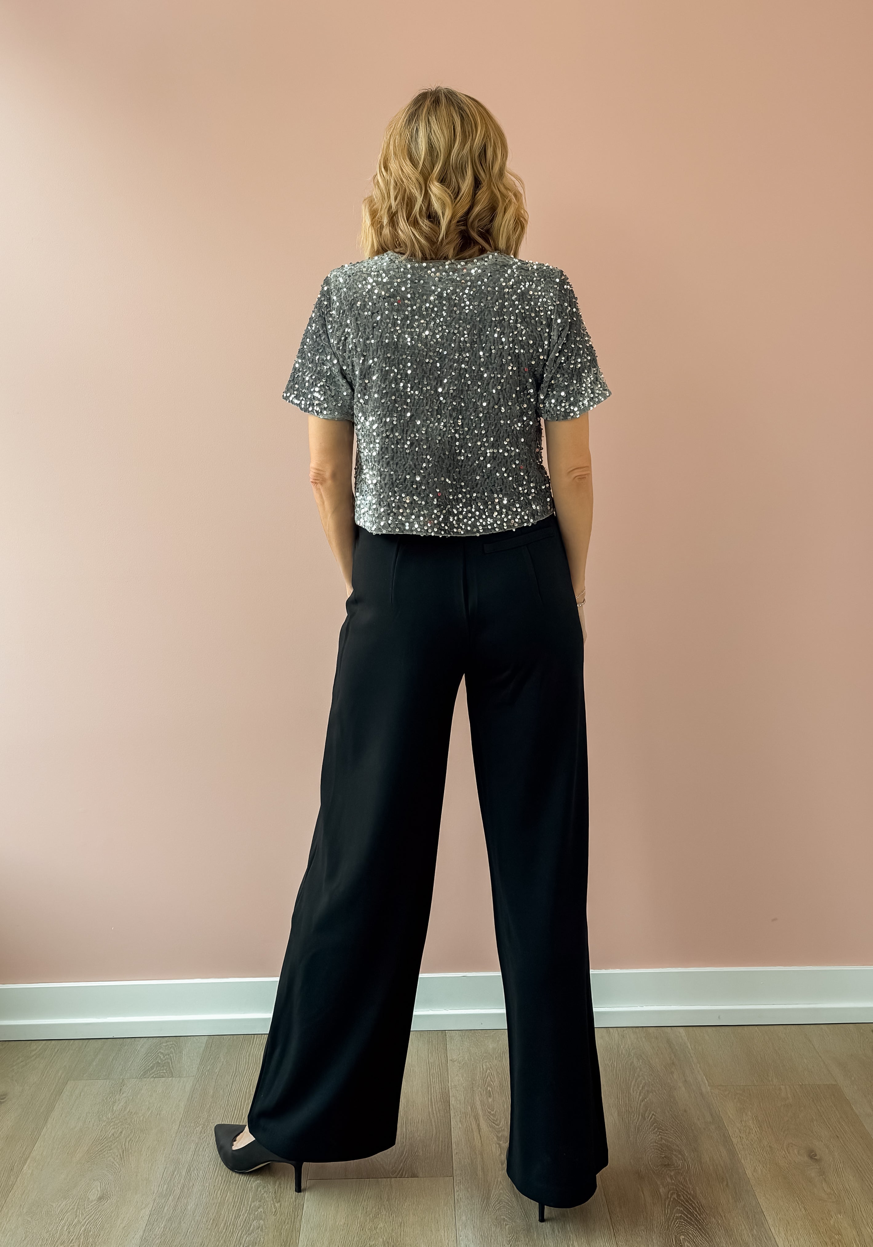 Elevate your wardrobe with the Astrid Pants, a versatile black dress pant designed to impress. Featuring a pull-on design, high waist, and wide-leg fit, they offer both comfort and a flattering silhouette. Perfect for work, date nights, or special occasions, these pants pair effortlessly with a blouse and heels to create a polished, sophisticated look. Essential for any closet, the Astrid Pants blend timeless style with modern elegance.