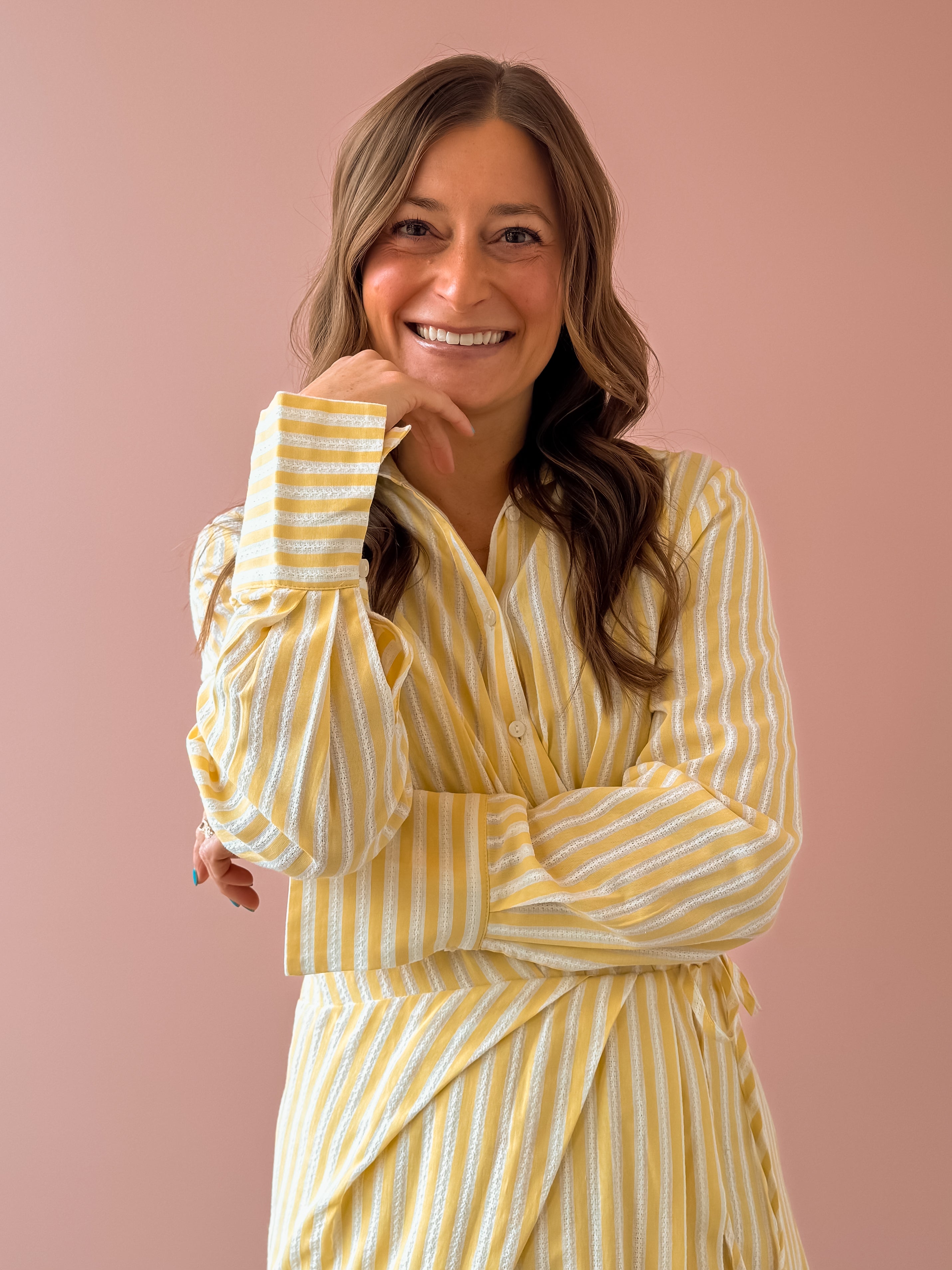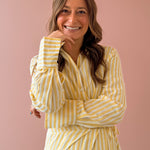 Looking for sunshine in dress form? That's the Azaline Dress! The vibrant yellow stripes are totally on trend while sticking to a classic silhouette. The fully lined button-up dress with wrap detailing creates a flattering cut that moves with you. Dress it down with comfortable flats for weekend errands or dress it up with heels for special occasions.