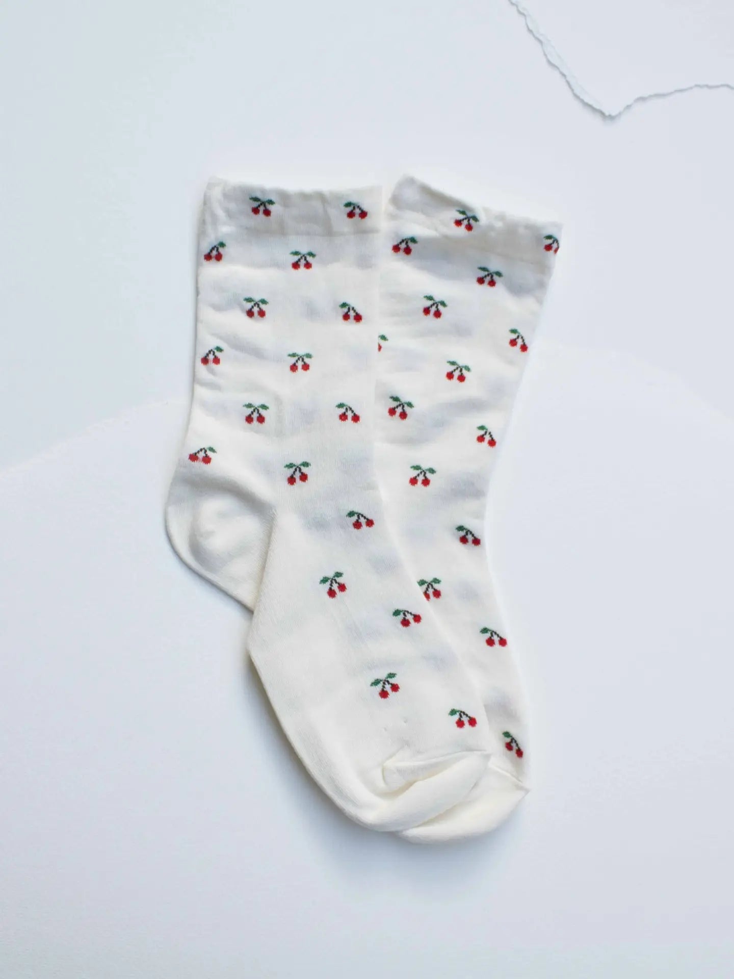 Add a playful twist to your everyday essentials with these Cherry Cotton Socks. Designed with an all-over mini cherry motif, these socks bring a fun pop of color to any outfit while staying soft, breathable, and comfortable all day long.