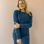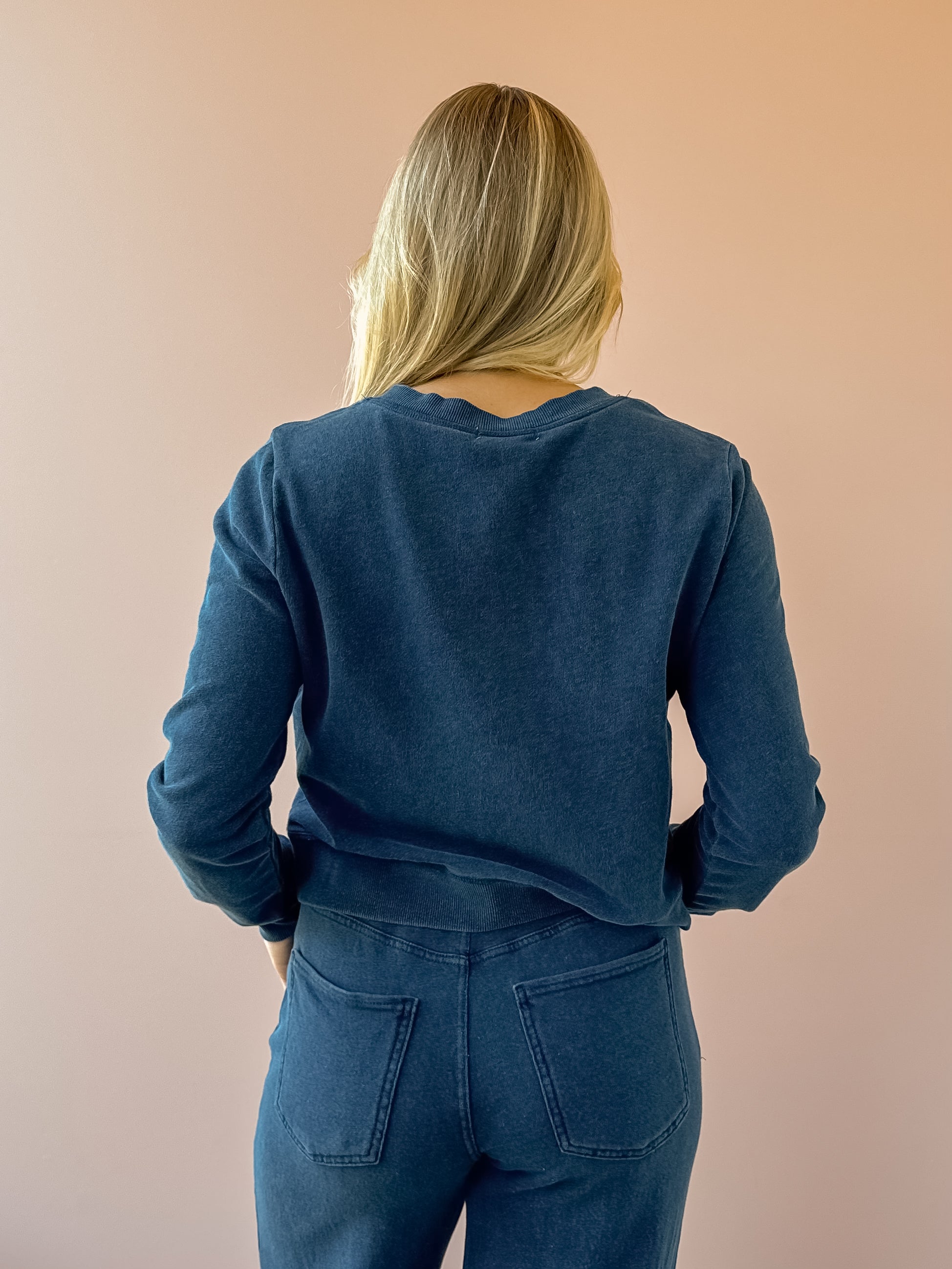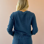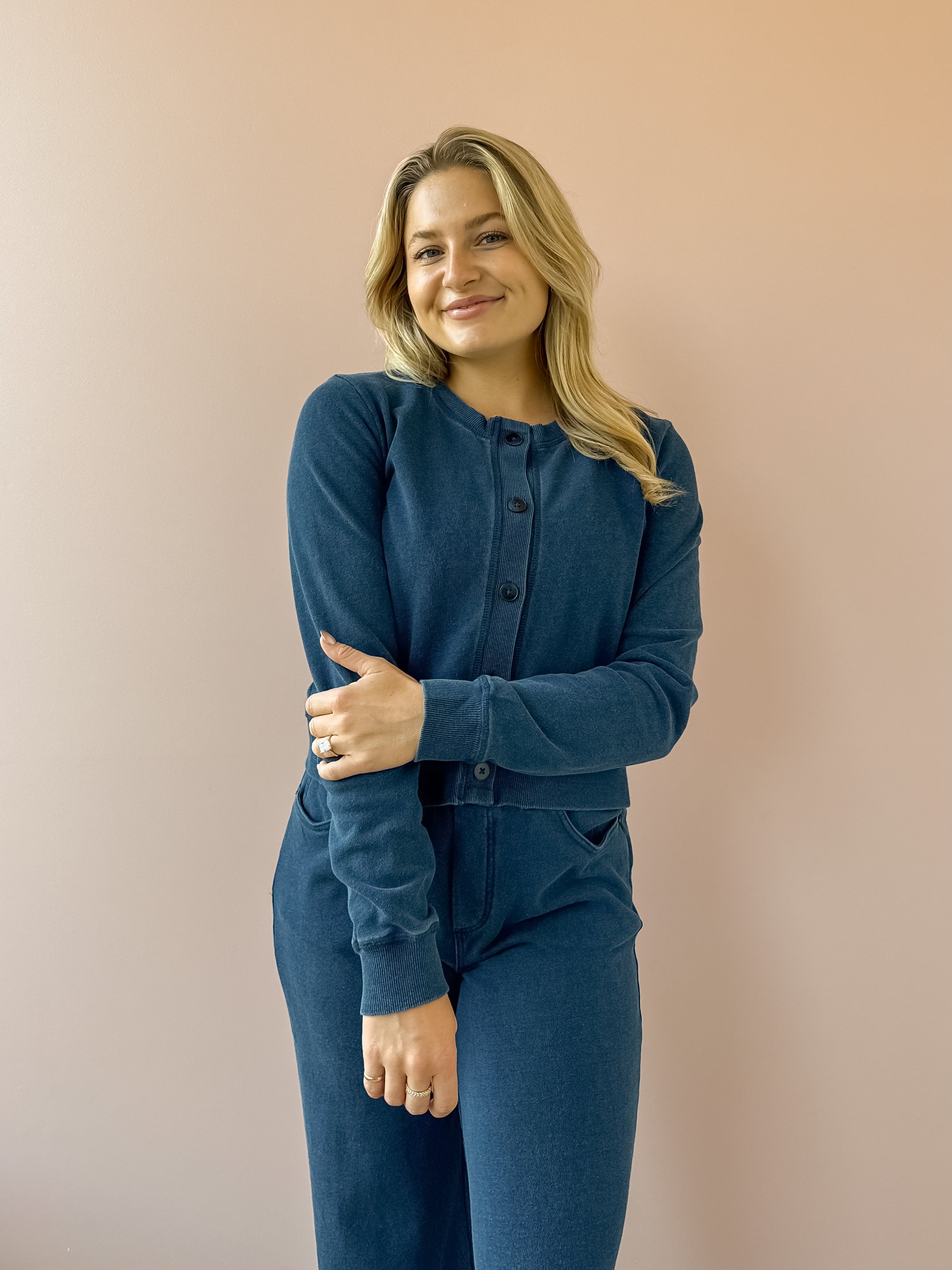Experience effortless comfort with the Daily Knit Denim Cardigan in a vintage indigo hue. Crafted from soft knit denim, this midweight cardigan offers a relaxed fit and a classic crew neckline for versatile styling. Its mineral wash adds subtle character, making it an ideal laid-back layer for any casual outfit. Pair it with our Sloane Jersey Denim pant or denim shorts and sandals for a casual, chic look on the go!