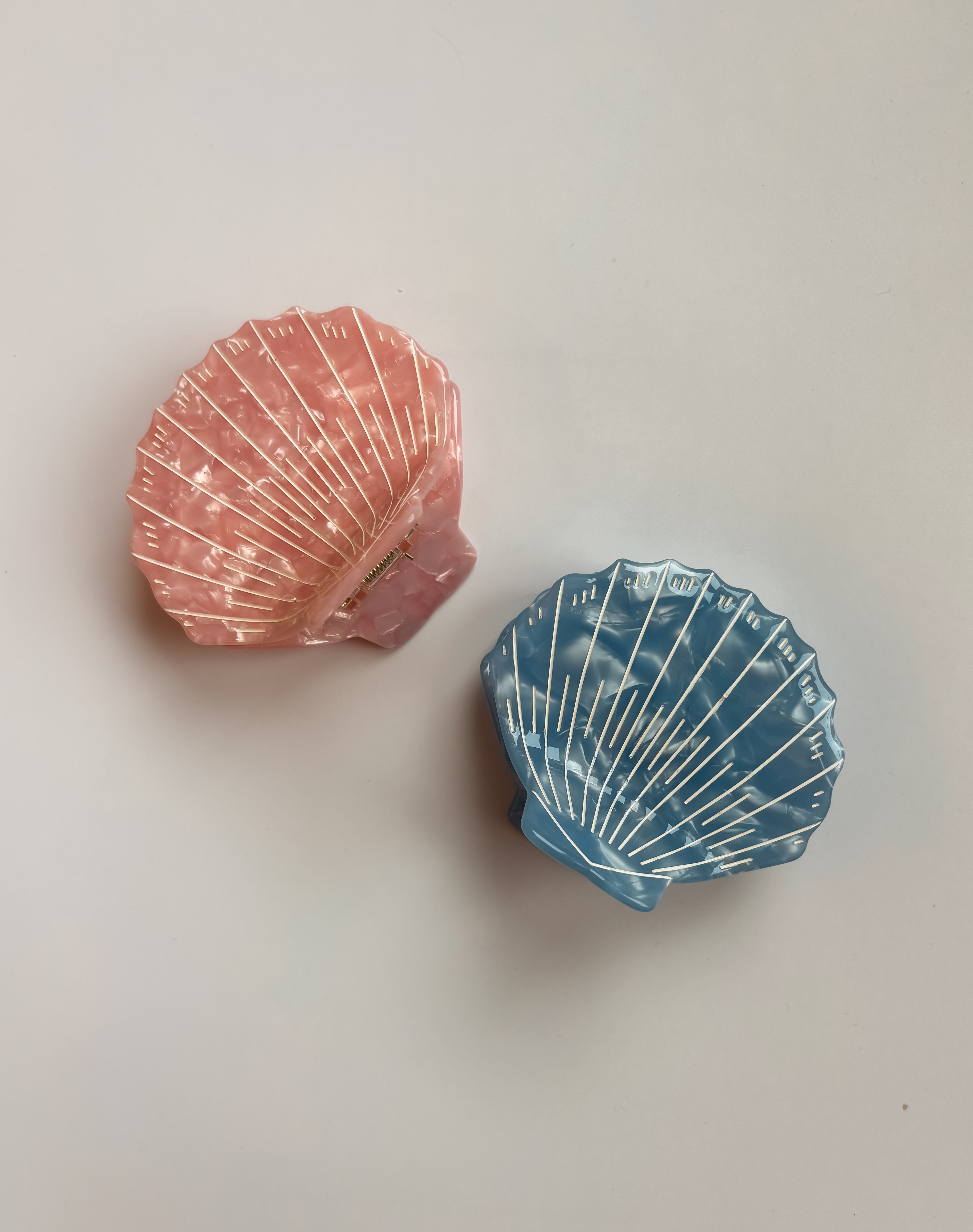 The Deep Sea Saltwater Seashell Claw Clip features delicate, hand-painted detailing inspired by the coast. Available in soft baby blue and pink, it adds a subtle pop of color while still feeling elevated and timeless. An easy everyday accessory that brings a touch of seaside charm to any look.