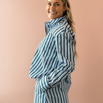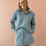 Effortlessly chic and oh-so versatile, the Dream Girl Top is your new wardrobe essential. Crafted from crisp 100% cotton poplin, this blue striped button-up strikes the perfect balance between polished and relaxed. Style it with our Dream Girl Skort for a coordinated look that turns heads, or throw it on with white jeans for timeless, everyday appeal. Whether you're dressing up or keeping it casual, this top does it all with playful charm.