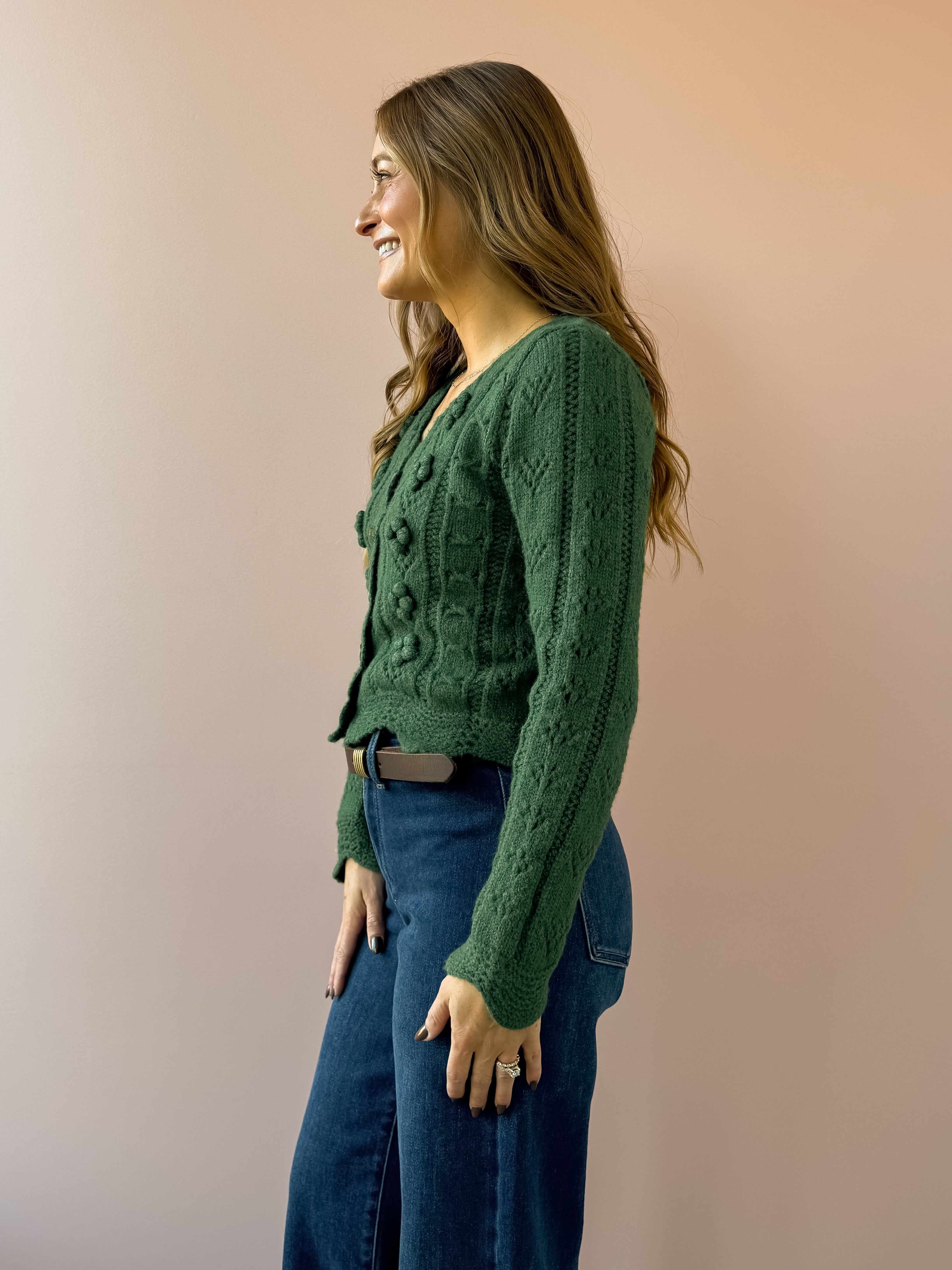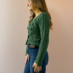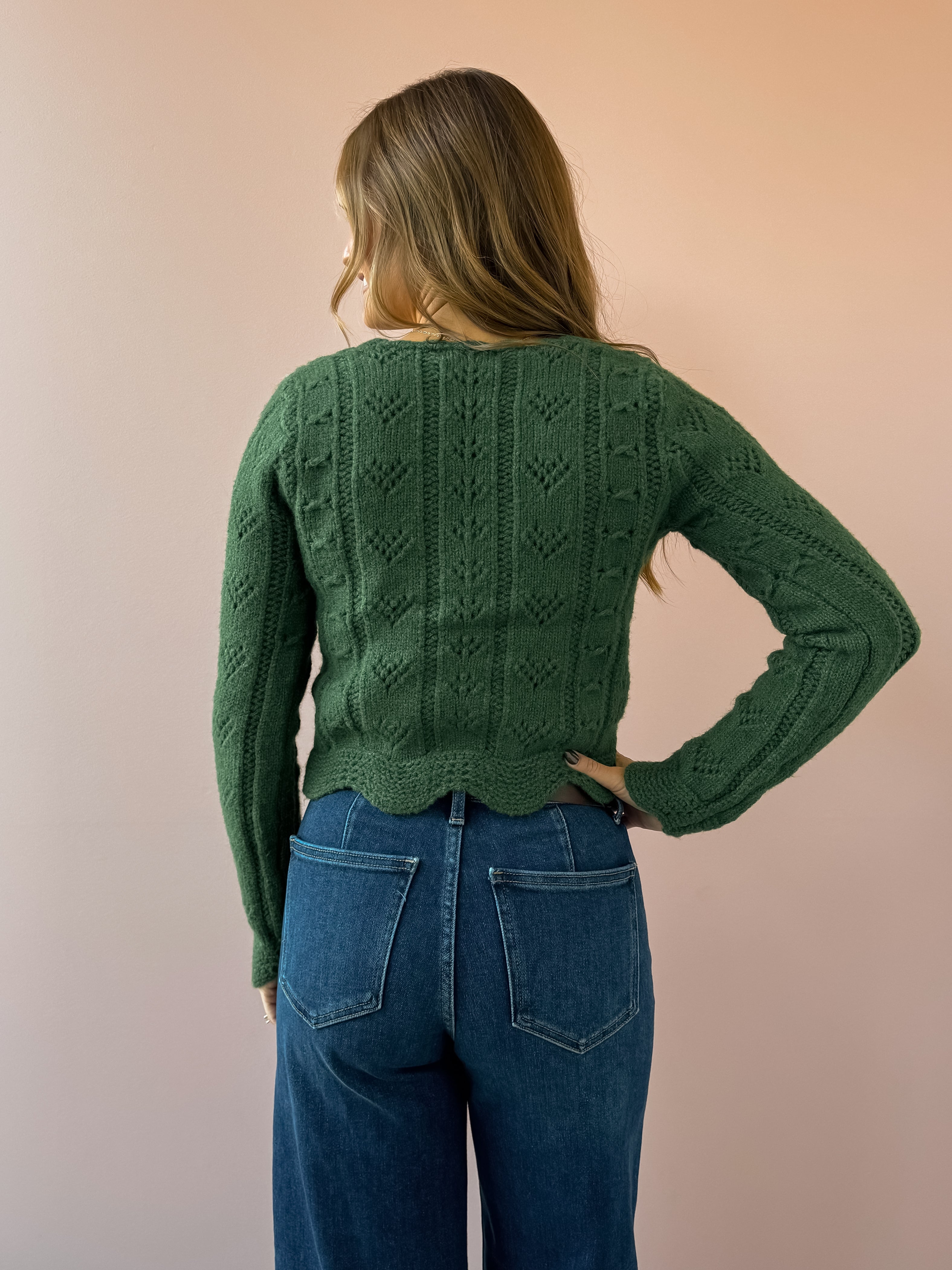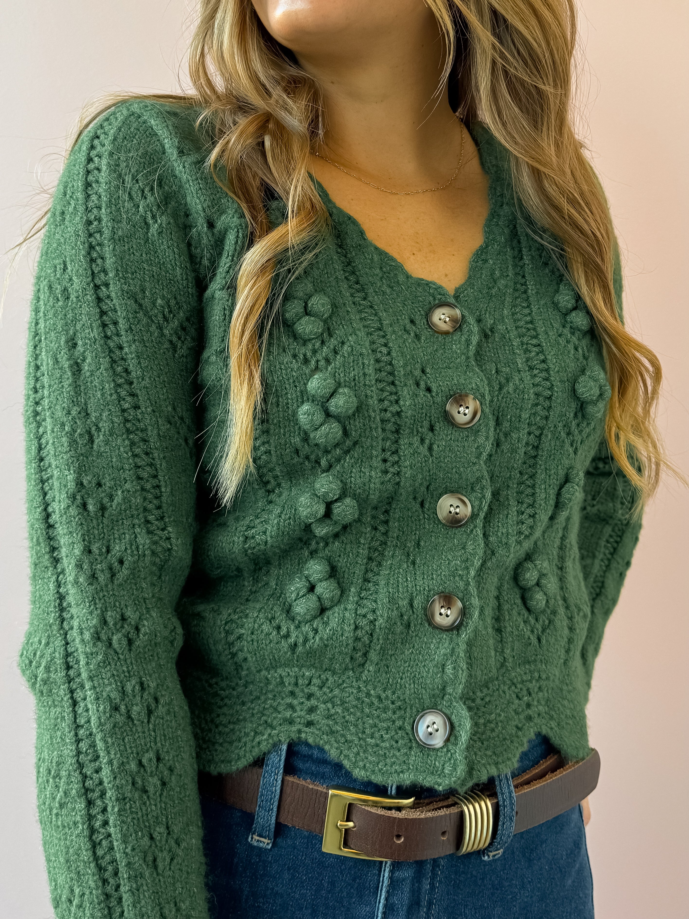 The Geneva Cardigan blends feminine charm with versatile style. Featuring a low V neckline and delicate button closures, it can be worn open for a relaxed vibe or buttoned for a polished look. Its scalloped hem and quilted pattern add a unique, flattering touch. Pair it with jeans and a flat for an effortlessly cute and comfortable outfit that turns heads wherever you go.