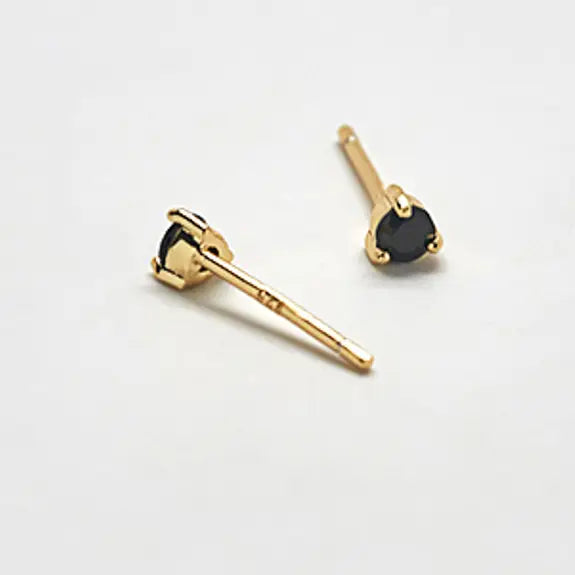 Transform your look with our Gold Black Cubic Zirconia Stud Earrings. Made with vermeil, these earrings elevate your style with a touch of luxury. The stunning cubic zirconia adds a pop of color and sparkle, perfect for adding a touch of glamour to any outfit. Step out in confidence and make a statement with these elegant and versatile earrings.