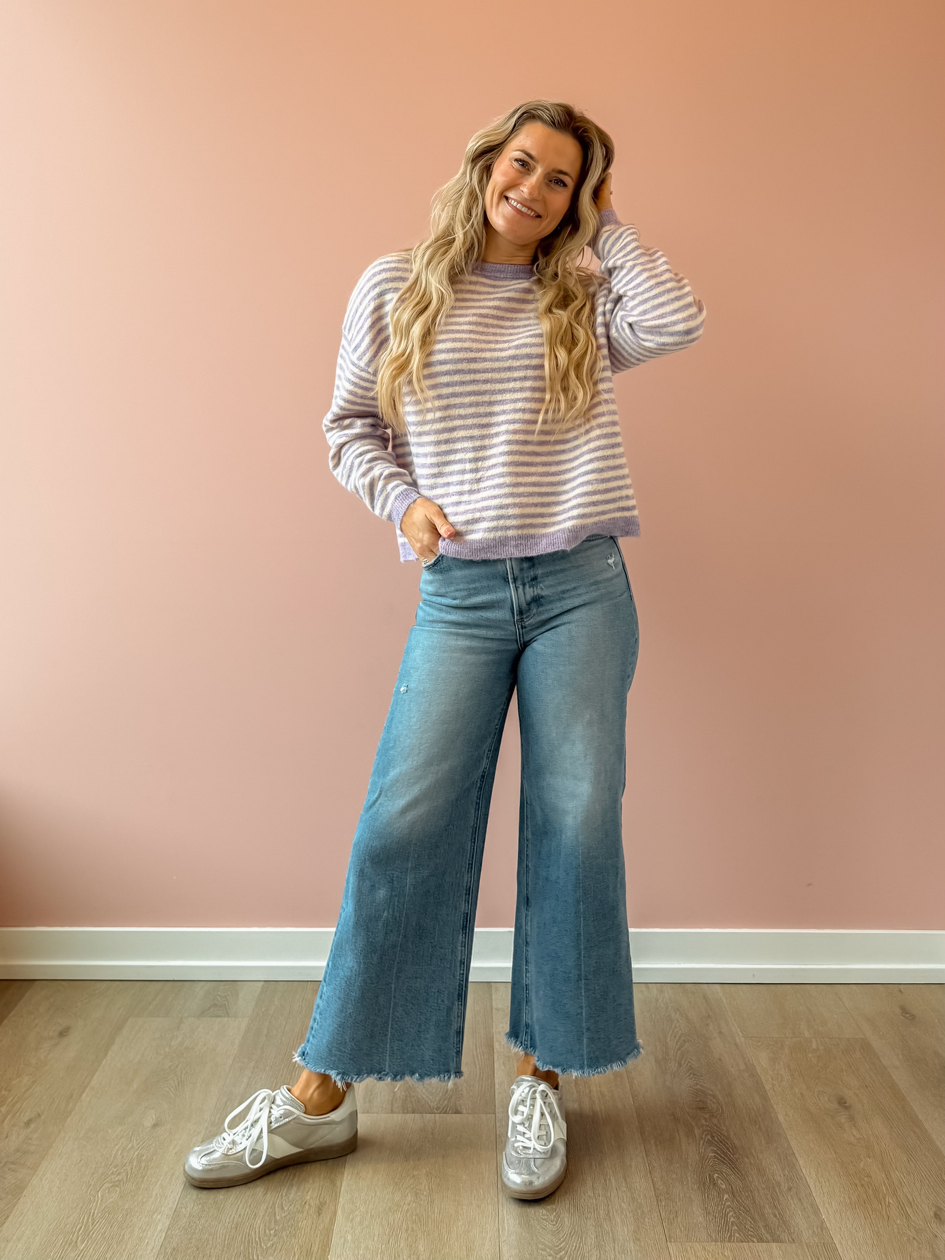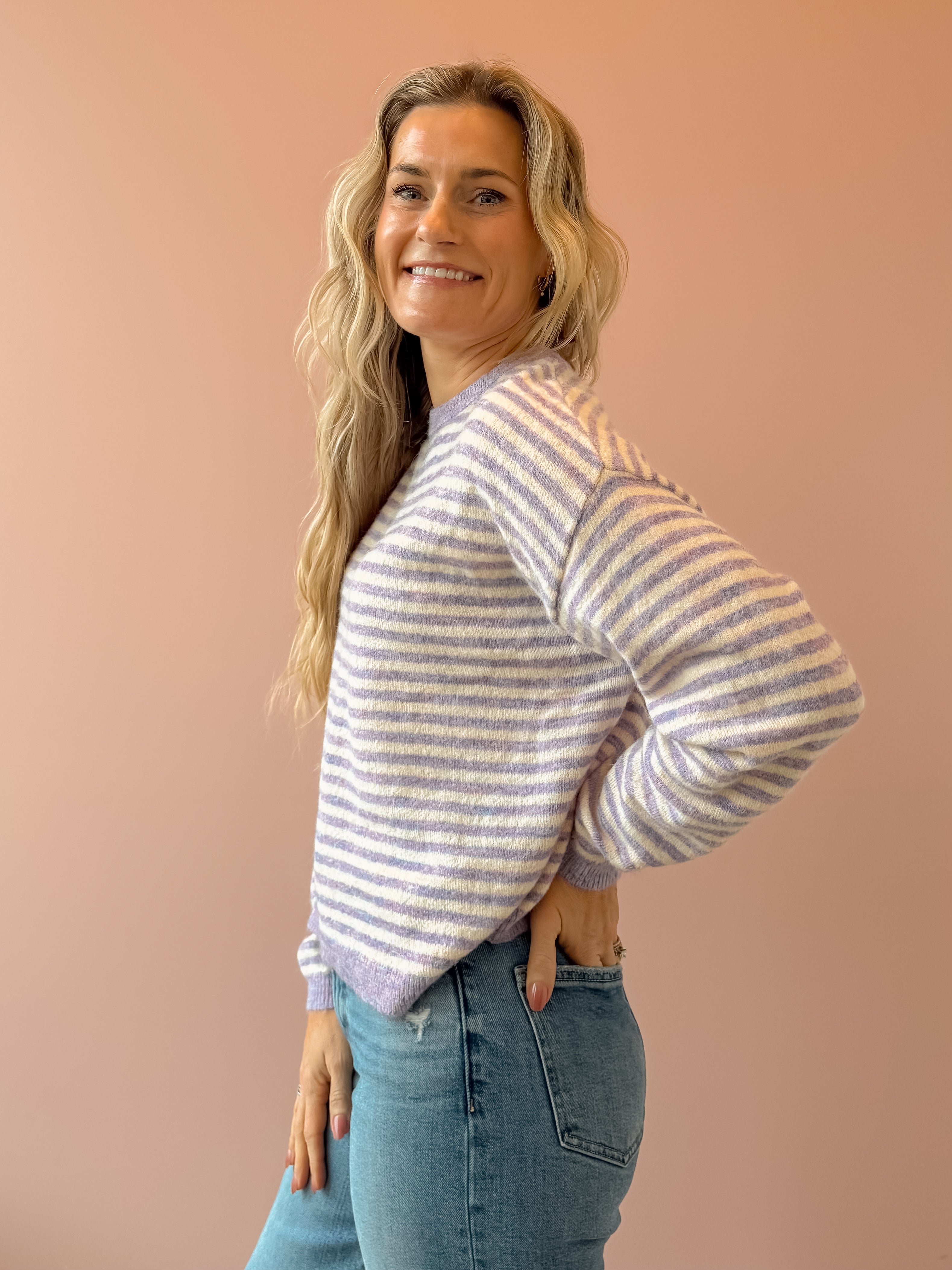 The Haley Sweater is your new go-to for effortless style. Crafted from a lightweight wool blend in a gorgeous lavender, this knit top keeps you cozy without the bulk, making it perfect for layering or wearing solo. The classic crew neckline delivers timeless appeal, while the breathable fabric ensures all-day comfort. Whether you're running errands or meeting friends, this versatile piece transitions seamlessly from casual to polished.