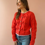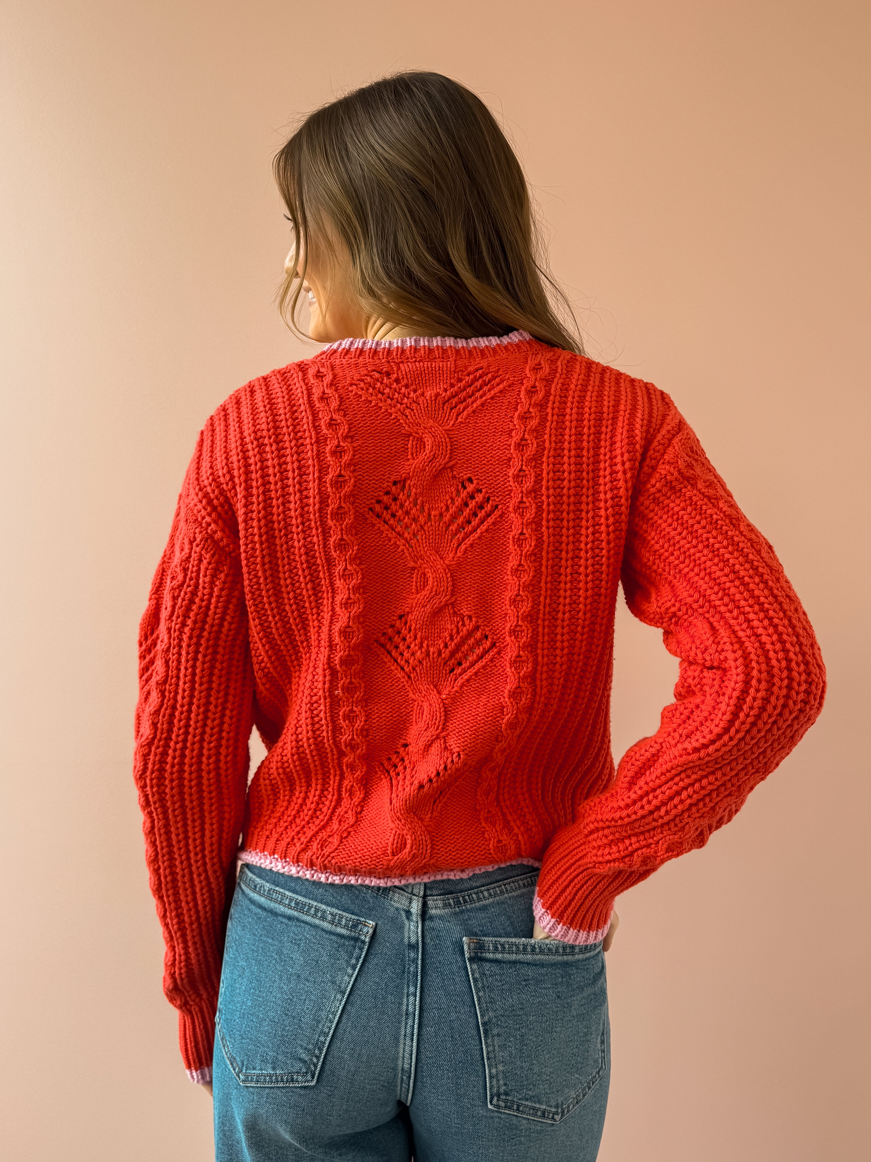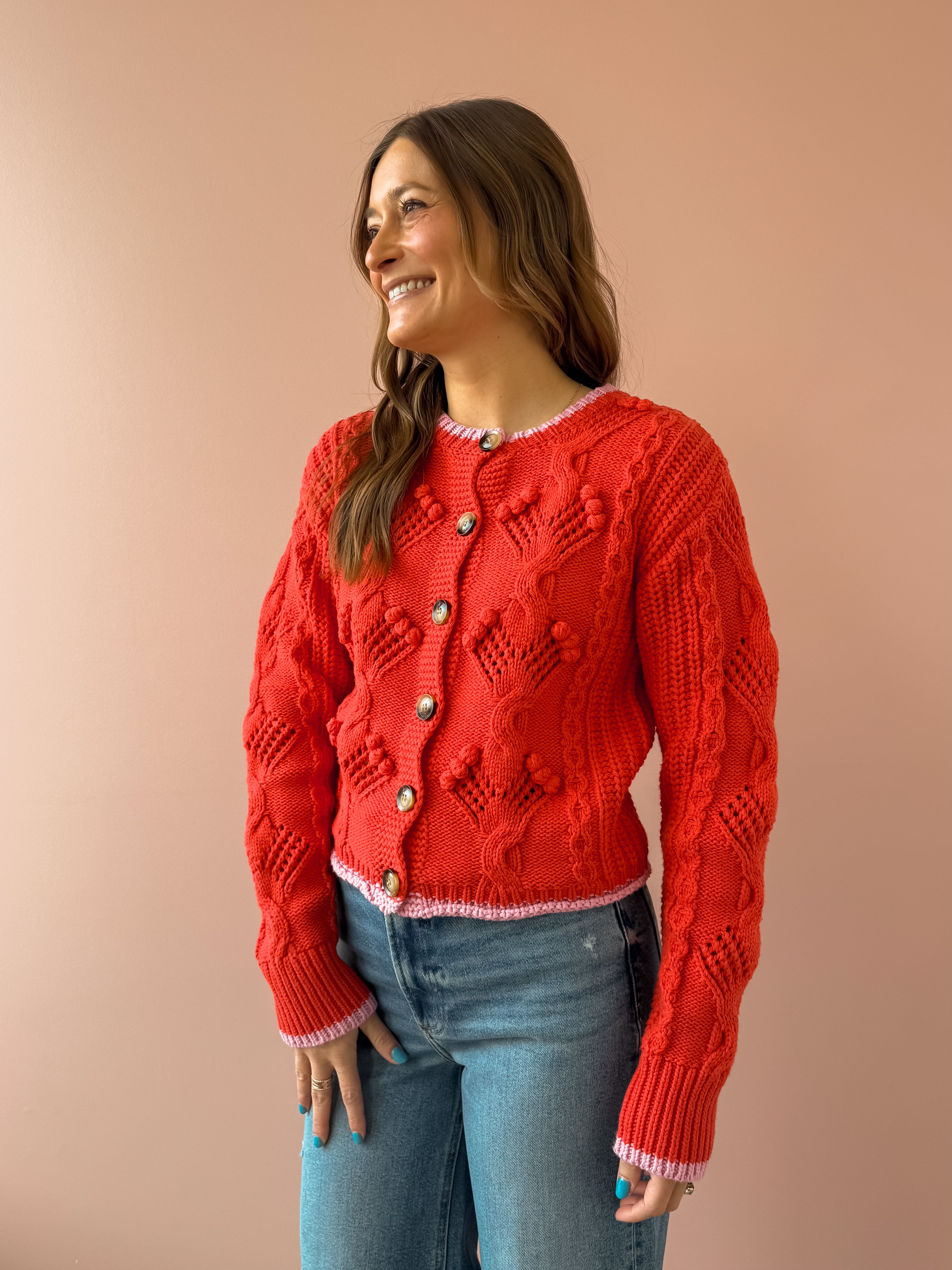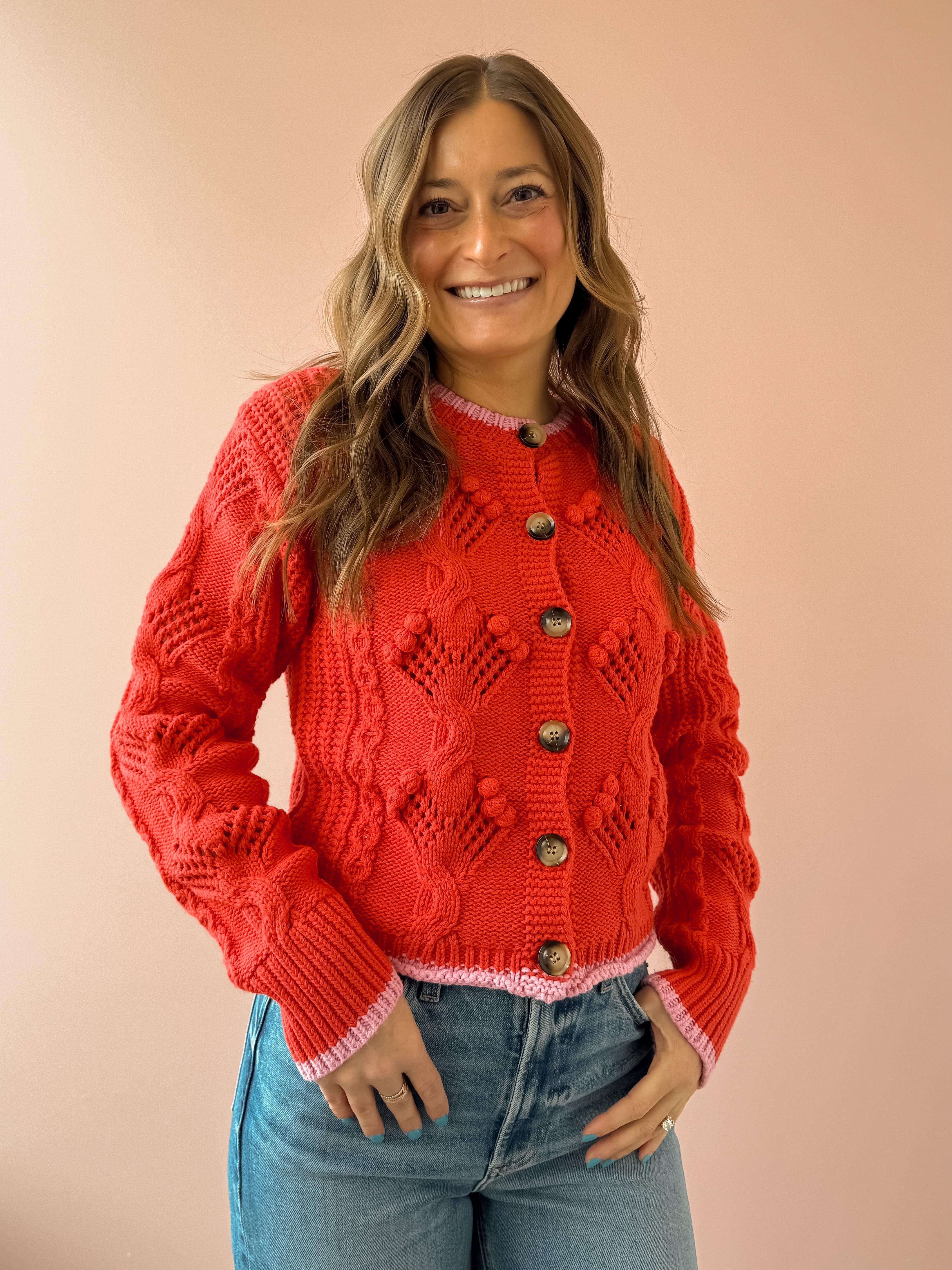 The Elaya Cardigan brings personality to your wardrobe with playful pink and red knit and coordinating trim details. This versatile layer works beautifully over dresses, tees, or solo for an effortless, polished look. Crafted from cozy knit fabric, it offers the comfort you crave without compromising on style. Whether you're dressing up for an occasion or keeping it casual, this cardigan delivers the perfect finishing touch!
