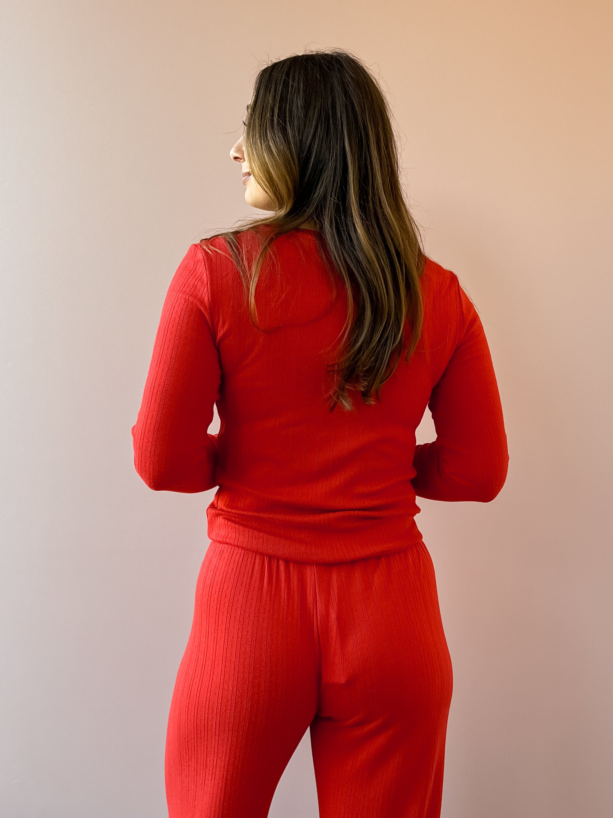 The Holly Pointelle LS Top combines a delicate pointelle knit with a timeless henley style, offering gentle texture and softness. Its fitted shape makes it perfect as a smooth base layer or a comfortable choice for lounging solo. Featuring long sleeves, a button-front, and a luxuriously soft heavy wash, this top blends classic design with cozy comfort. Pair this with our Luxe Pointelle Pant for a cozy, matching set!