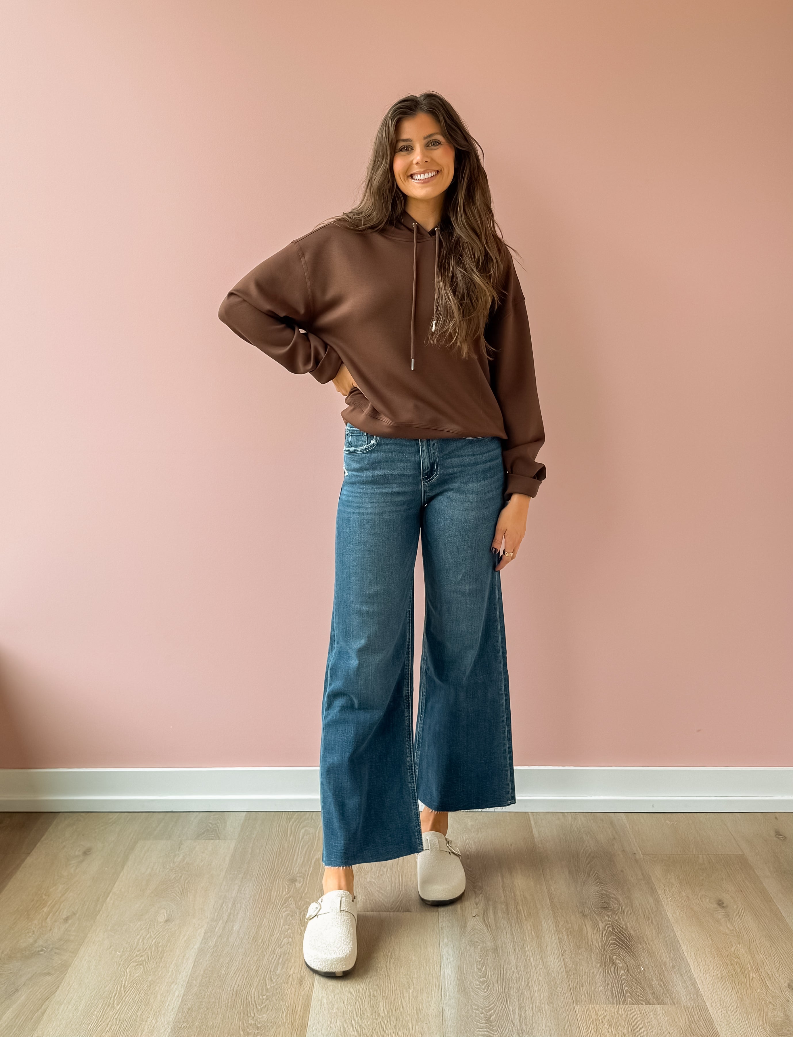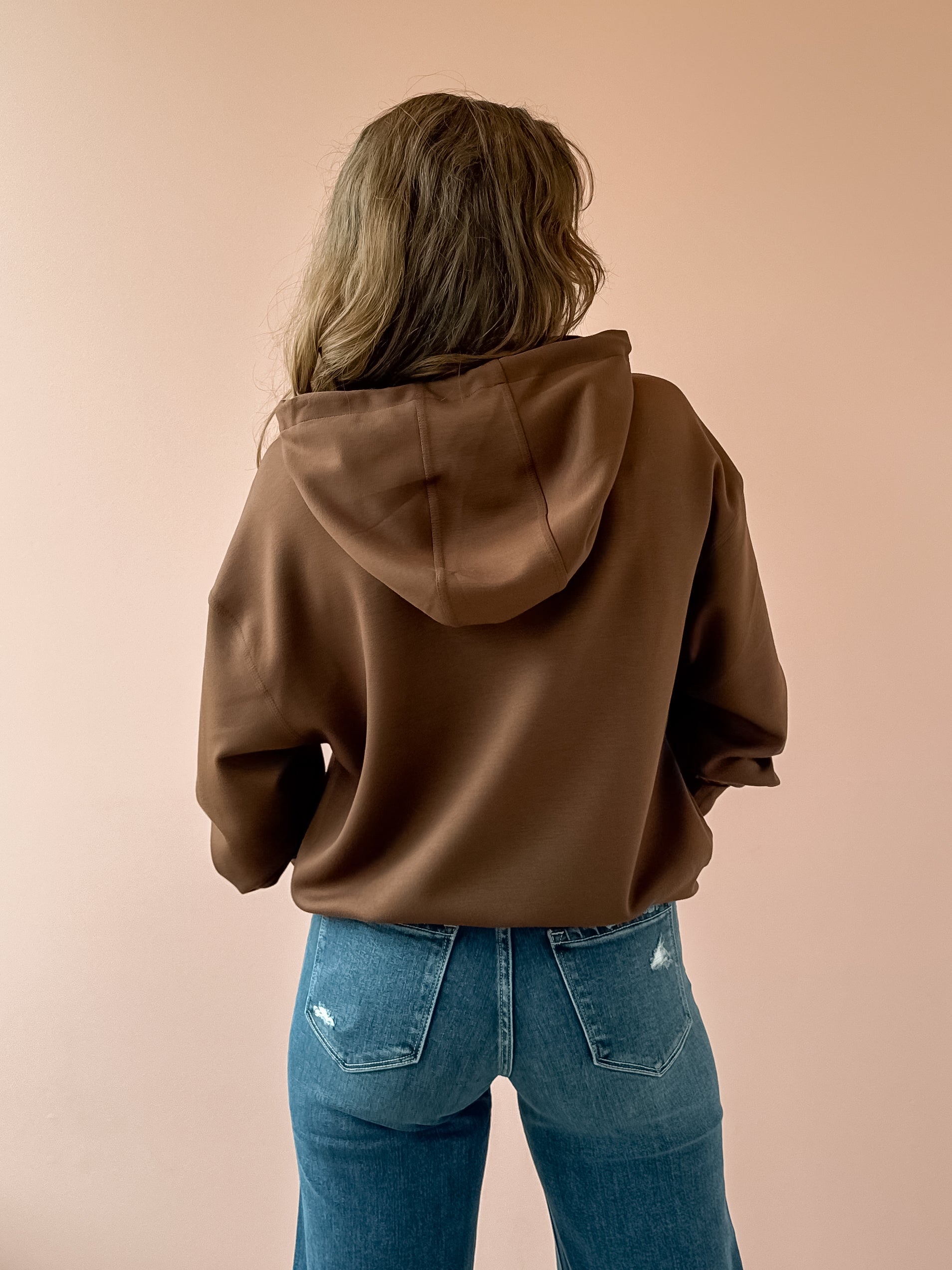 The Katie Hoodie combines comfort and style with its soft, smooth fabric and rich chocolate brown color. Designed with a slightly oversized fit and adjustable drawstrings, it offers cozy warmth and effortless ease. Perfect for pairing with denim and sneakers, this versatile hoodie is your go-to for a chic, on-the-go look that feels as good as it looks.