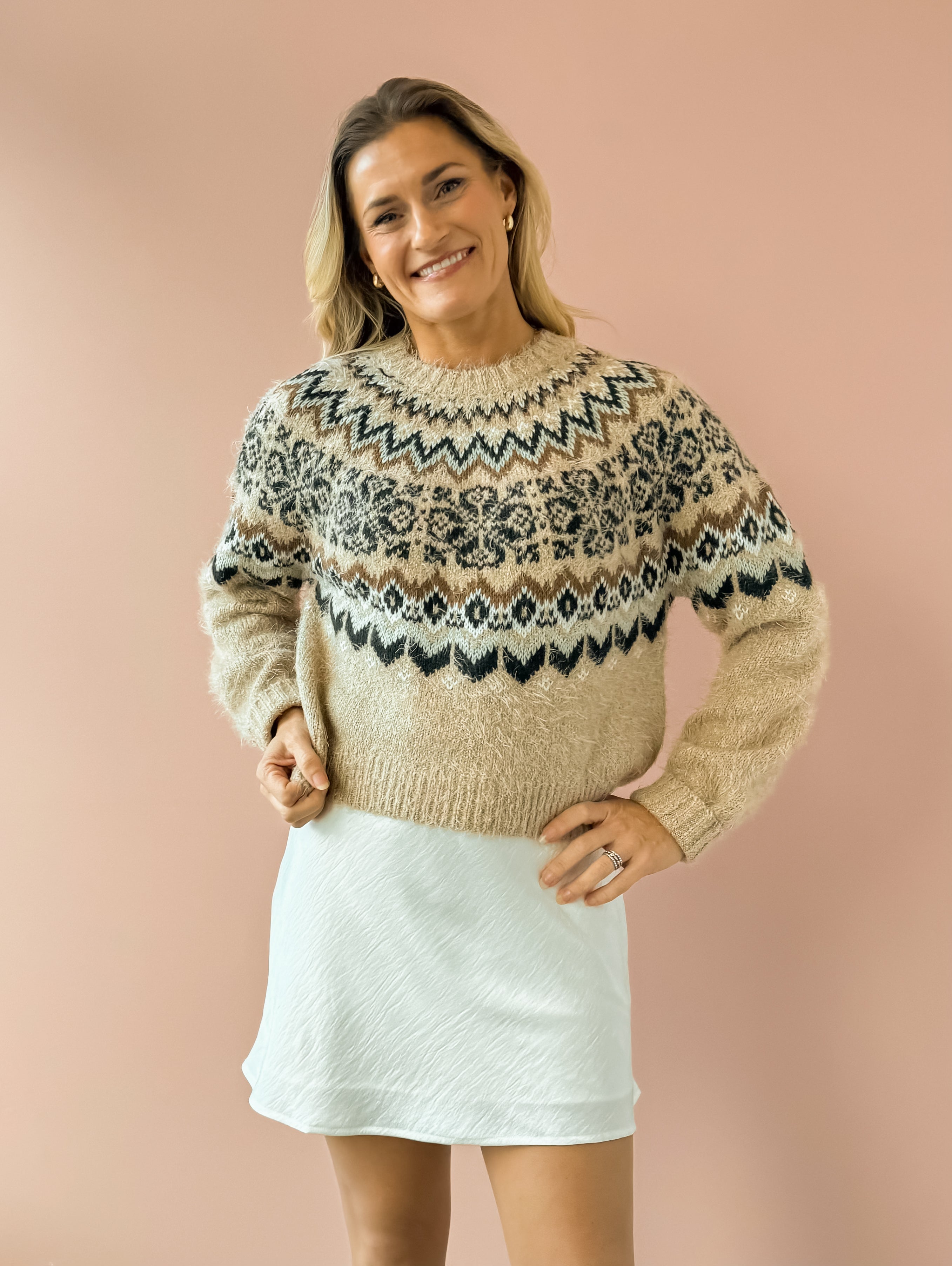 Elevate your sweater collection with the Kenaby Fair Isle Sweater, where timeless pattern meets modern comfort. Crafted from luxuriously soft, feathered yarns, this relaxed-fit knit delivers an irresistibly gentle touch. The classic crew neckline and effortless drape make it endlessly versatile. Whether you're seeking warmth without bulk, this Fair Isle essential combines heritage design with contemporary ease. We love this with a mini skirt and boots, or denim and a bootie!