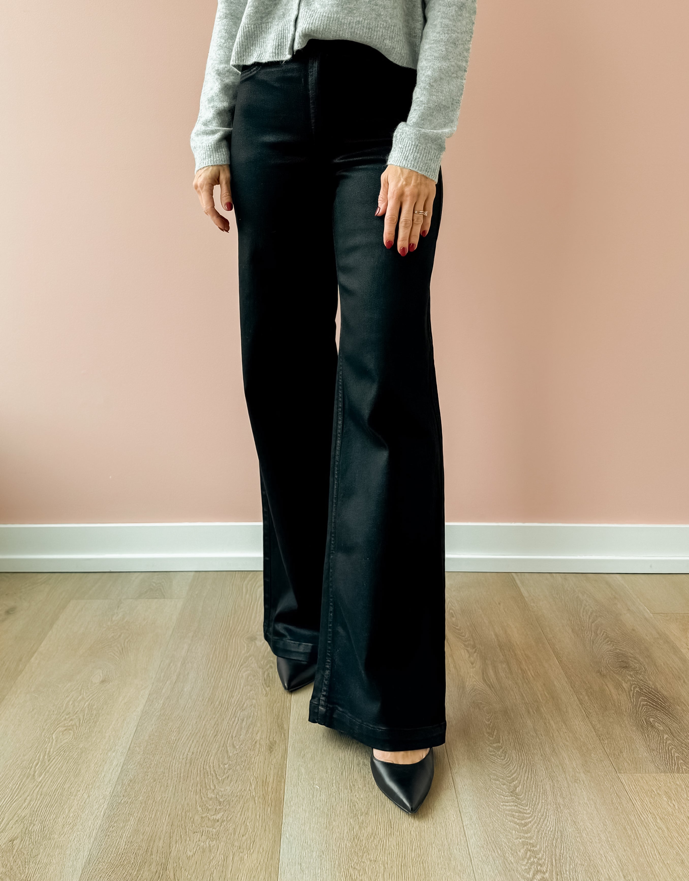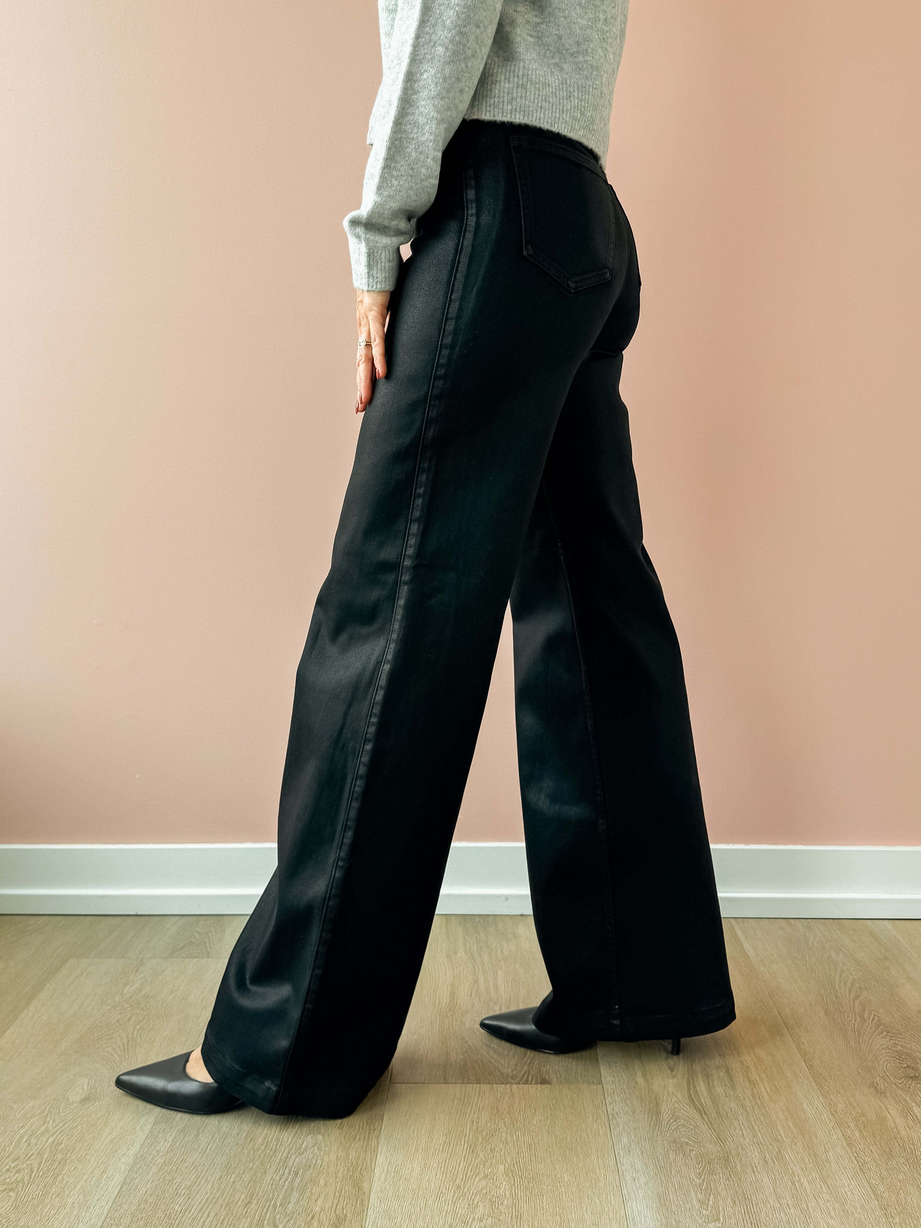 Lana Ultra Wide Leg Jeans - Coated Noir