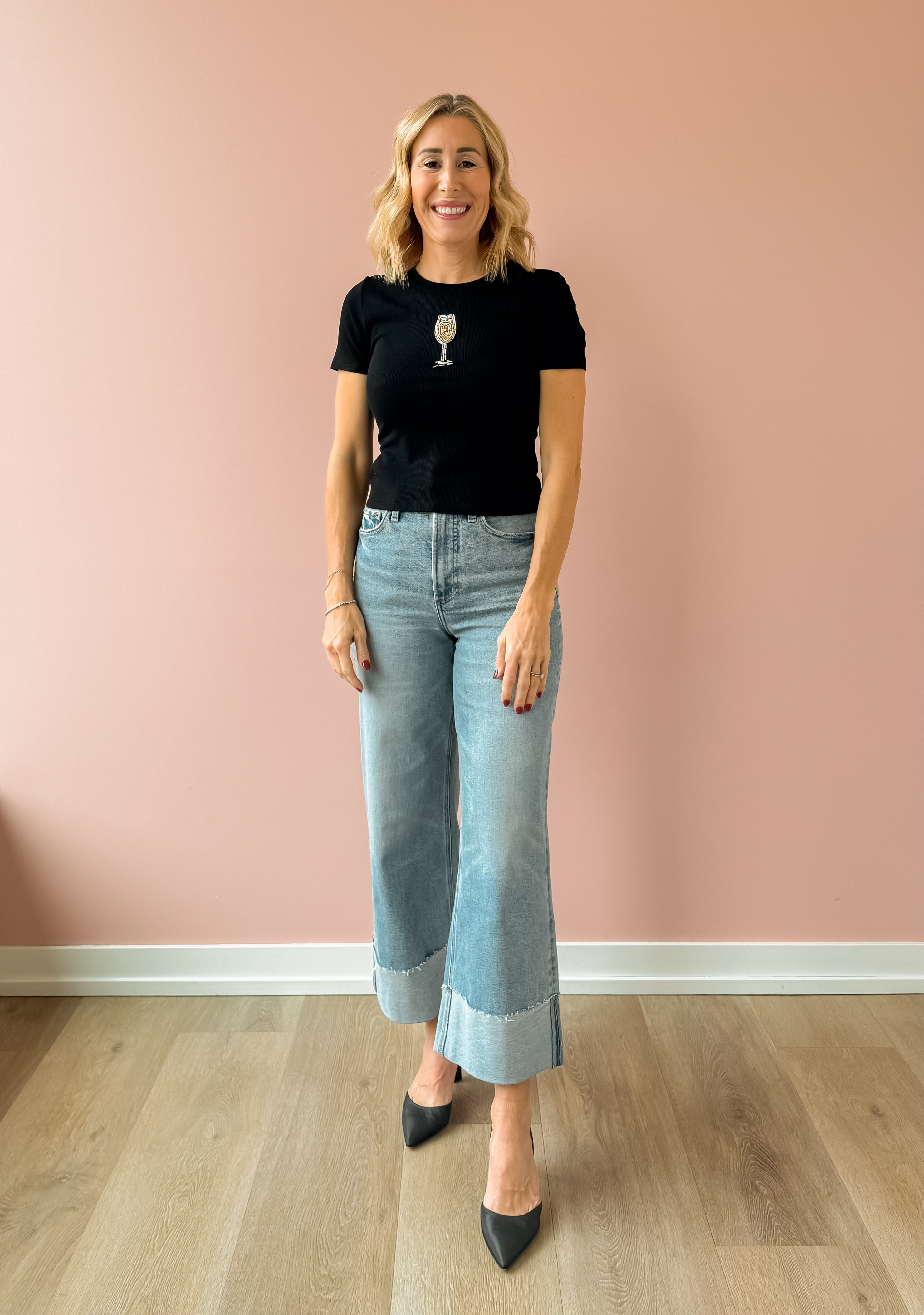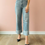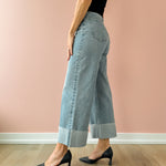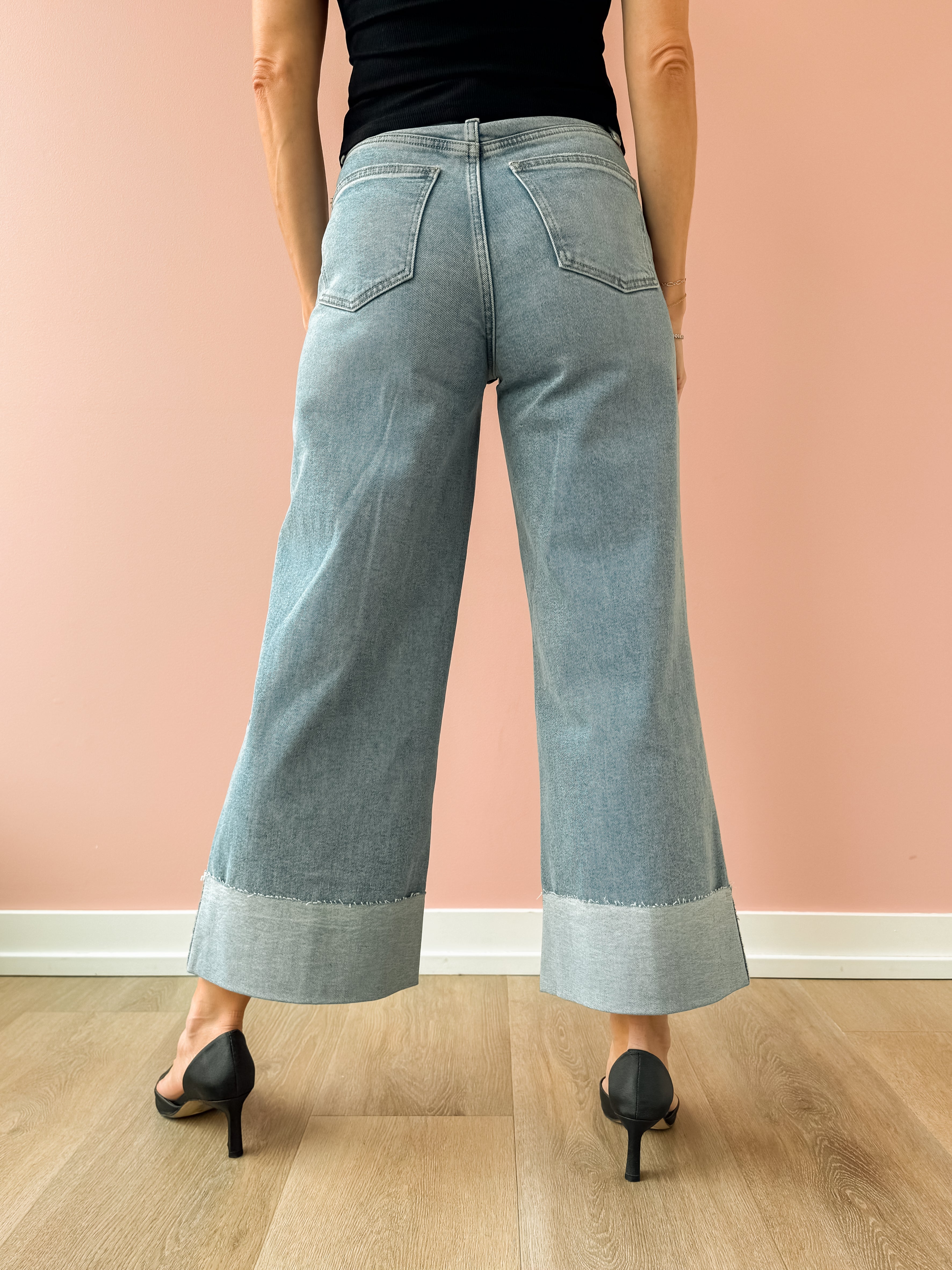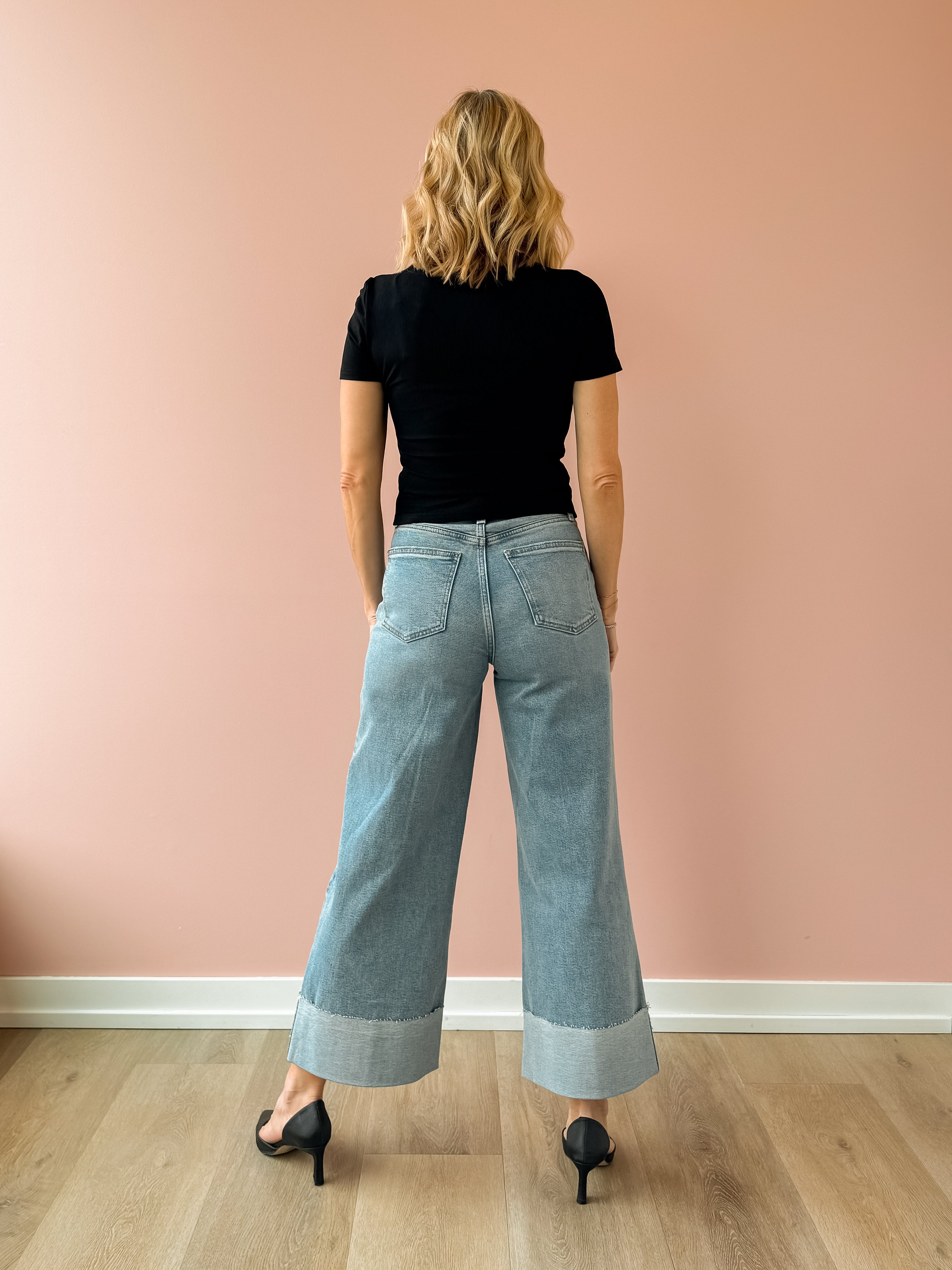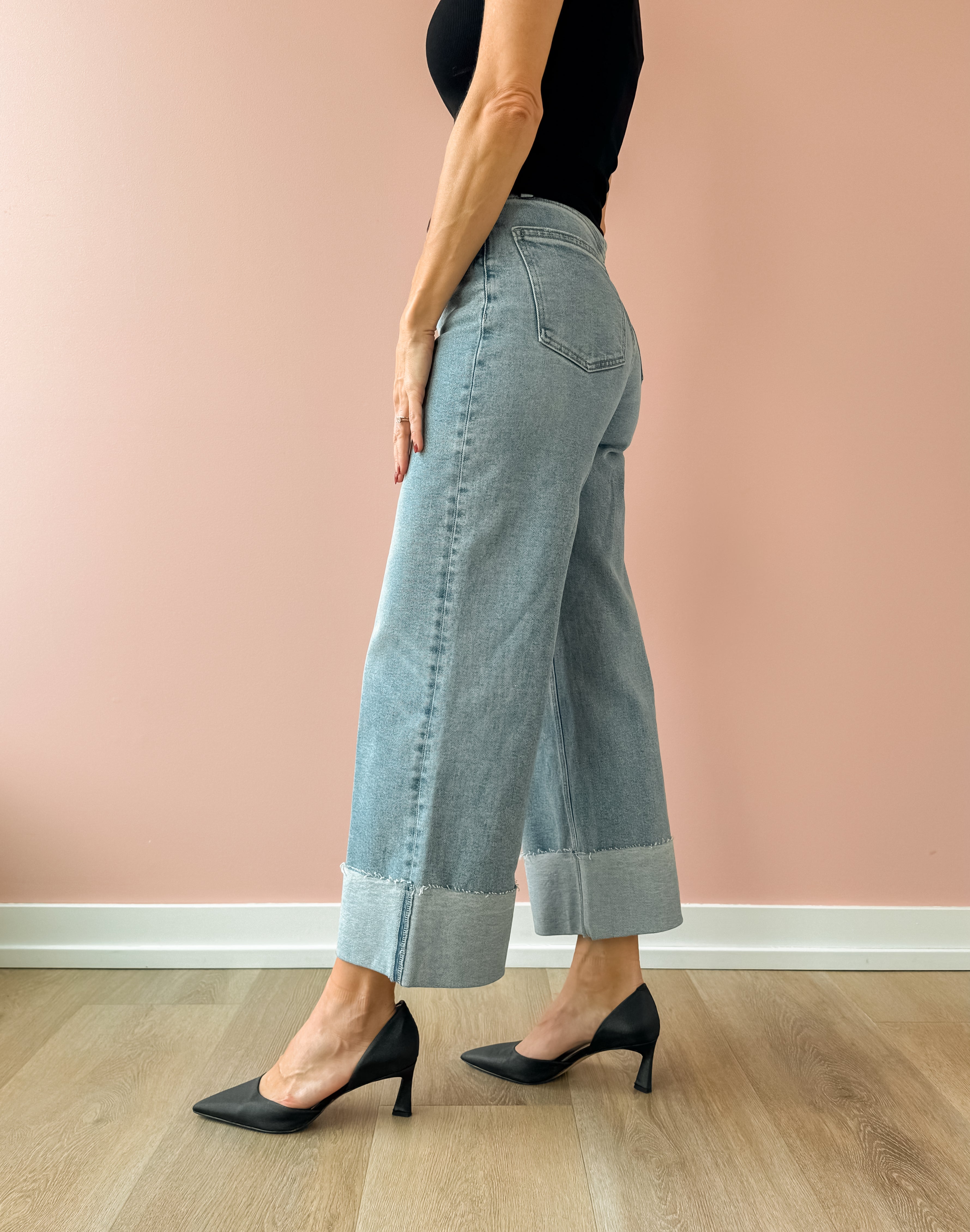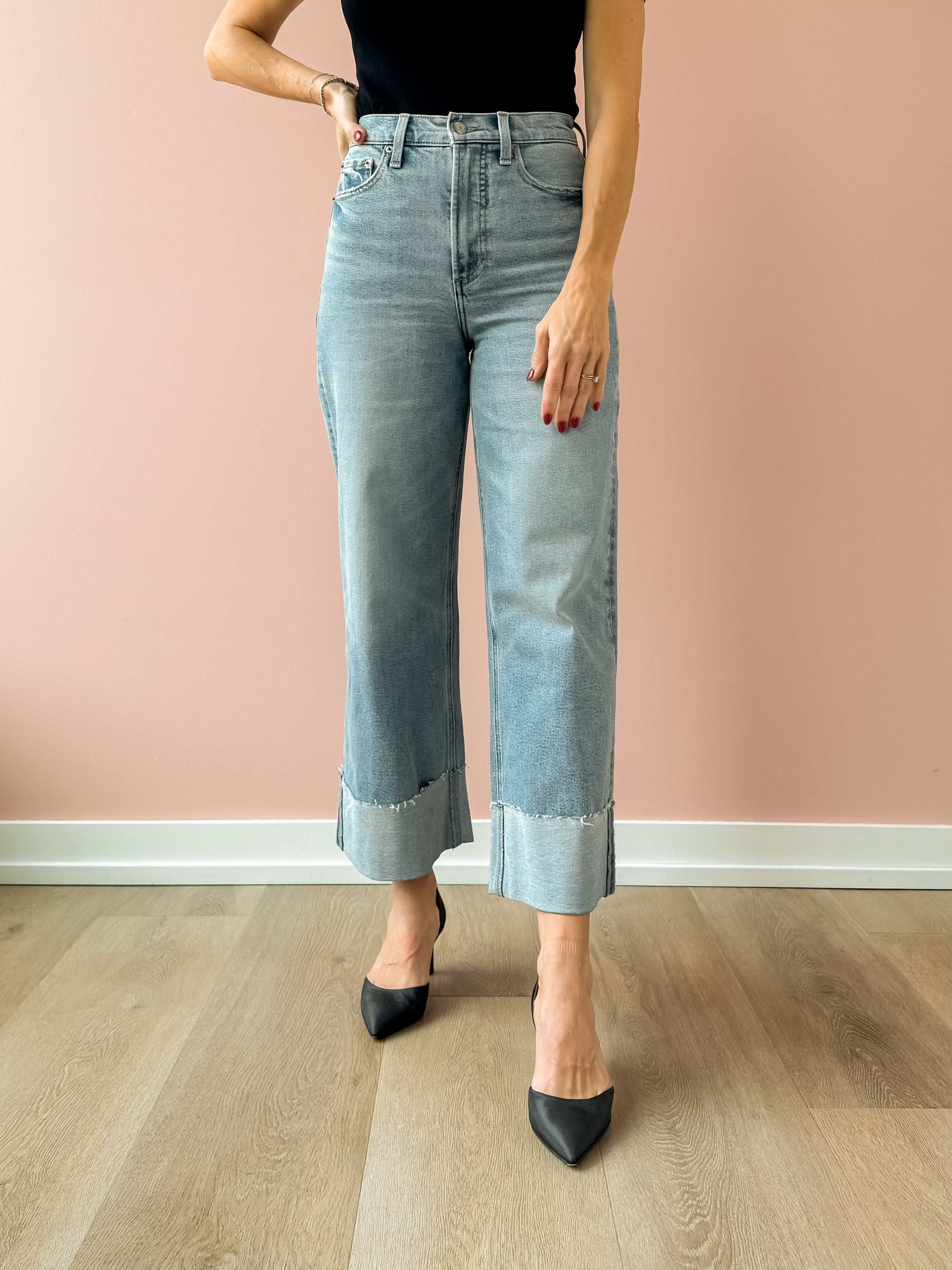 Finished in a light blue wash, the Lana jean by Pistola features a wide leg silhouette with a high-rise fit and cuffed hems. The soft cotton denim has a hint of stretch, making them perfect for day-to-night wear. Dress them up with a sweater and boots, or make them casual with a crewneck and sneakers!