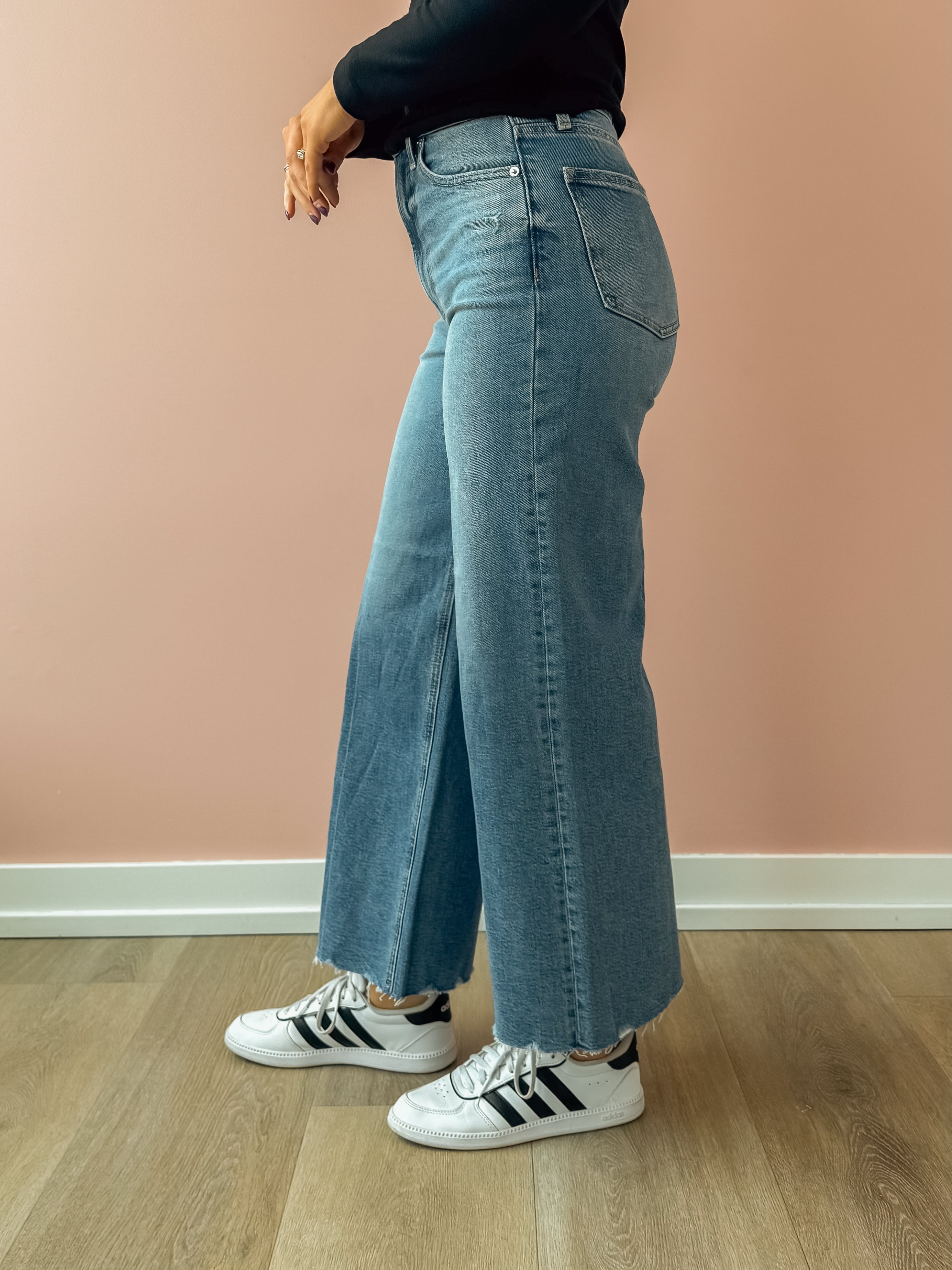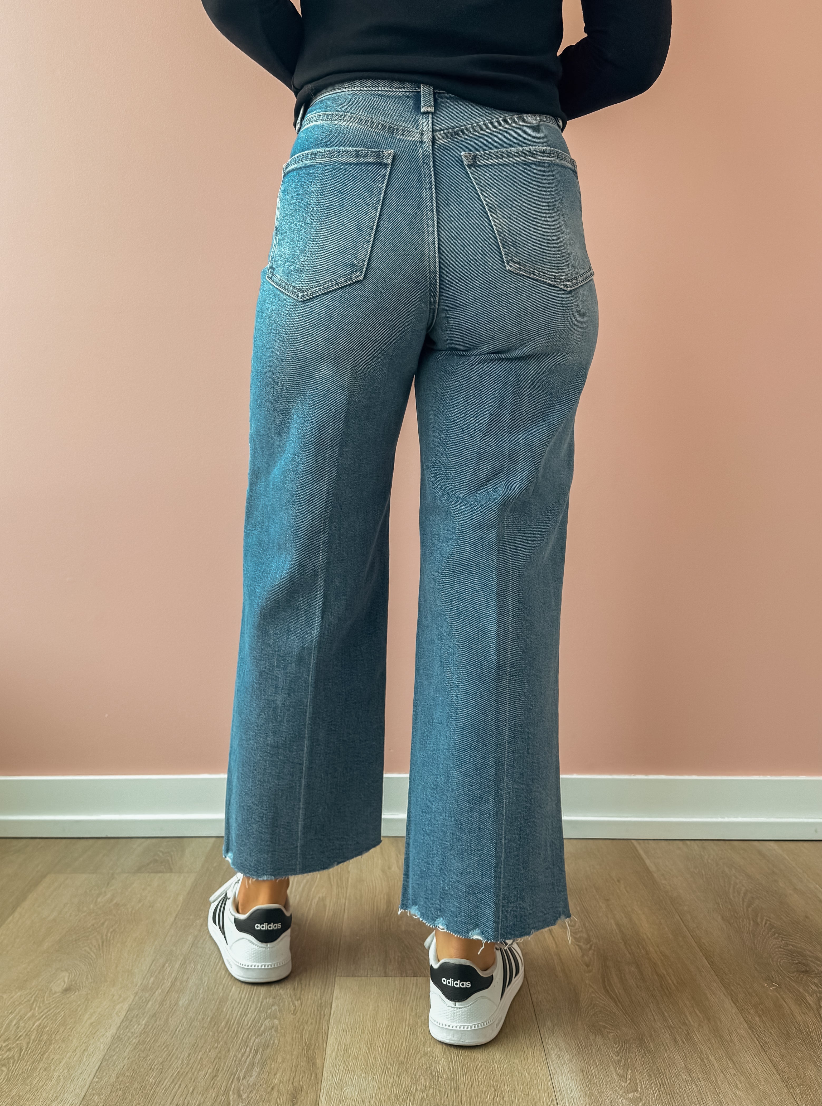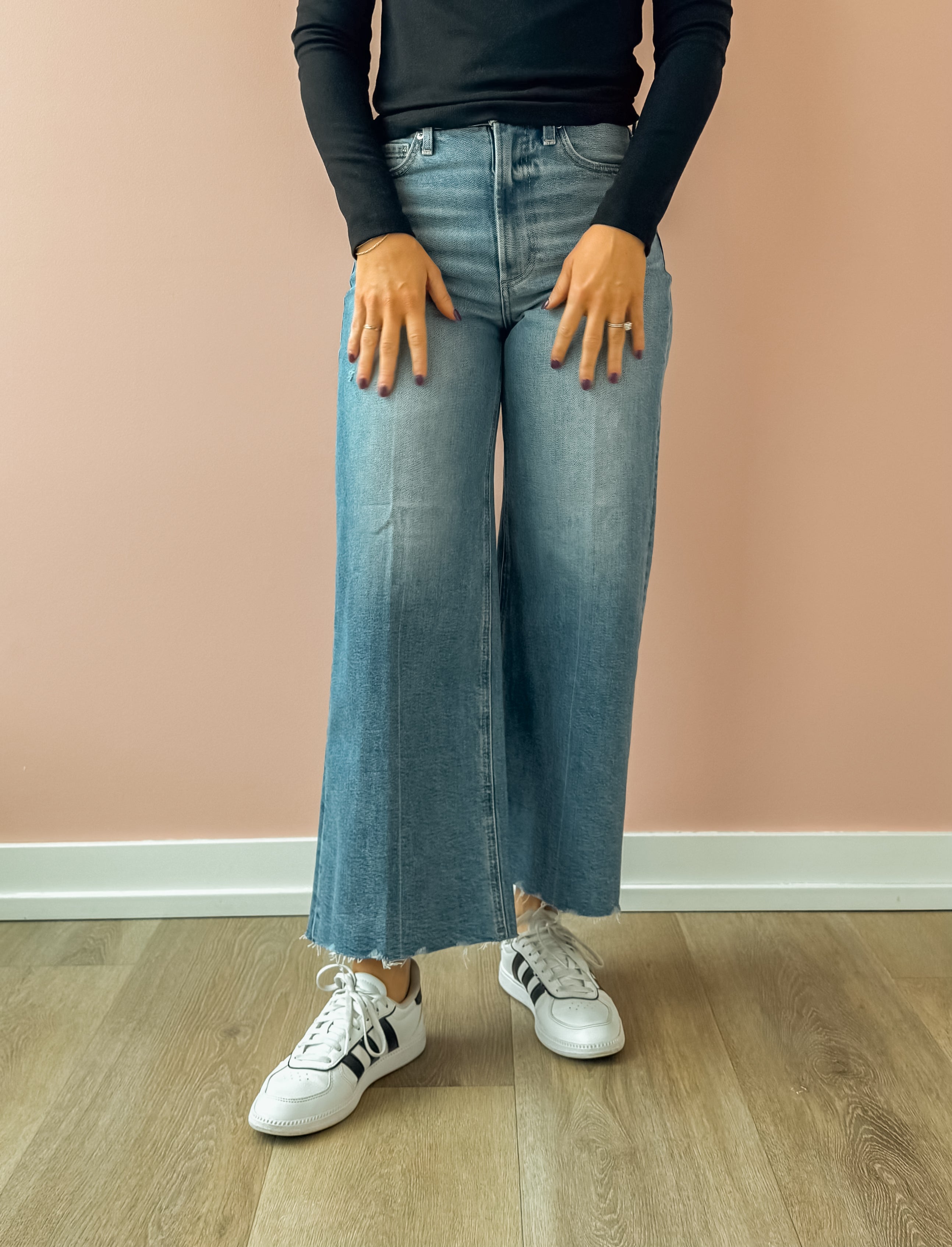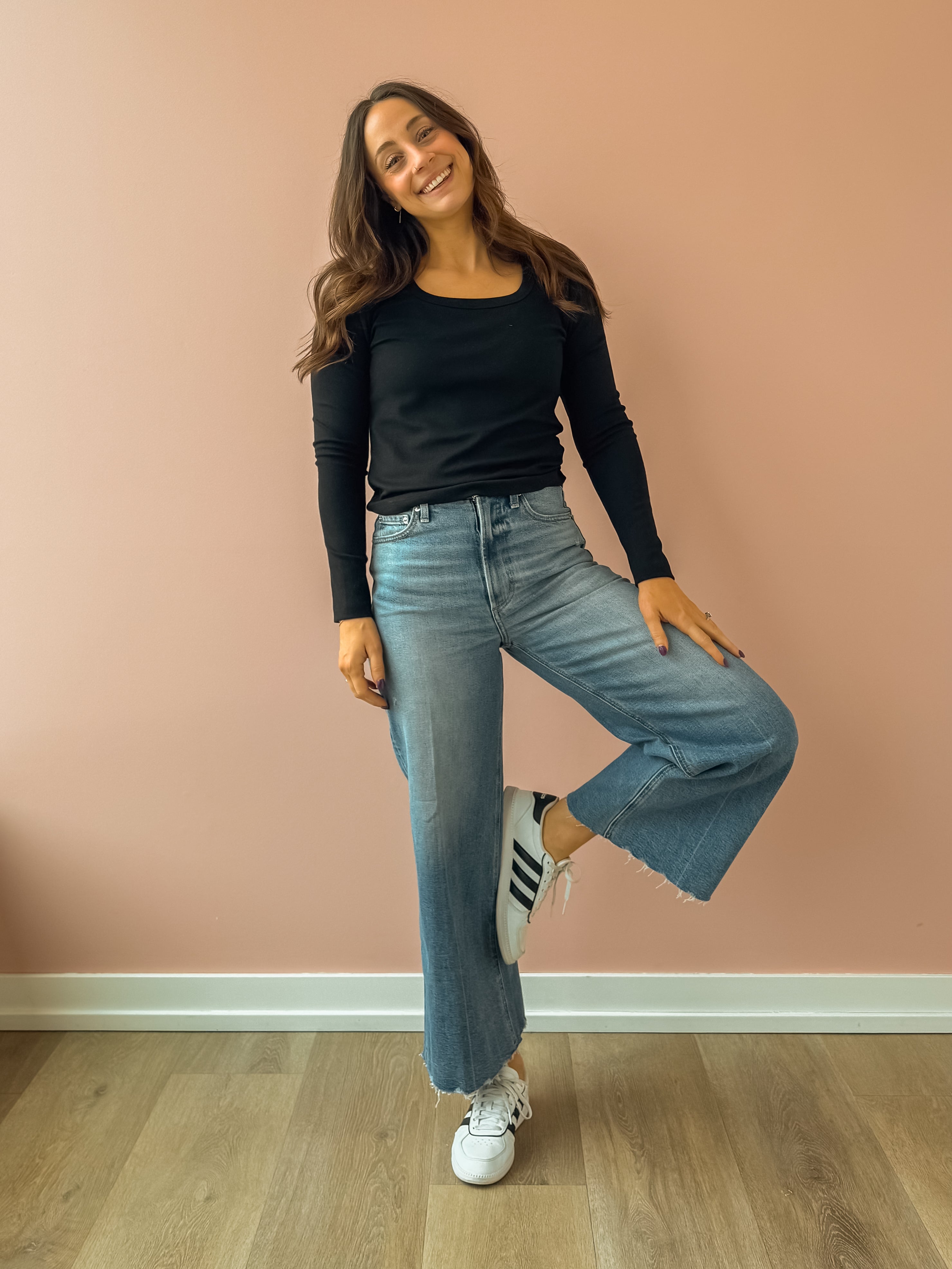 Chic, bold, and made to move with you—the wide leg silhouette on this pair makes a statement in all the right ways. Designed in Pistola’s signature comfort stretch denim, they offer structure with just the right amount of give. Featuring a raw hem, the dark wash is crisp, clean, and finished with classic metal hardware. Style with a tucked-in tank and a jacket, or flirty blouse to balance the volume. Perfect with boots or sneakers!