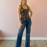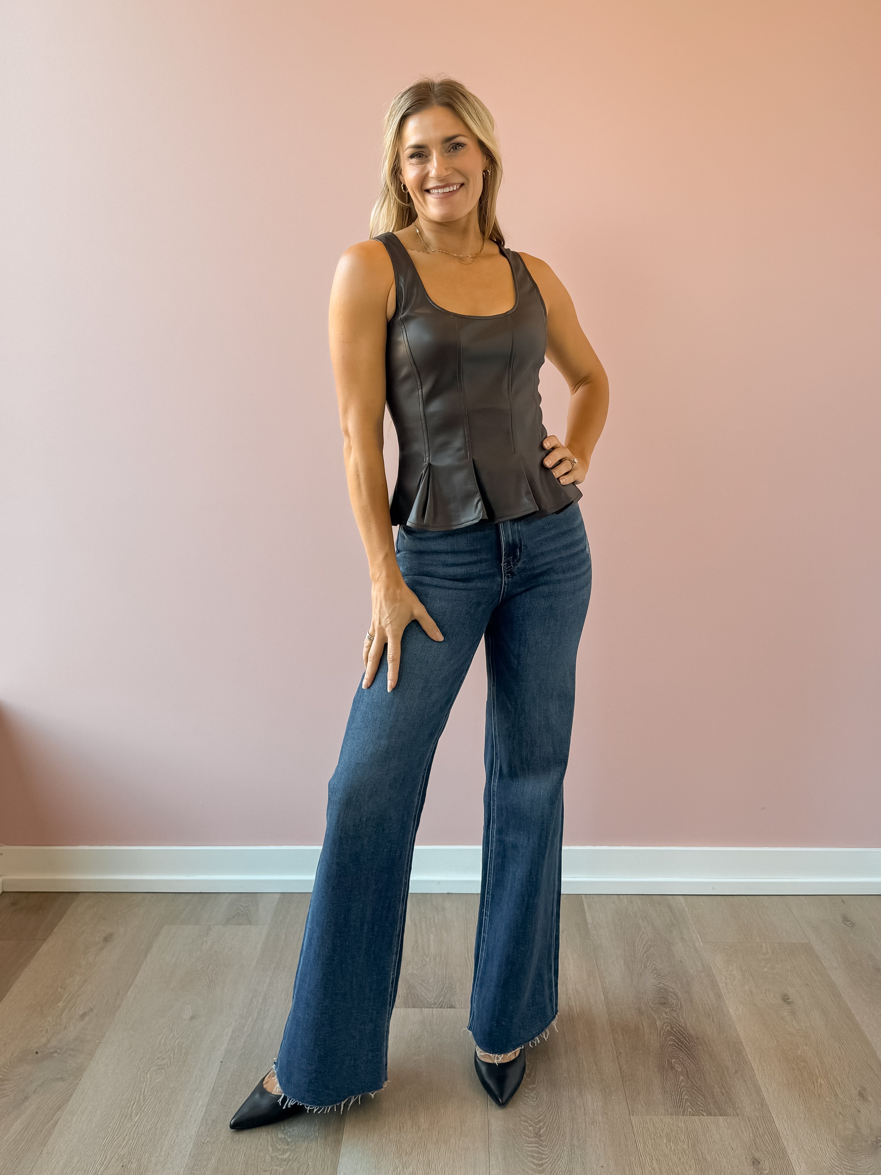 The Larosey Top combines a sleeveless, chocolate brown design with a flirty, fit-and-flare silhouette that highlights your feminine side. Its low scoop neckline adds a touch of edge while maintaining elegance. Perfect for pairing with denim and heels, it’s an ideal choice for a stylish night out that turns heads.