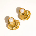 Elevate your vacation wardrobe with these stunning shell stud earrings featuring a lustrous pearl accent in gold. Lightweight and effortlessly chic, they're the perfect companion for spring and summer adventures. Whether you're lounging beachside or exploring a new destination, these beauties add a touch of coastal glamour to any look. Pack them, wear them, love them!