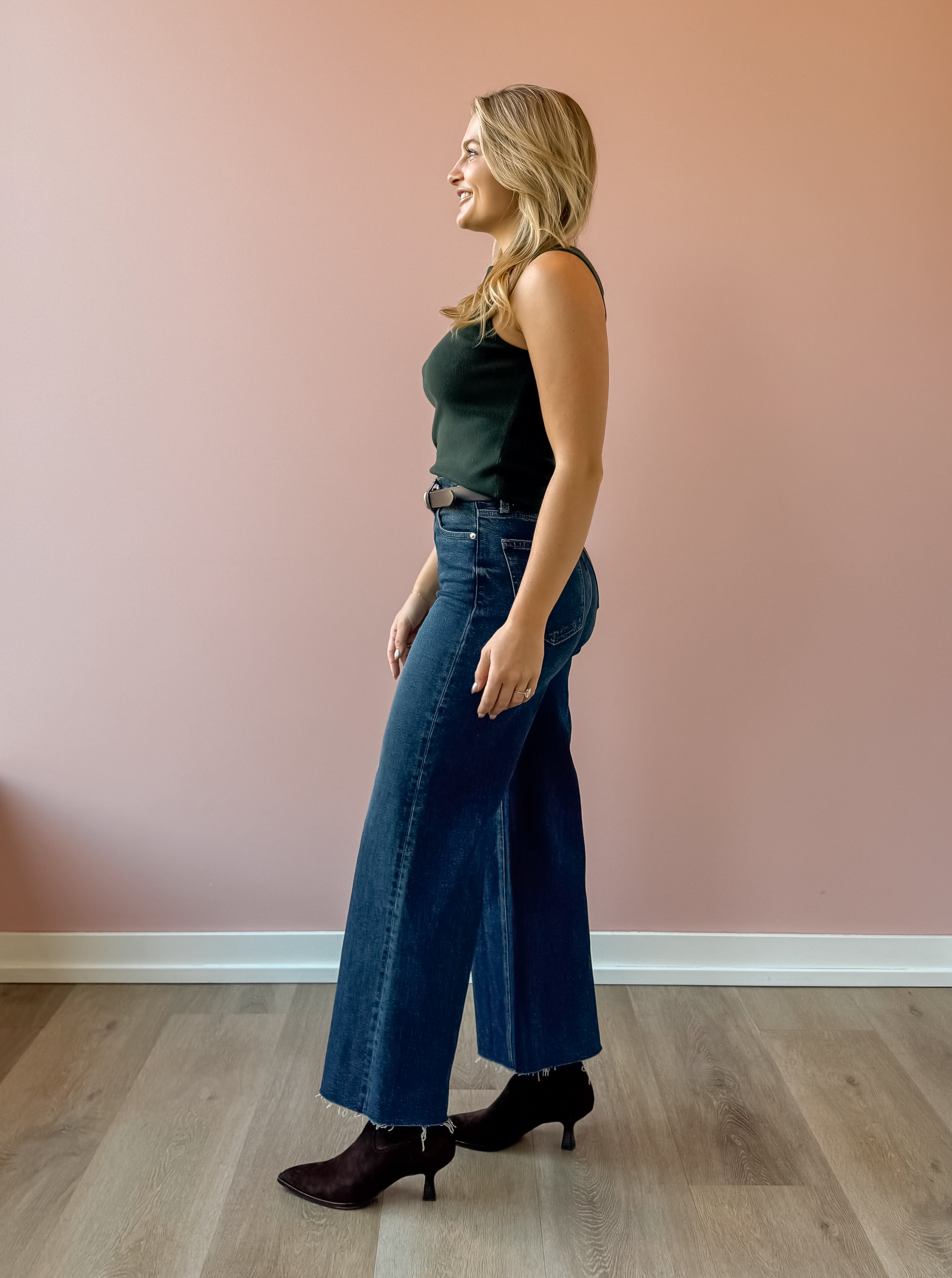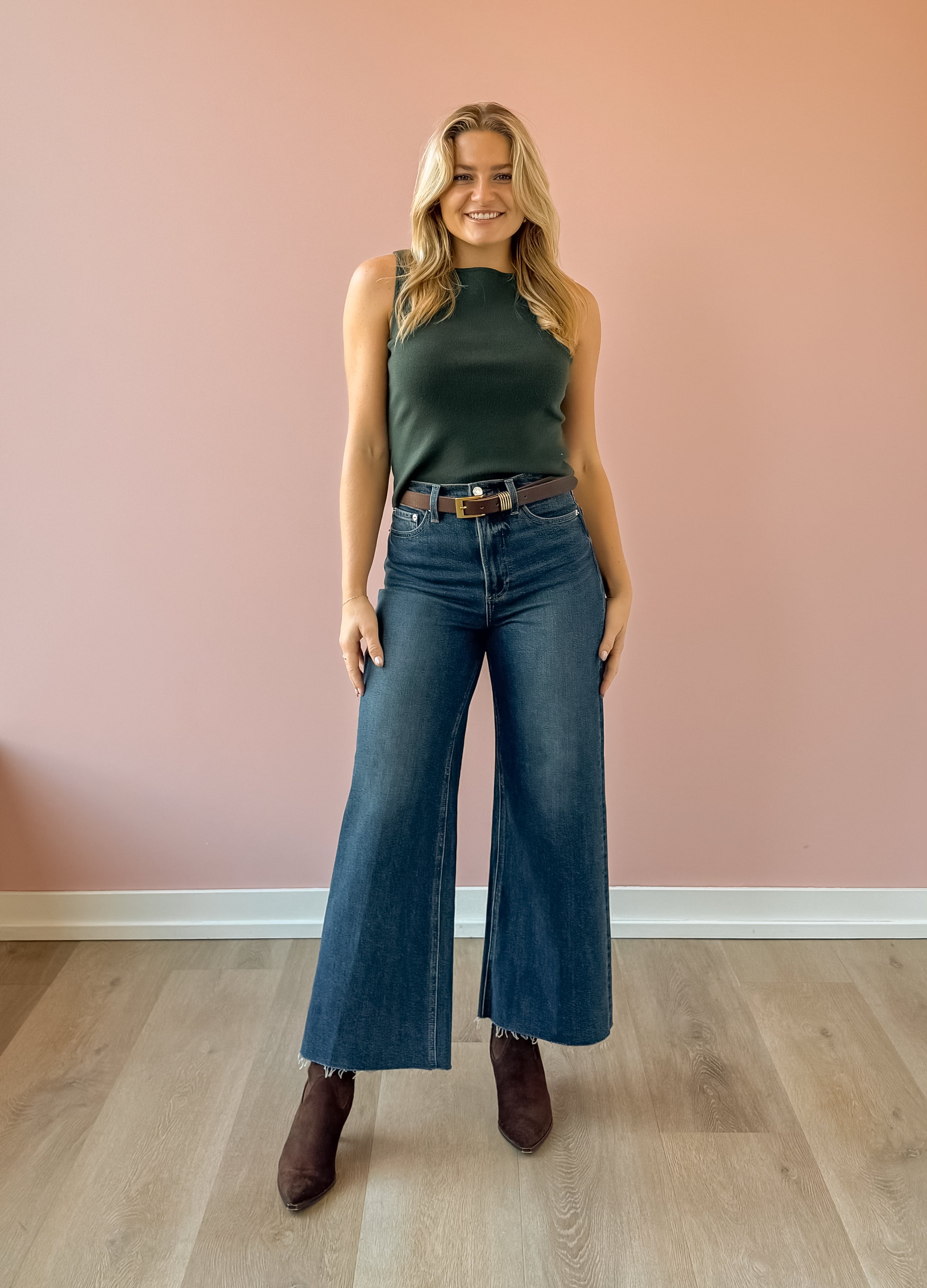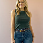 The Lola Top brings a touch of elegance to any outfit in a flattering forest green. Designed with a flattering boat neckline that grazes the collarbone and a sleek, sleeveless silhouette. Whether paired with tailored trousers for the office or denim and a leather jacket for the weekend, this piece adds instant sophistication to any look.