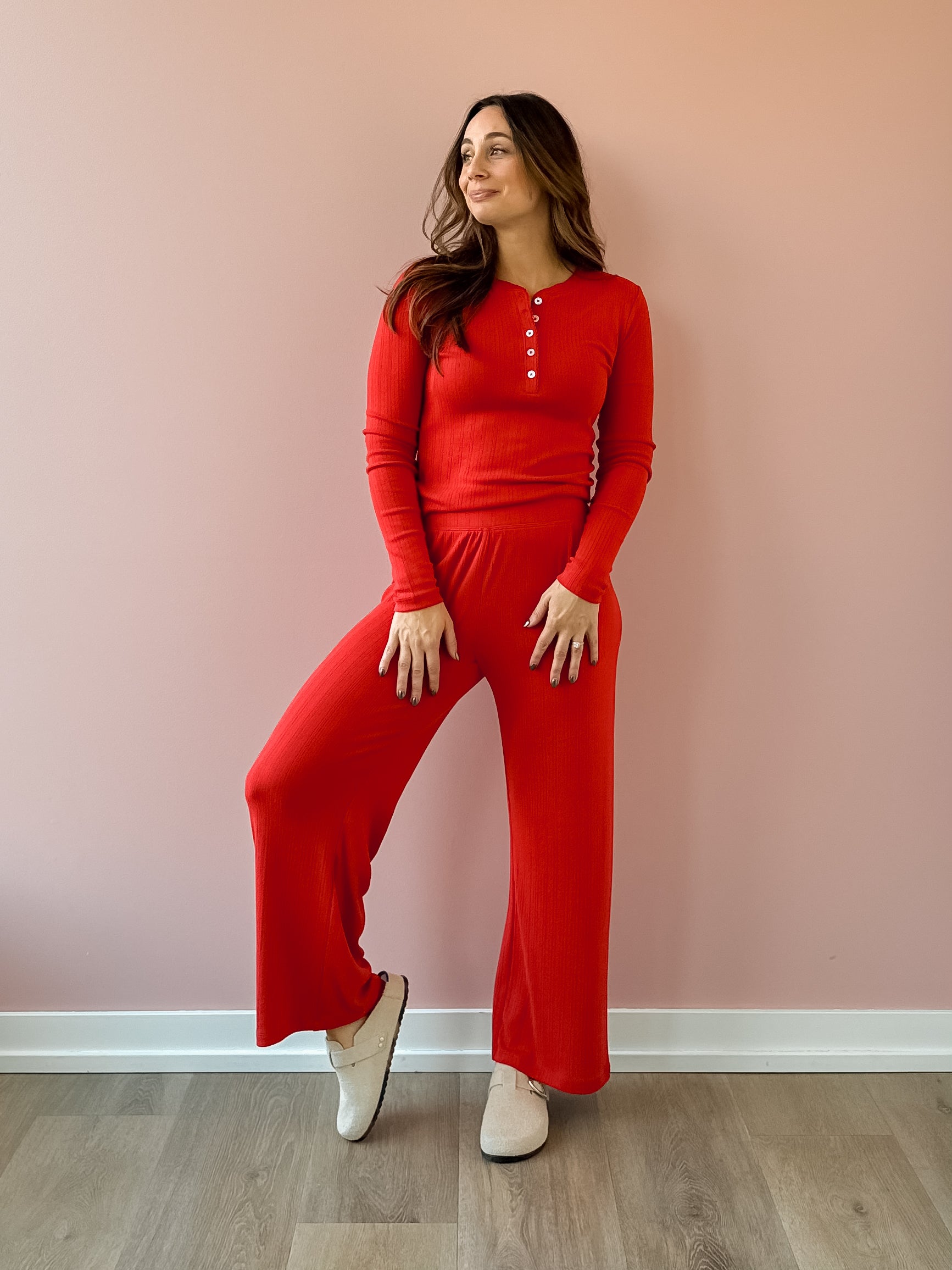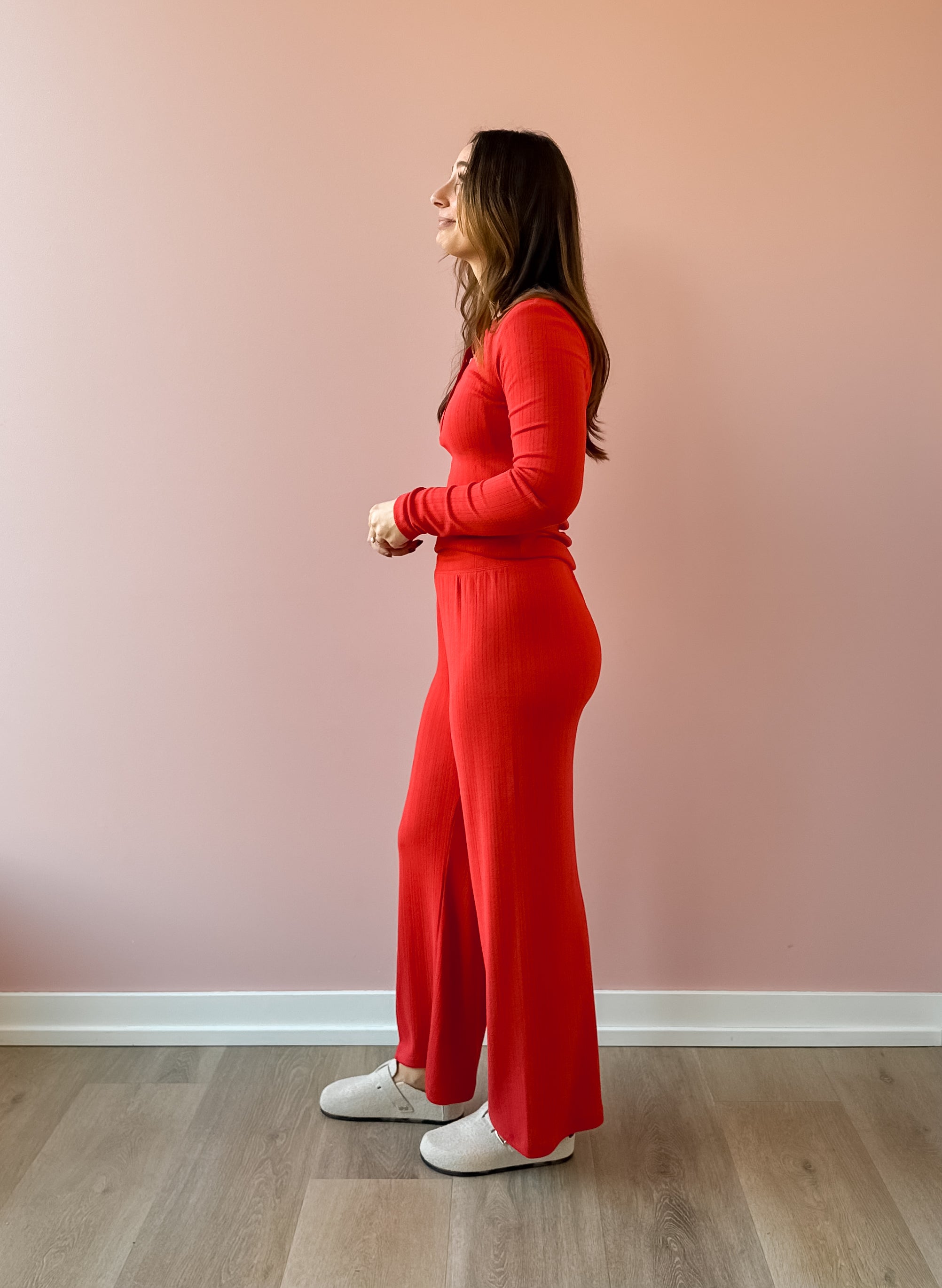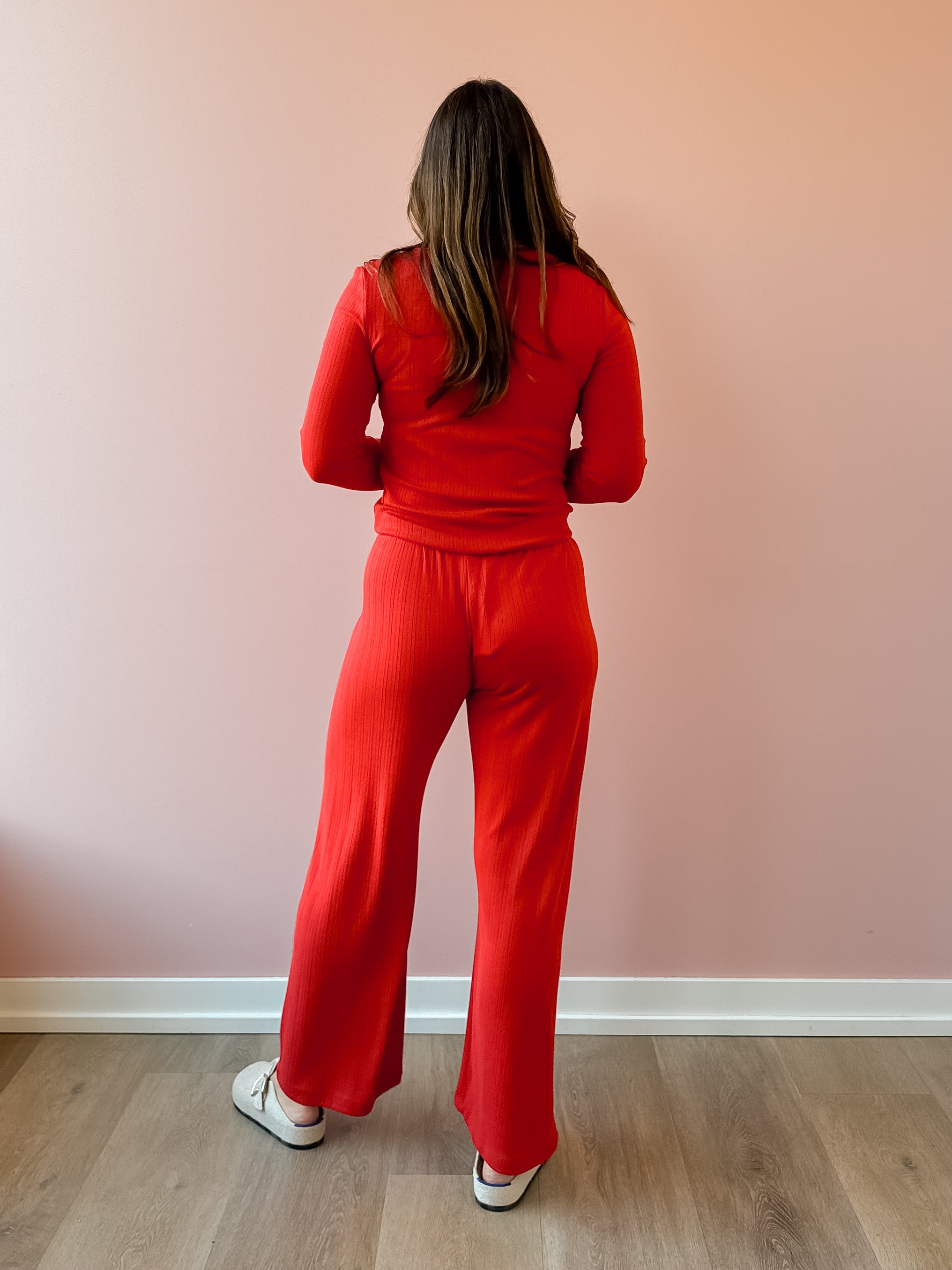 Experience effortless comfort and smooth elegance with these wide-leg pants made from our luxurious pointelle knit. Featuring a high-rise fit and a flowing full-length silhouette, they move gracefully with you throughout the day. The elastic waistband ensures a perfect, comfortable fit no matter the activity. Perfect for lounging or relaxing, these pants elevate your casual wardrobe. Complete the look by pairing them with our Holly Pointelle Long Sleeve Top for a stylish, cozy set you'll never want to take off.