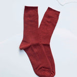 Step up your sock game with these Modal Glitter Socks in striking red. Crafted from a luxurious modal blend infused with subtle metallic shimmer, they deliver the perfect fusion of comfort and glamour. The soft, breathable fabric stretches to fit your foot perfectly, while the lightweight construction keeps them feeling barely-there throughout your day.