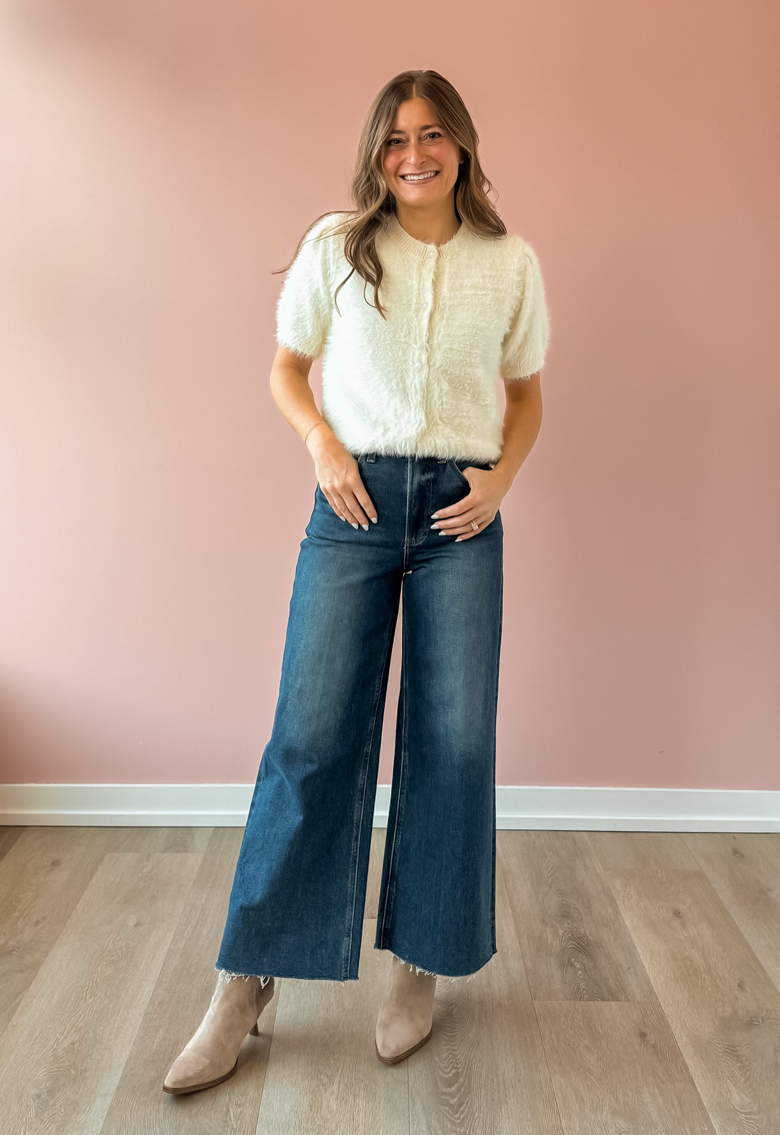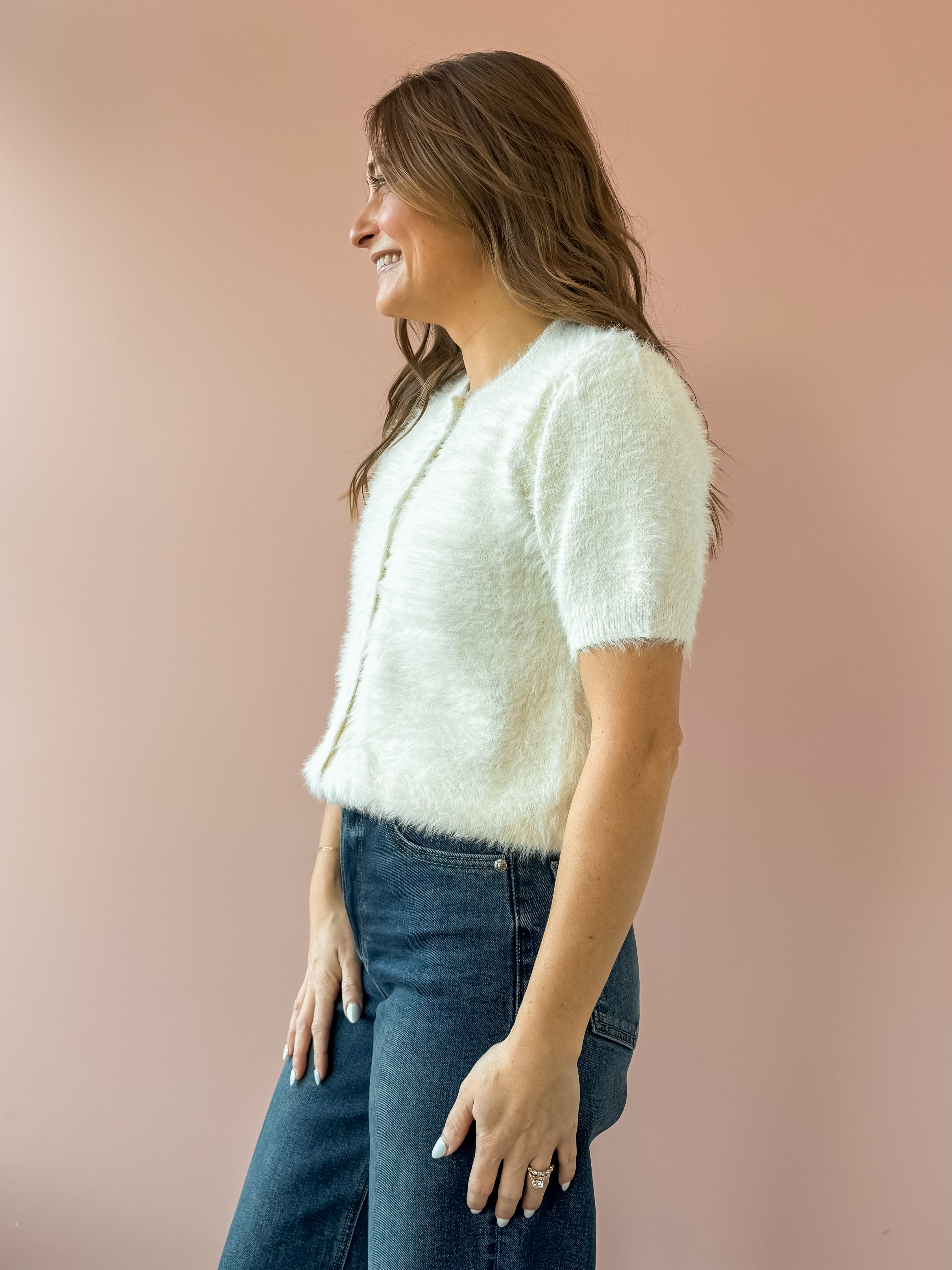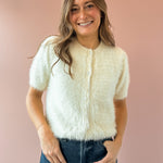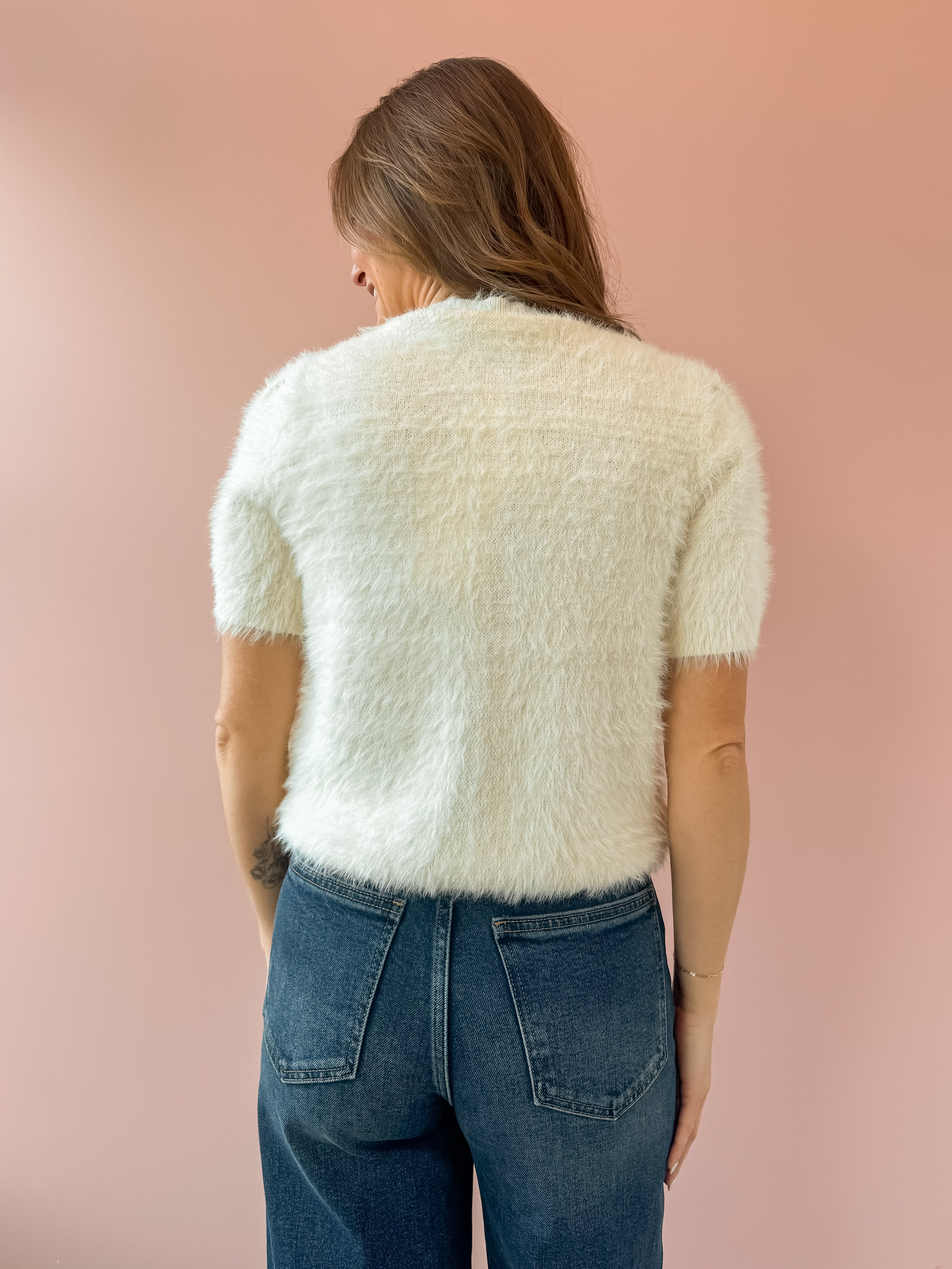 Elevate your wardrobe with the Julie Knit Sweater, a versatile mohair blend piece that transitions effortlessly from day to night. This luxurious short-sleeve sweater features a flattering round neckline and a tailored fit that skims the hem for a polished silhouette. Pair it with a midi skirt and heels for sophisticated elegance, or style it with your favorite denim and booties for relaxed, everyday charm.