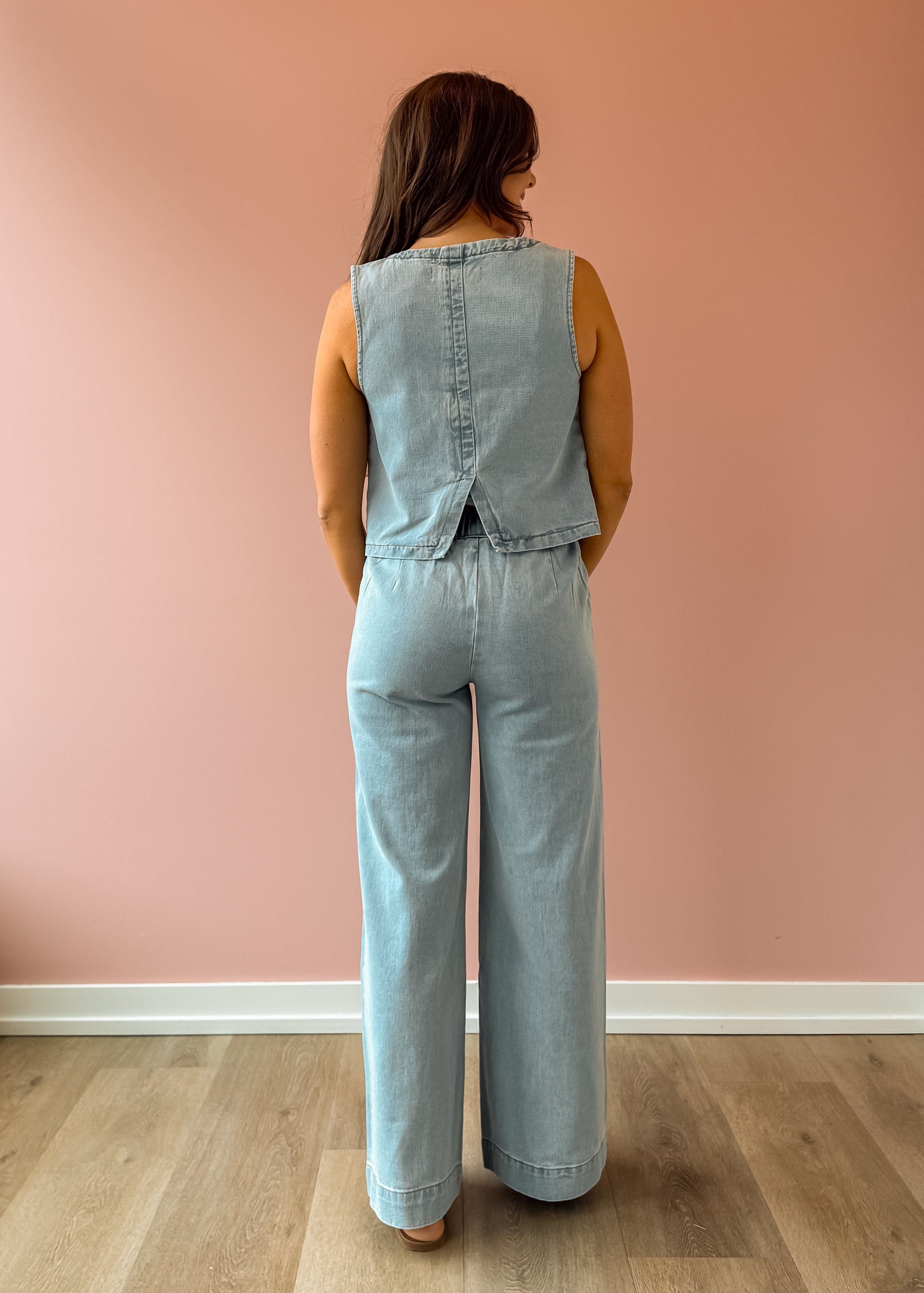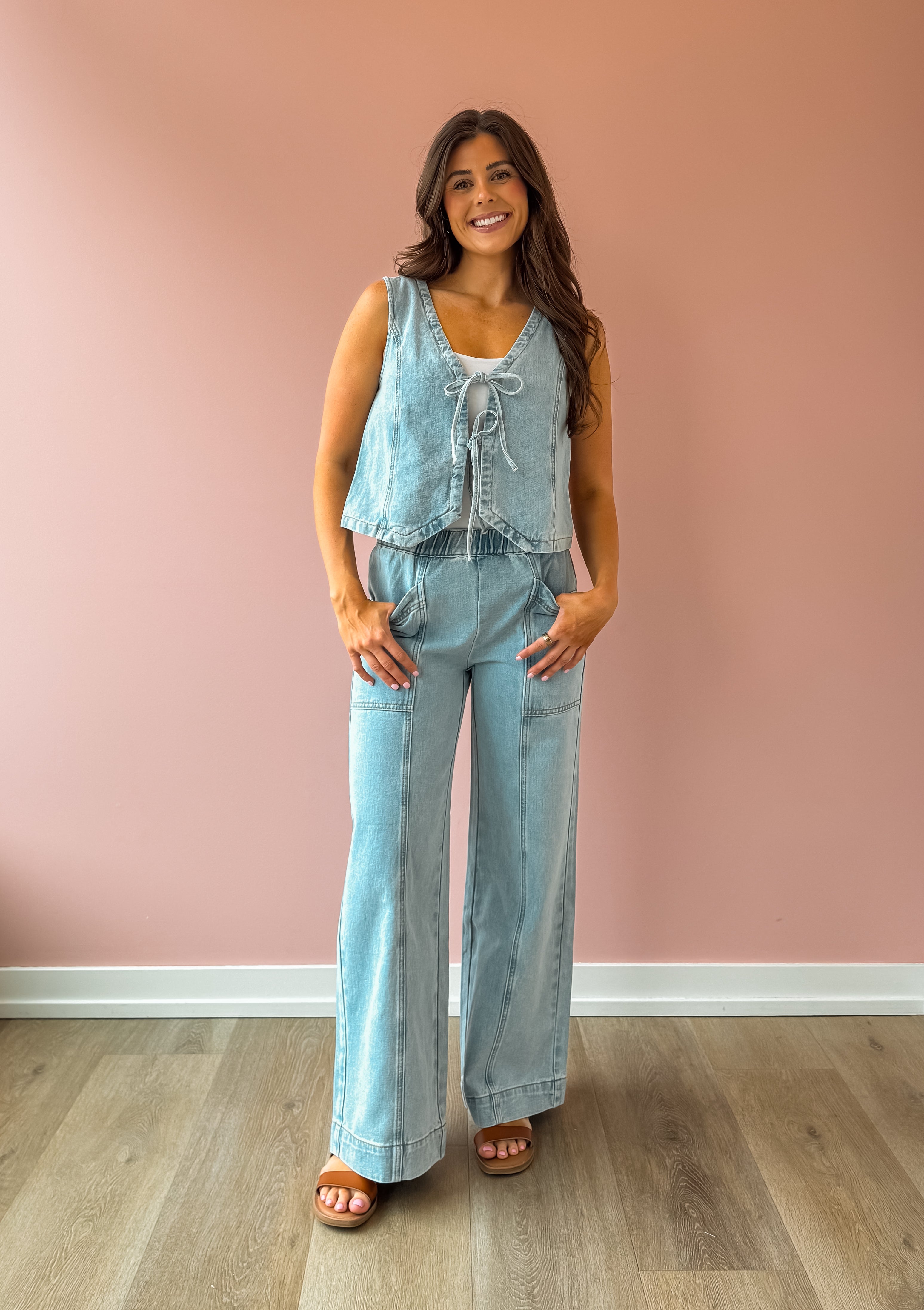Relaxed, wearable, and undeniably chic, the Monette Pant is where comfort meets style. These slight barrel-leg denim pants feature a pull-on waist for easy, all-day wear and functional pockets to keep essentials close. Pair them with the matching Margo Vest for a coordinated denim moment, or mix and match with your favorite tops for endless outfit possibilities.