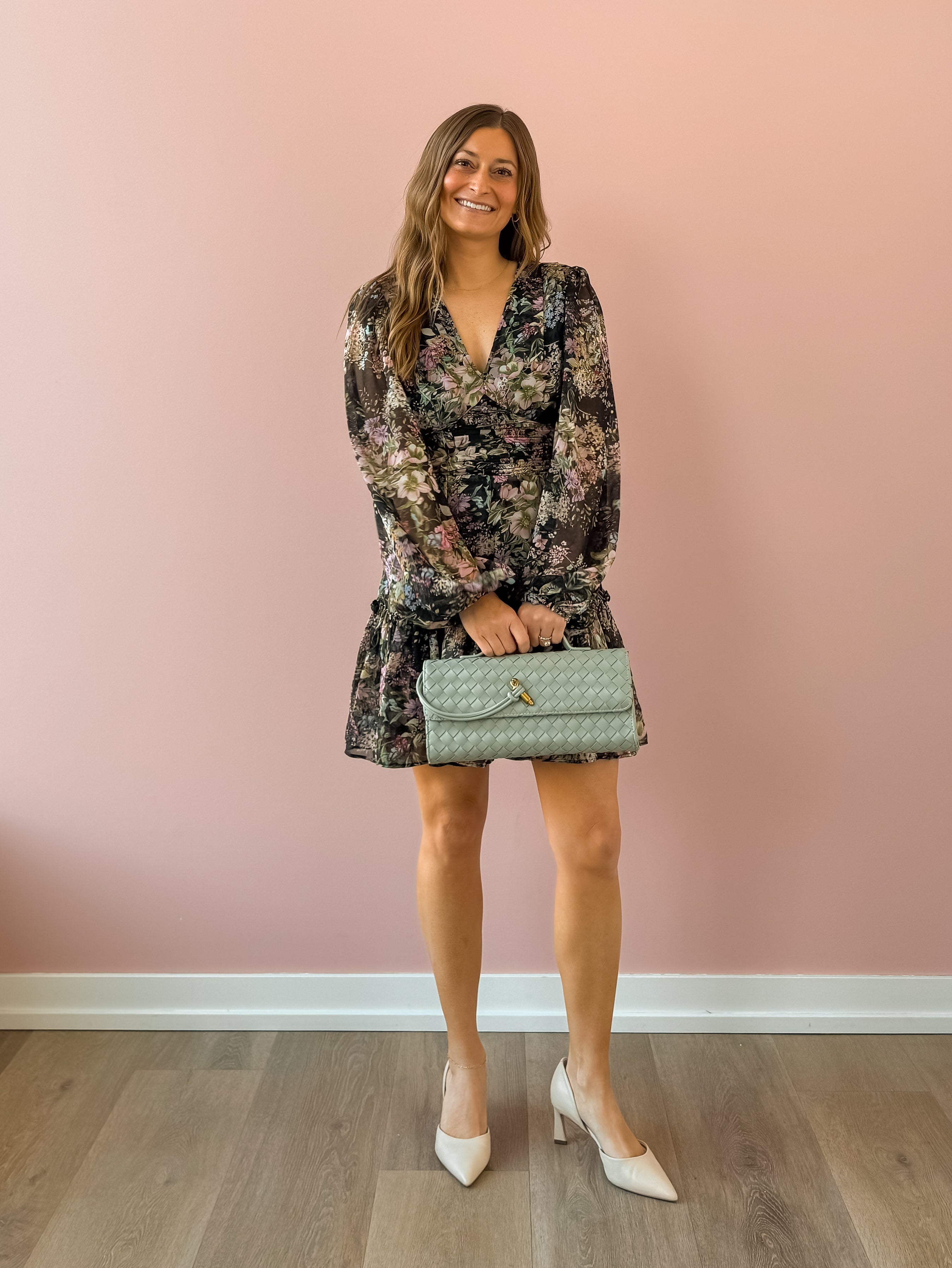 Elevate your date night look with our Myra Mini Dress! Featuring a charming floral print, a flowy mini hem, and a low v neck, this dress is both flirty and flattering. The sinched waist accentuates your curves, while the balloon sleeves add a touch of whimsy. Pair with heels for a truly romantic evening!