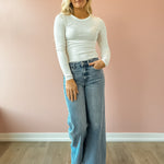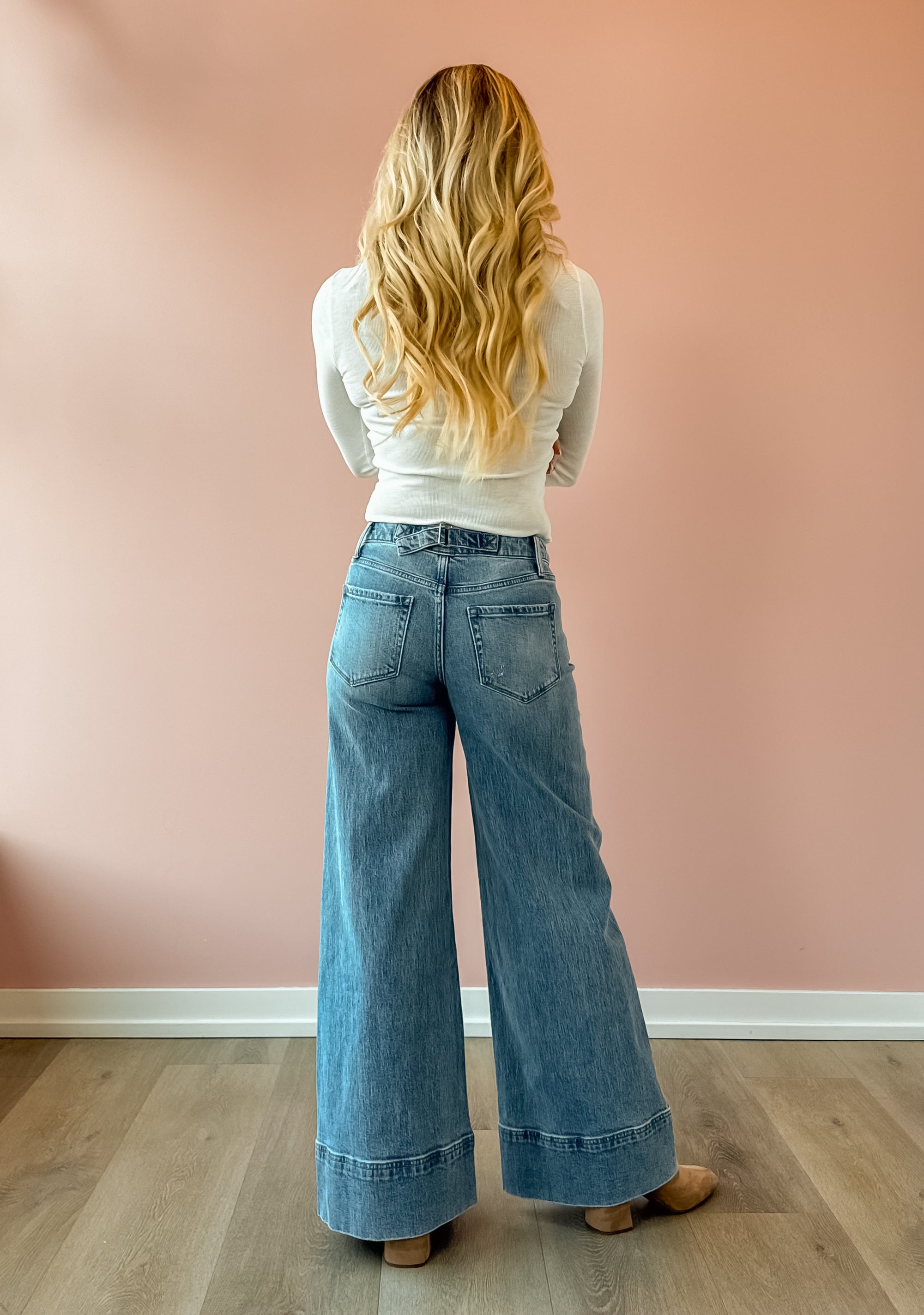 Make a bold statement with the Olivia Wide Leg Jeans, featuring an ultra-wide silhouette that commands attention. The distinctive slant side seam adds an unexpected design detail that sets these apart from everyday denim. In a versatile medium wash, they're the perfect canvas for creating standout looks. Pair them with a fitted top and heels to balance the relaxed proportions and elevate your style with effortless confidence.
