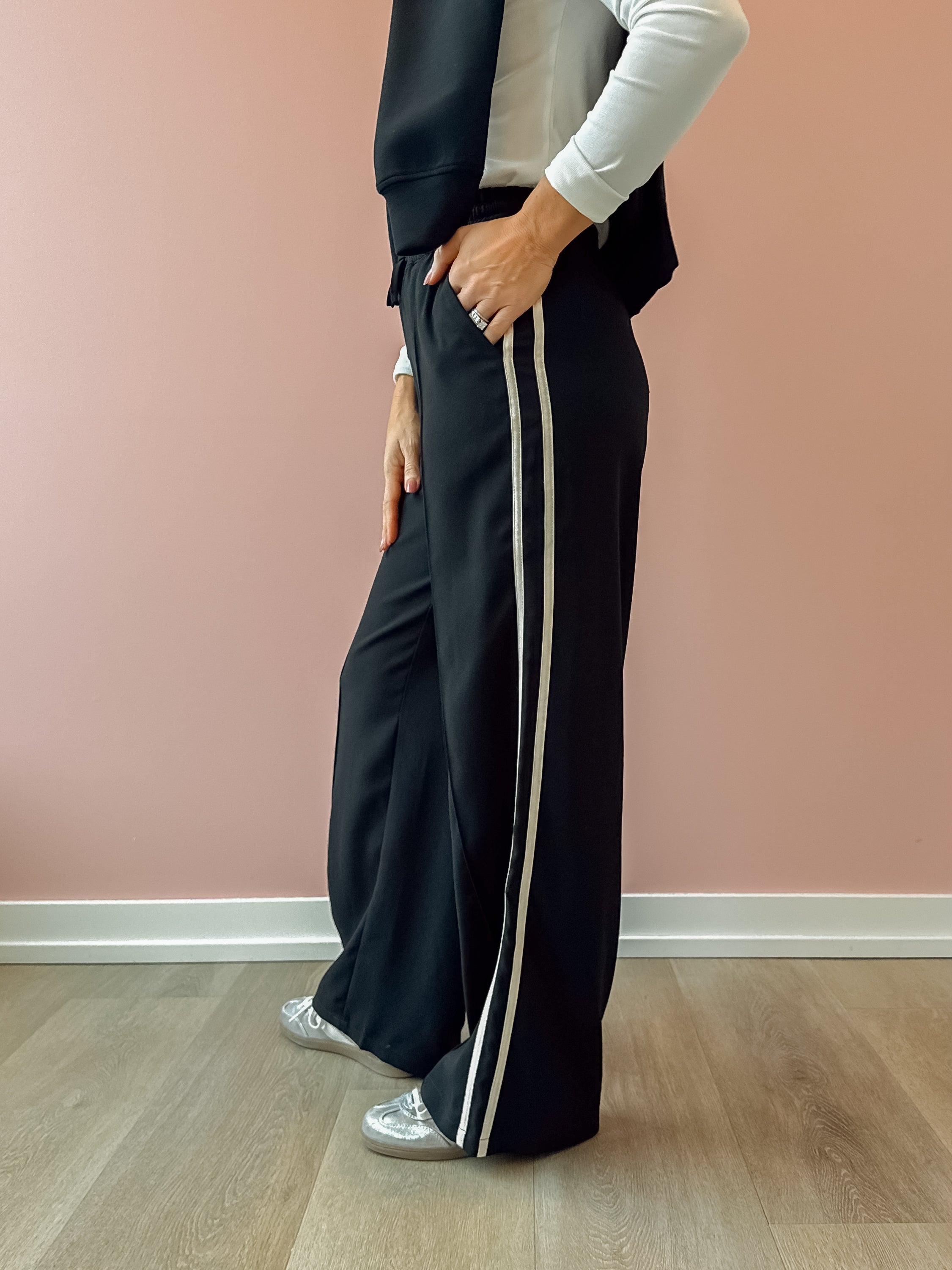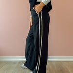 Light, flowy, and endlessly wearable, this full-length pant is cut from a breathable crinkle woven fabric with contrast stripe detail at the seams. High rise with a breezy drape and an elastic waistband make it your new favorite for everyday looks.Wide leg