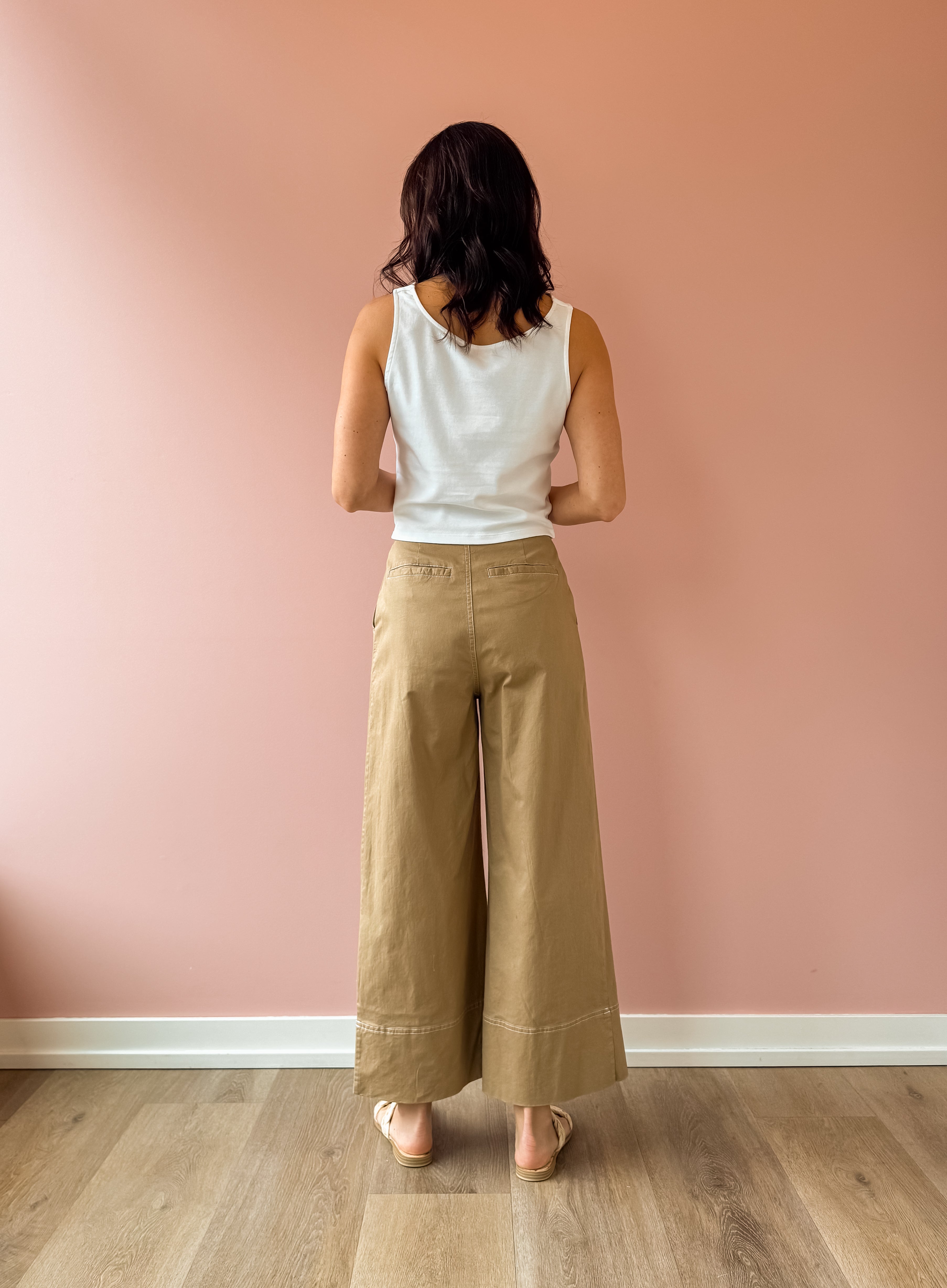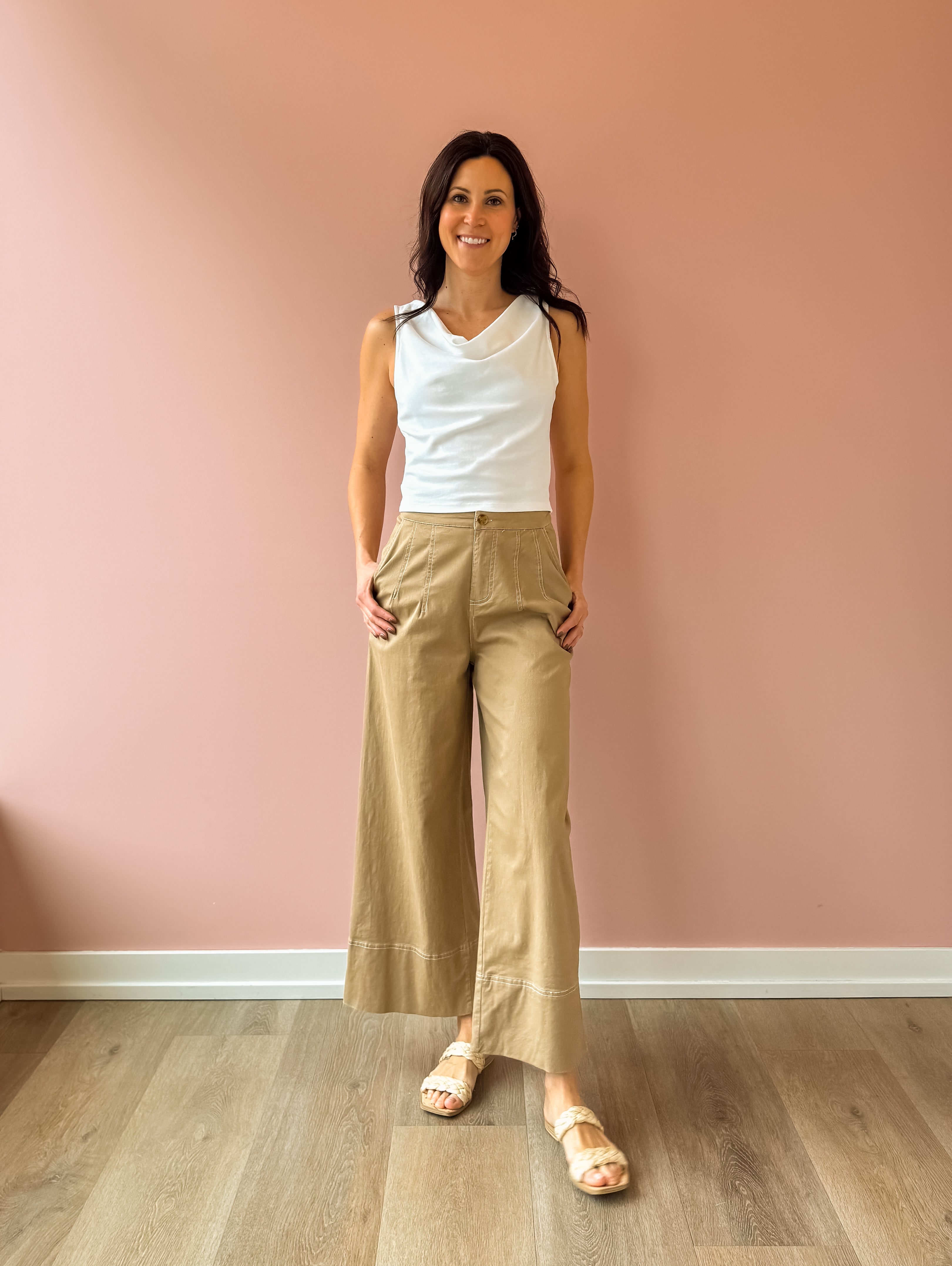 A polished pant with an easy, relaxed feel. These wide-leg trousers feature soft pleating at the waist for a flattering drape, along with a classic button closure for a tailored look. Finished with side pockets and a breezy silhouette, they’re perfect styled with a tucked blouse or lightweight sweater for effortless everyday sophistication.