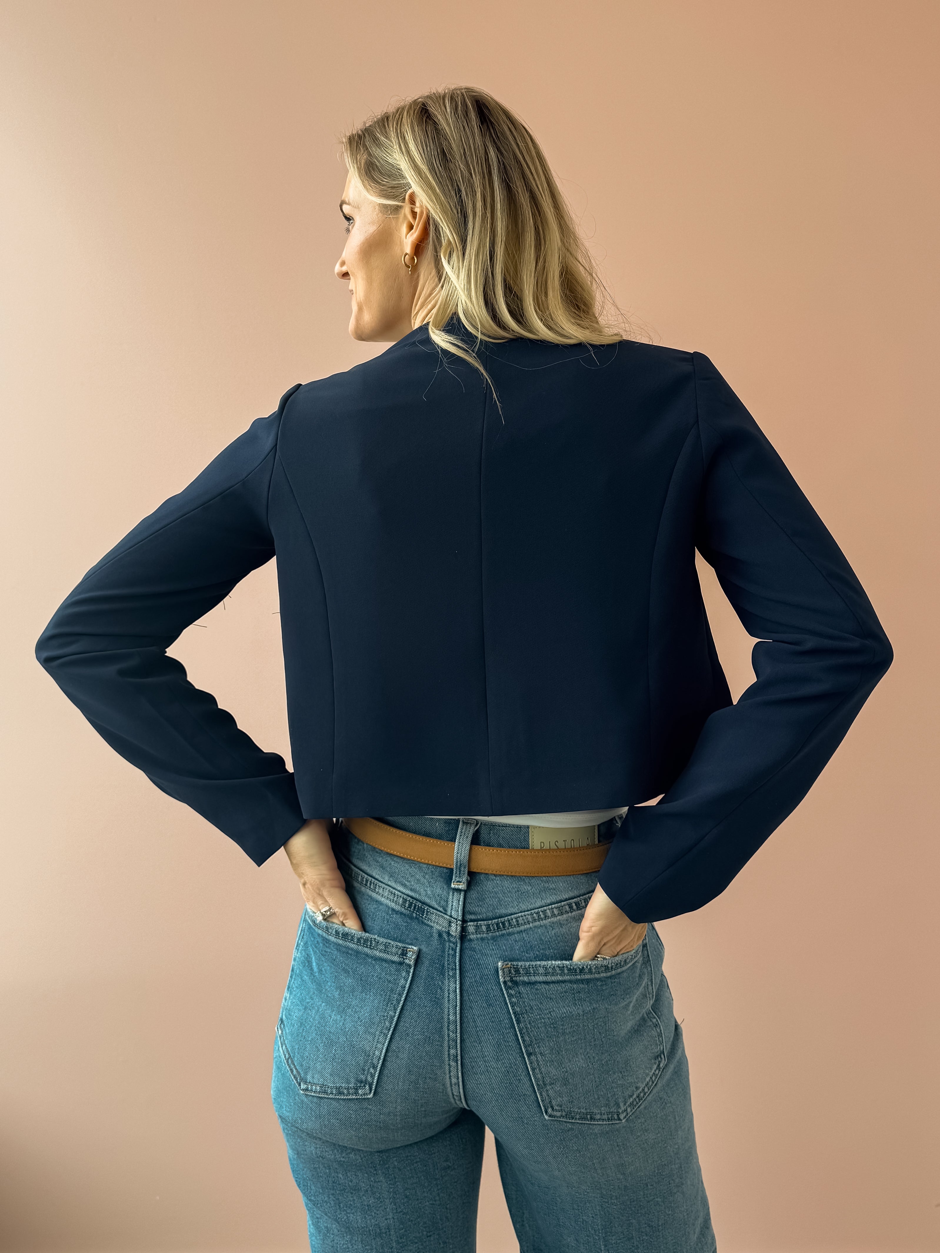 Elevate your everyday style with the Serenea Blazer—the cropped navy piece that elevates any outfit. Structured enough to polish up a casual tee, yet relaxed enough to pair seamlessly with your favorite jeans, this blazer is the ultimate closet essential. Dress it down with sneakers for weekend ease or layer it over a dress for office-ready sophistication.