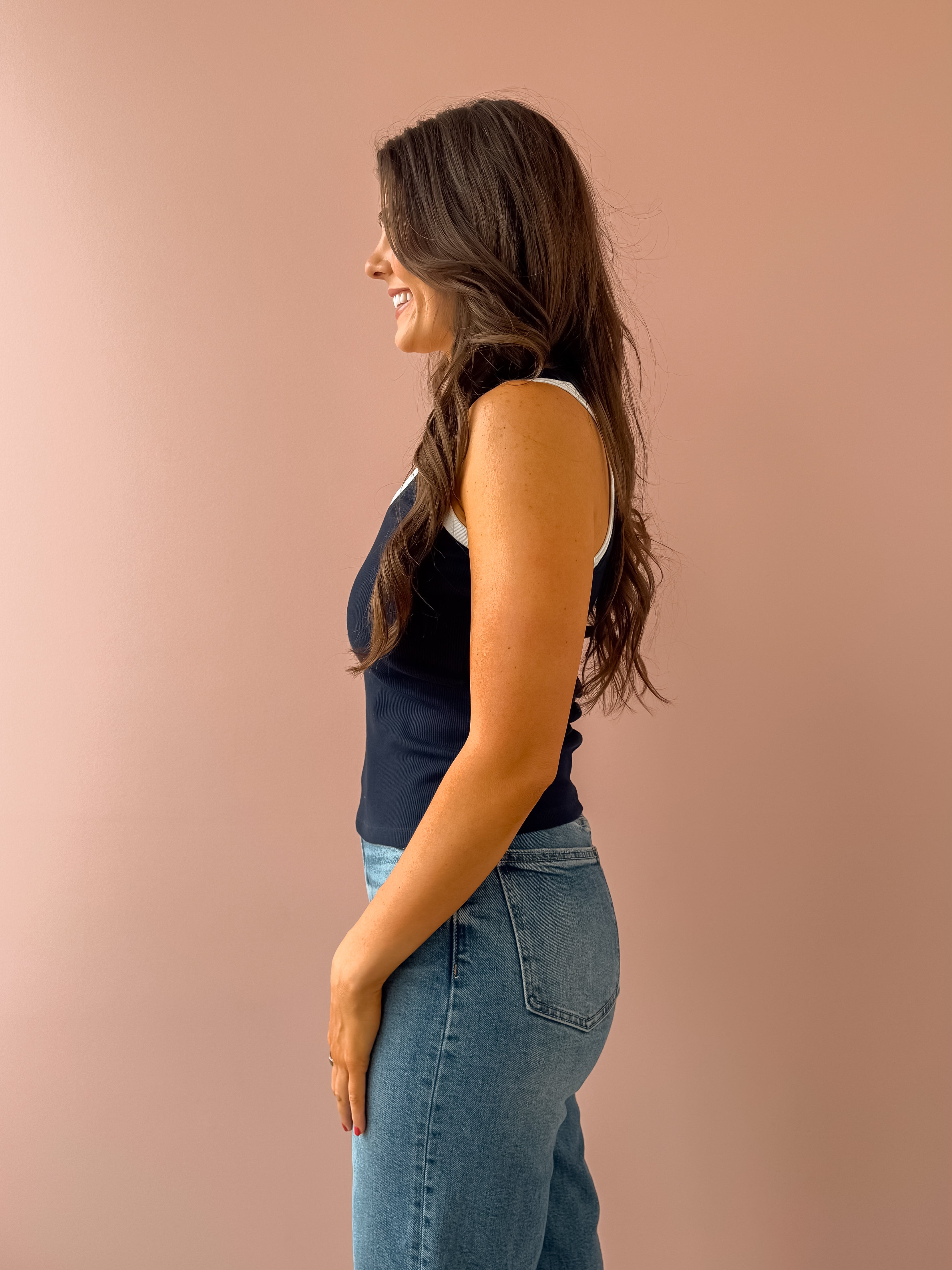 Meet your new favorite tank. The Sirena Colorblocked Rib Tank combines understated elegance with practical comfort, featuring a scooped neckline that flatters and wide straps designed to work seamlessly with your everyday bra. The soft, durable ribbed fabric moves with you while maintaining its polished appearance through countless wears. Style it tucked into high-waisted jeans for an effortlessly put-together vibe, or layer it under jackets and cardigans for added versatility. This is the kind of piece that becomes indispensable—reliable, flattering, and endlessly adaptable to your lifestyle.