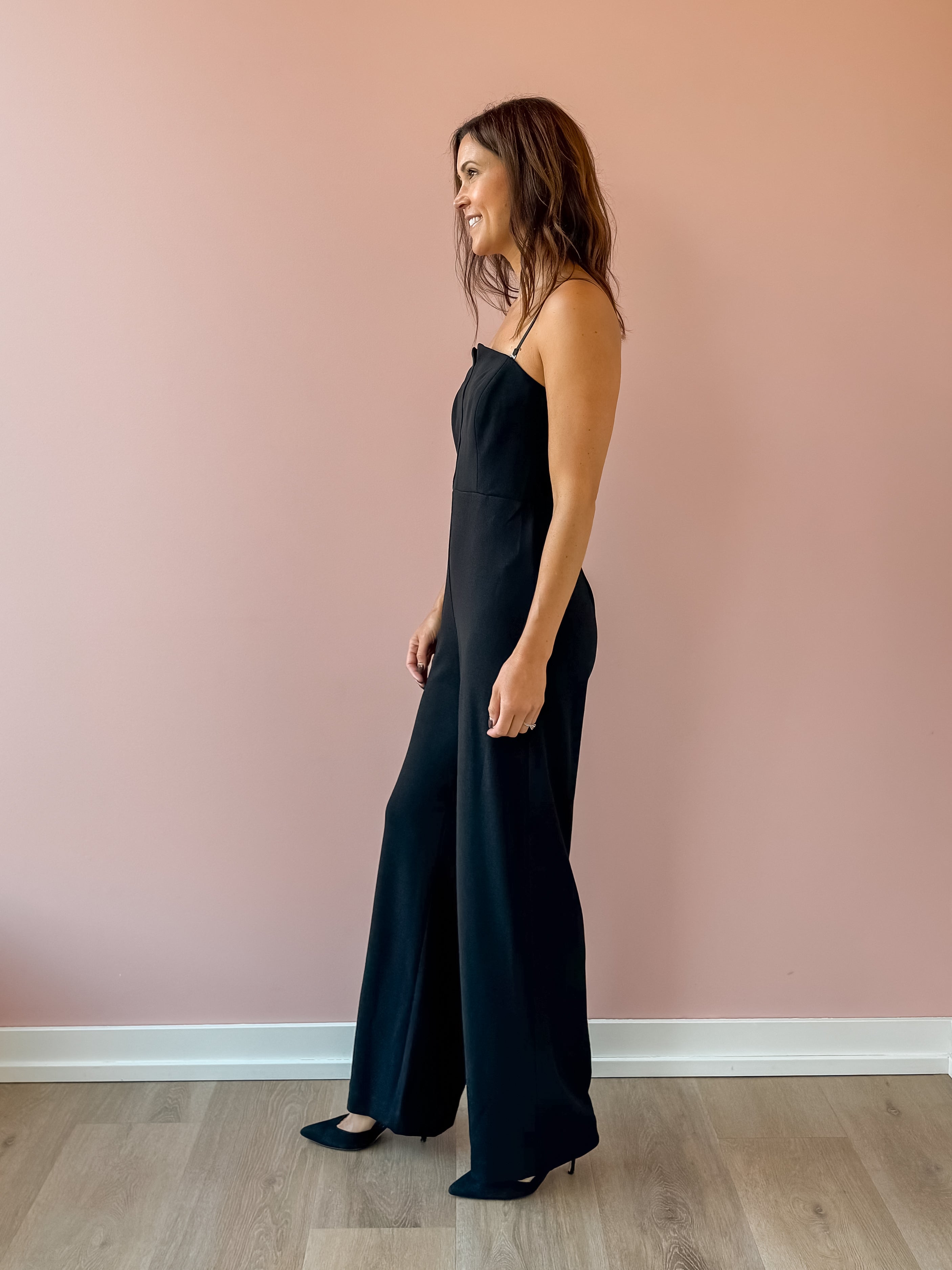 The Sophie Jumpsuit is your go-to for effortless elegance with a flirty twist. Featuring a sweetheart neckline, removable dainty straps, and a sheer mesh detail at the bust, it’s sleek, sculpting, and made to turn heads. The tailored fit flatters every curve while keeping things timeless and refined. Style it with heels and jewelry for a night out or special event.