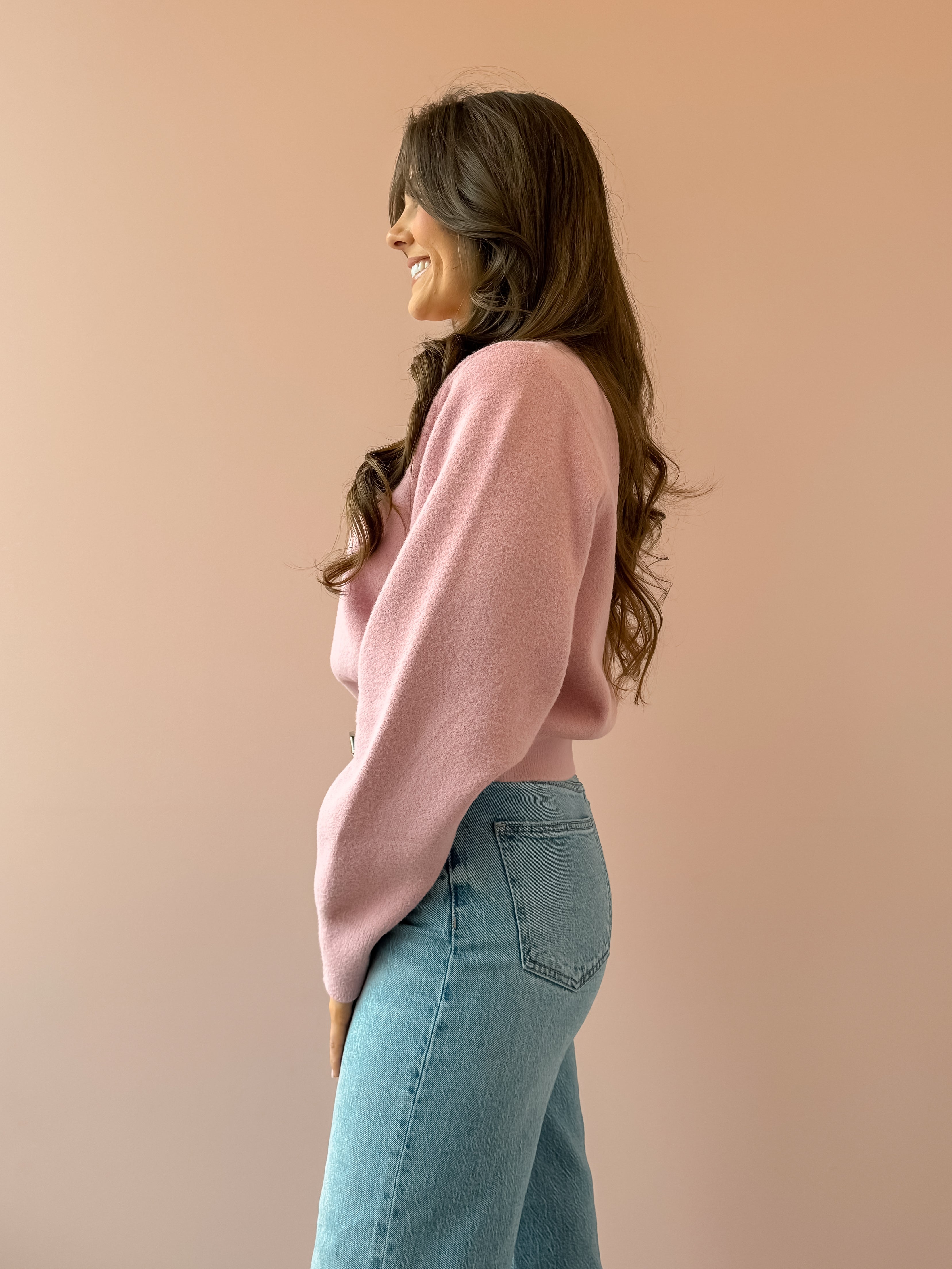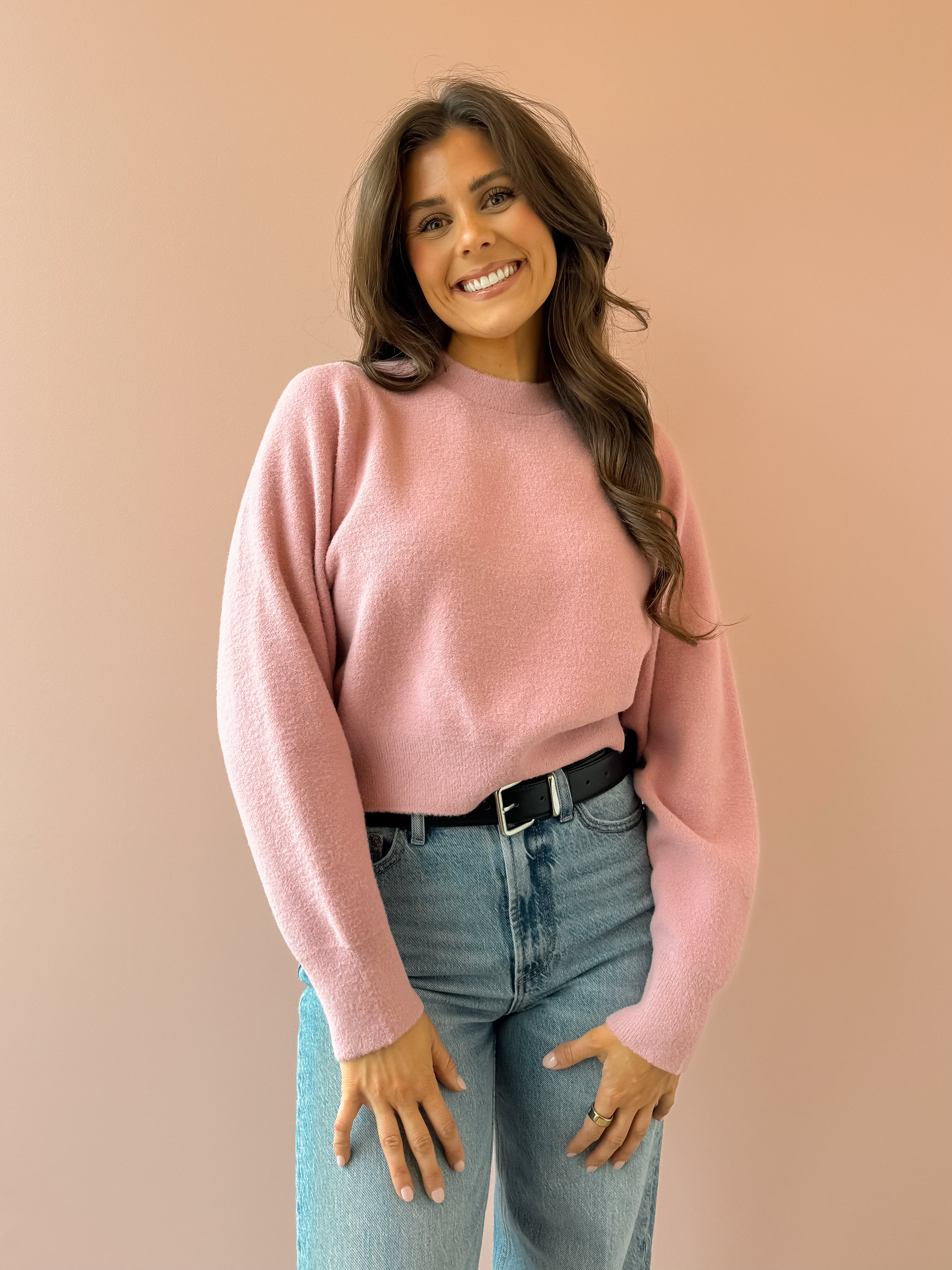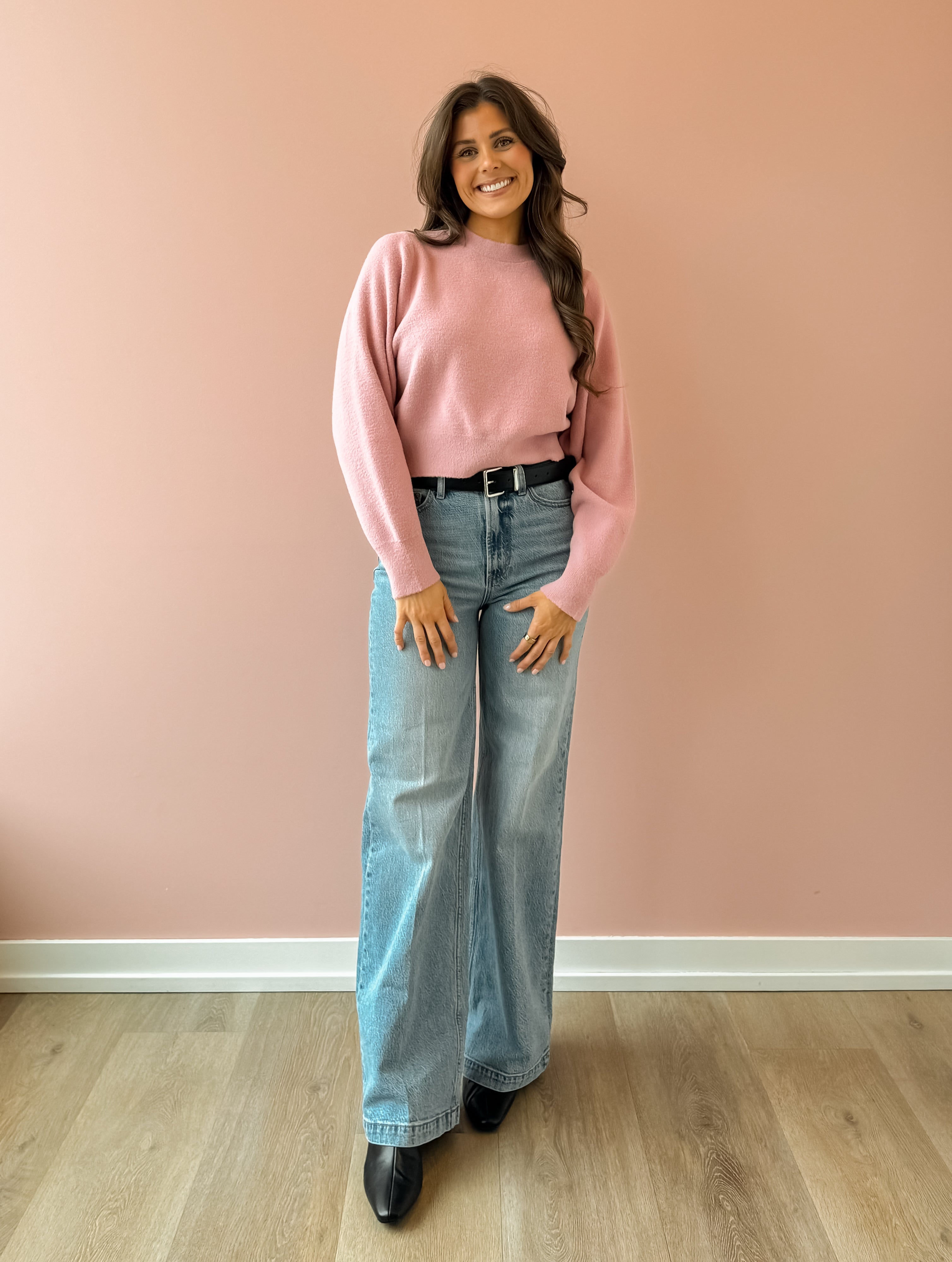 The Stacey Sweater is a timeless staple — blush pink, ultra-soft, and just slightly cropped for a modern fit. The crewneck keeps it timeless, while the feel-good fabric makes it one you'll reach for on repeat. Dress it up with tailored trousers for work or keep it casual with denim and sneakers.