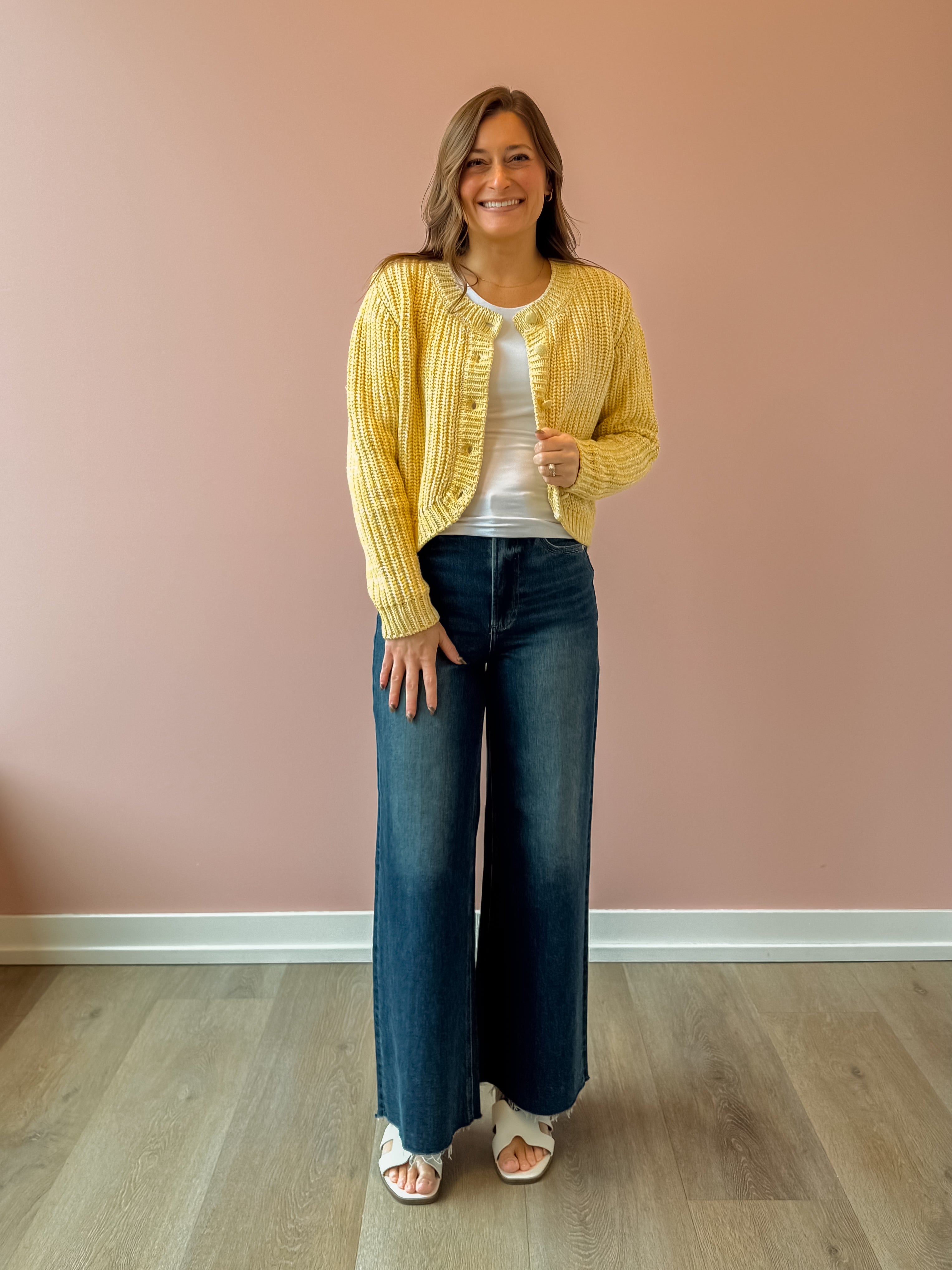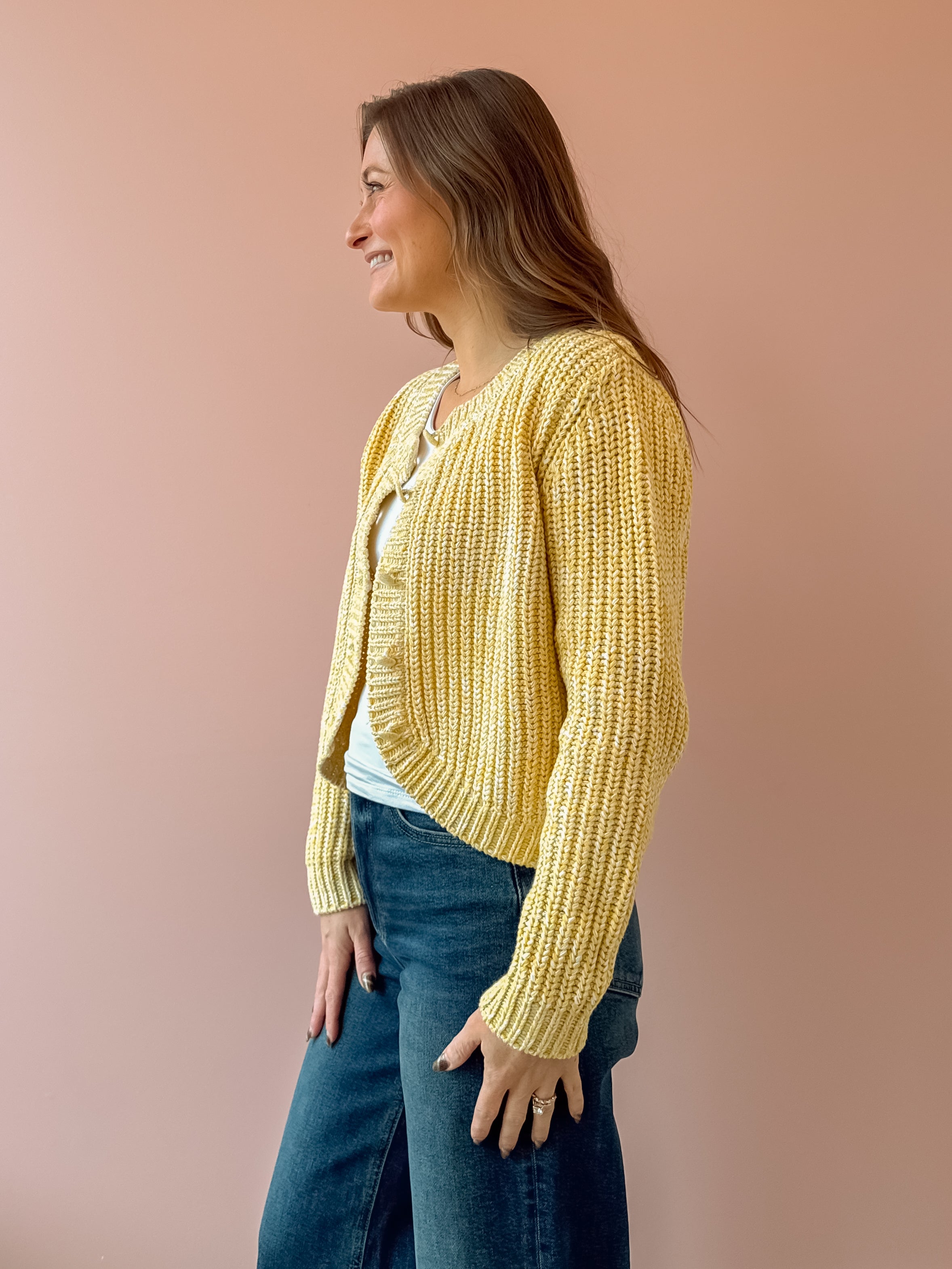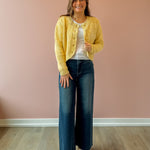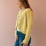 Stay stylish and warm with our Sunroof Cardigan! This half buttoned cardigan in a yellow hue is perfect for adding a pop of color to your wardrobe. Made with cozy knit material and featuring neckline detailing, it's the perfect blend of comfort and style. Elevate any outfit and stay cozy all day long with the Sunroof Cardigan!