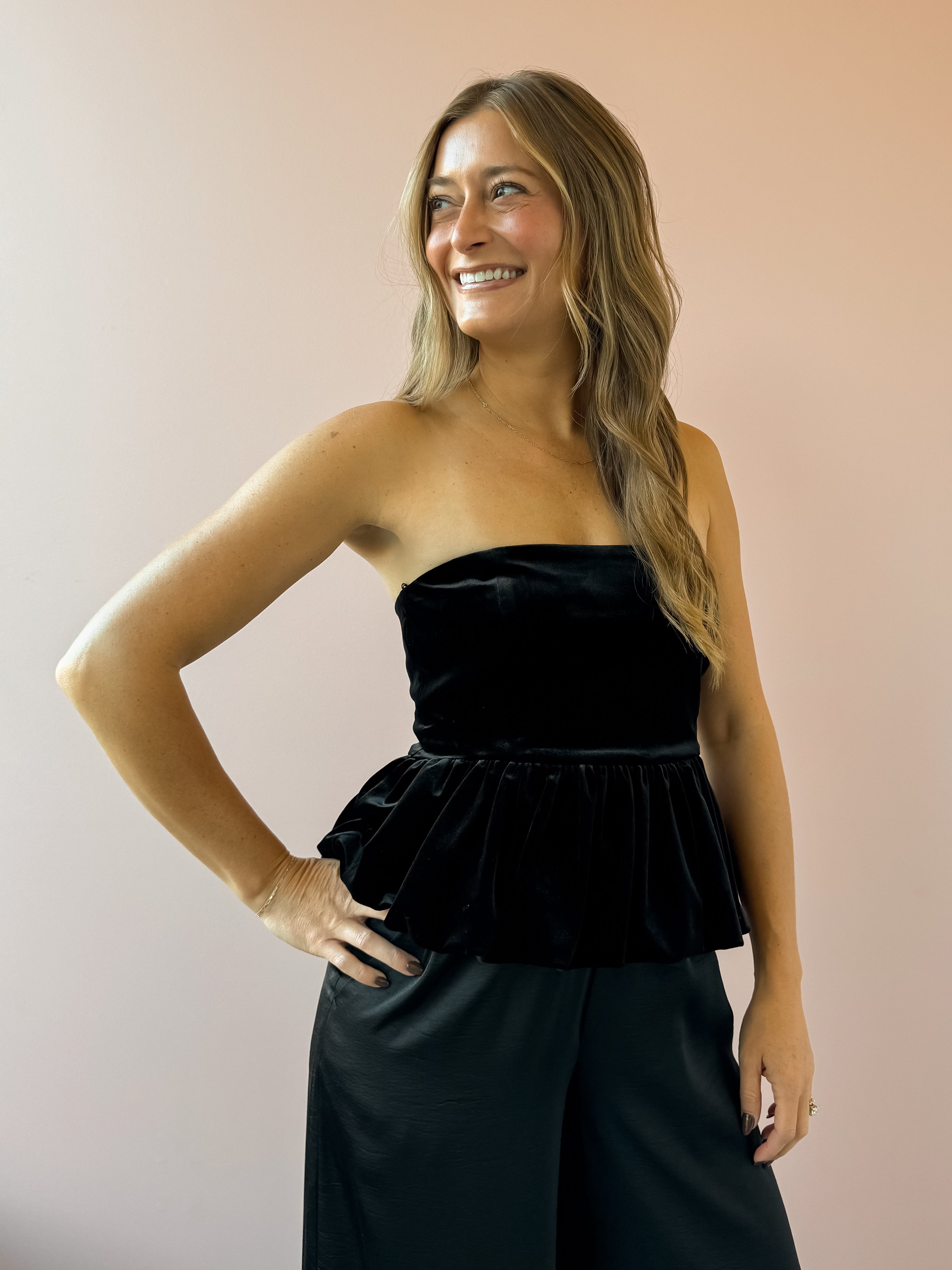 The Tessae Top brings a perfect mix of elegance and playfulness with its rich velvet texture and trendy bubble silhouette. This sleeveless, cropped design pairs effortlessly with high-rise denim, pants, or skirts, making it ideal for nights out or parties.