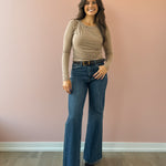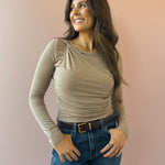 The Promise Top brings a fun twist to your wardrobe with its ruched bodice and soft knit fabric. It’s the perfect playful companion for your favorite jeans, adding a flirty touch to any casual outing. Comfortable, stylish, and effortlessly cool—style with denim and boots for the office!