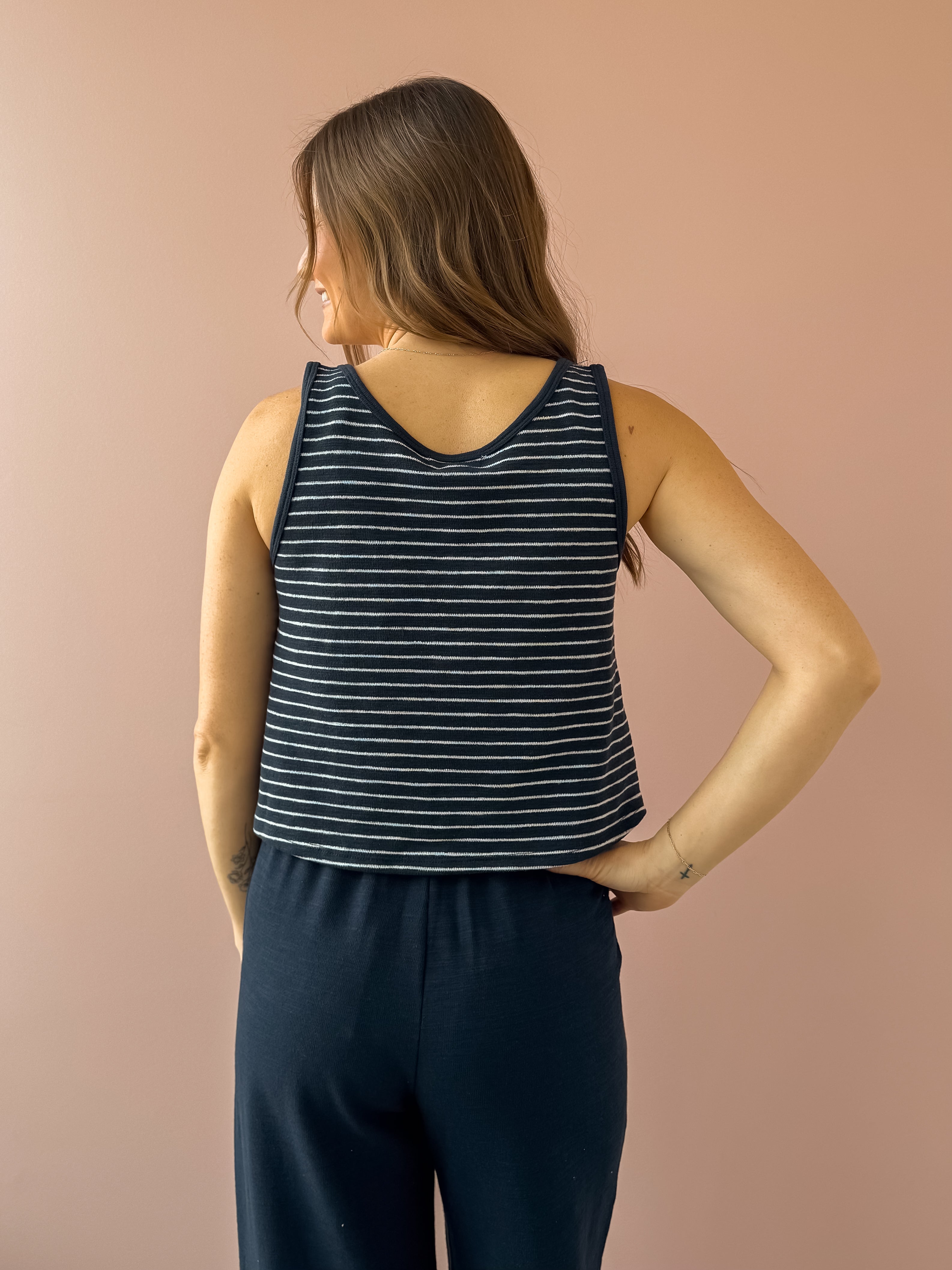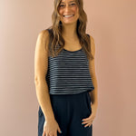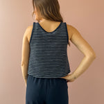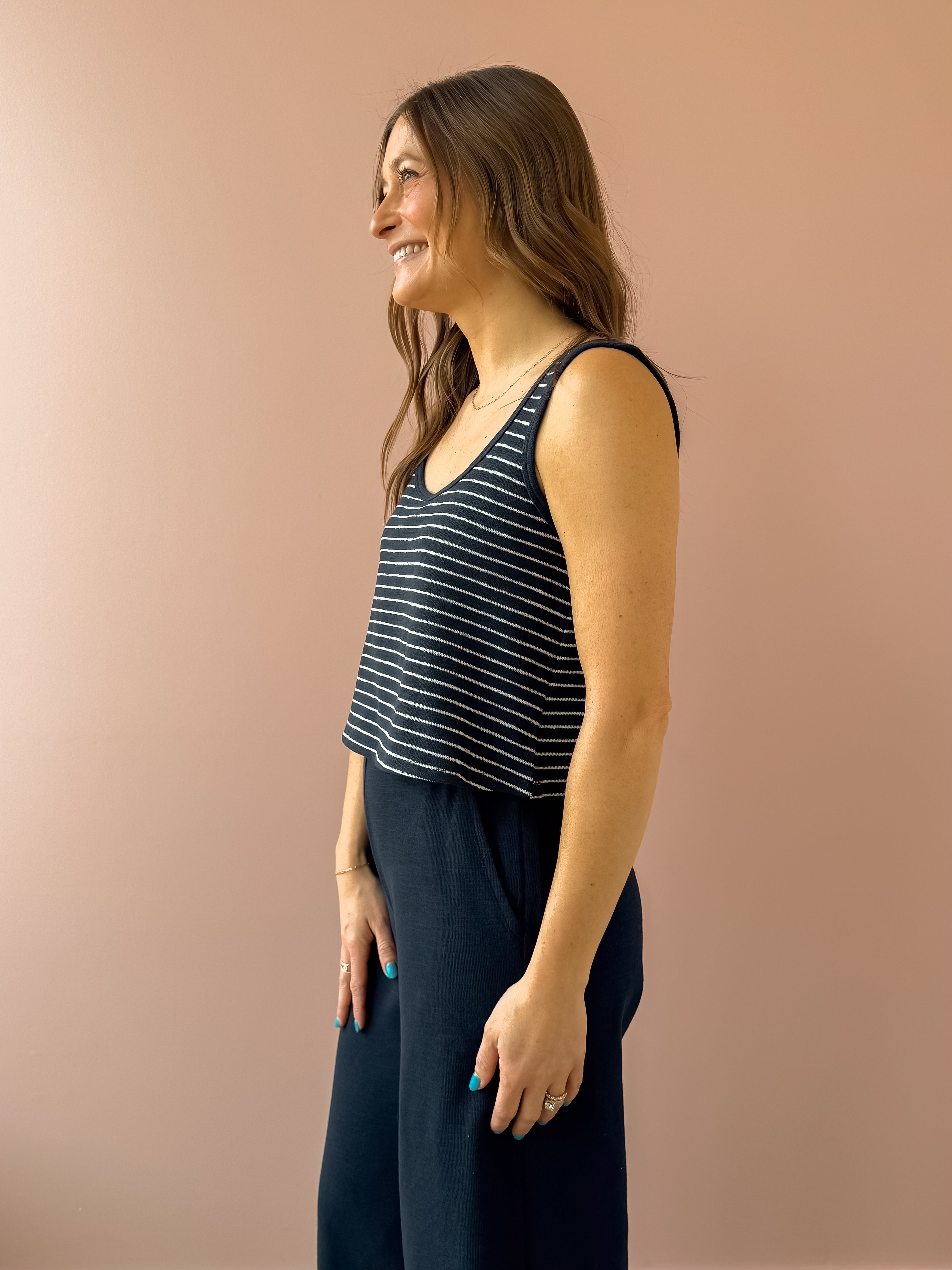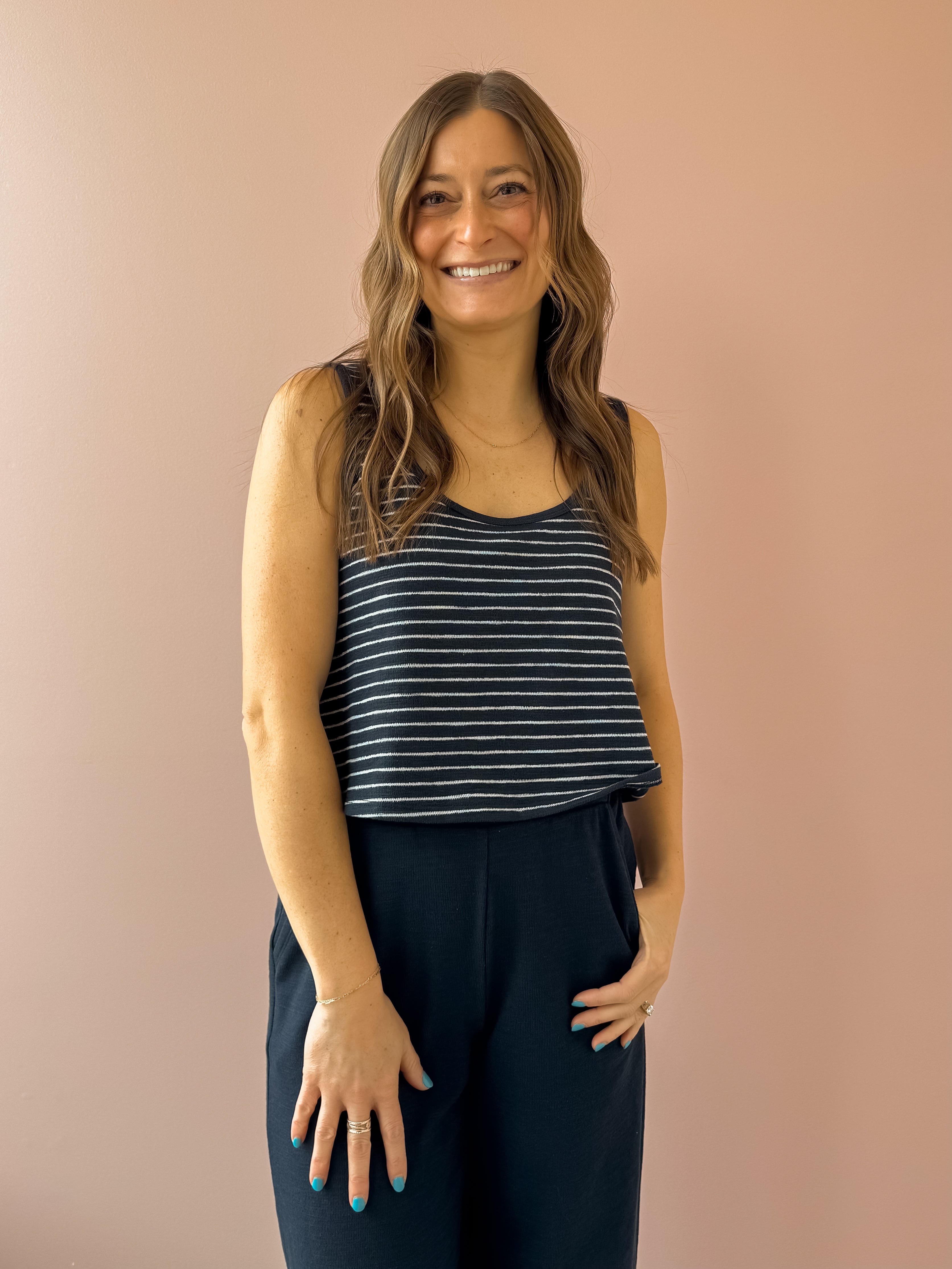 The Yareli Striped Tank is your answer to spring dressing done right. Featuring crisp navy and white stripes, this comfortable tank offers the perfect balance of style and ease. The relaxed silhouette and soft, breathable fabric make it ideal for warm weather layering or wearing on its own. Pair it with your favorite jeans, shorts, or skirts for endless outfit possibilities. Simple, versatile, and undeniably wearable—this is the tank you'll reach for again and again.